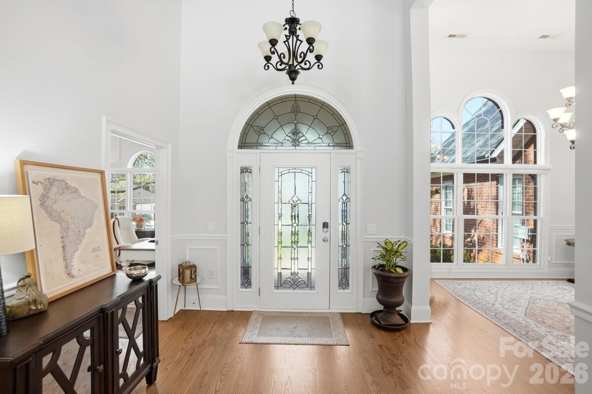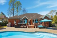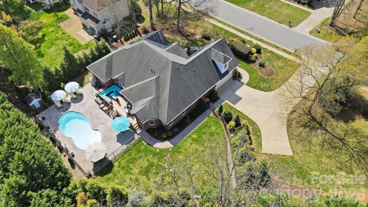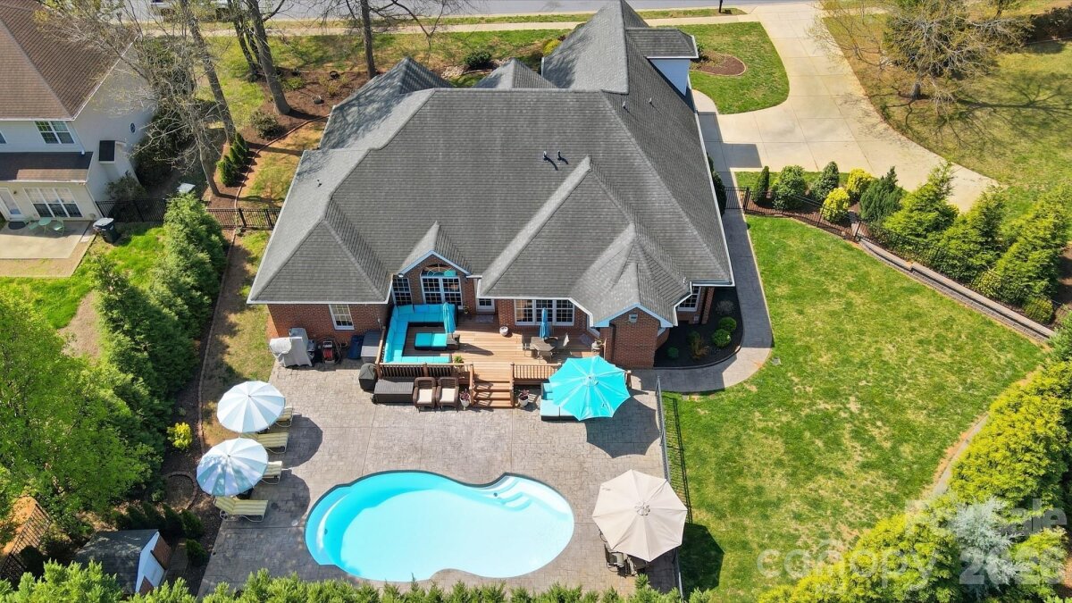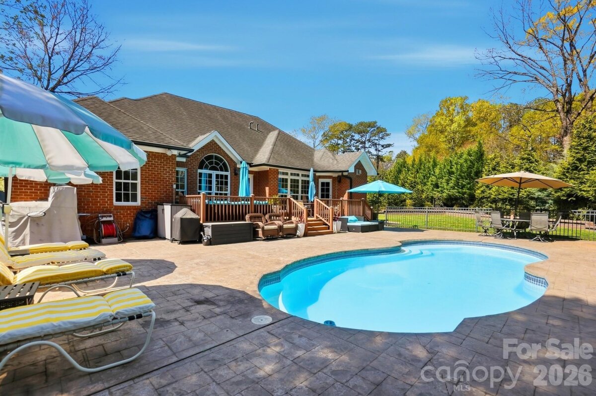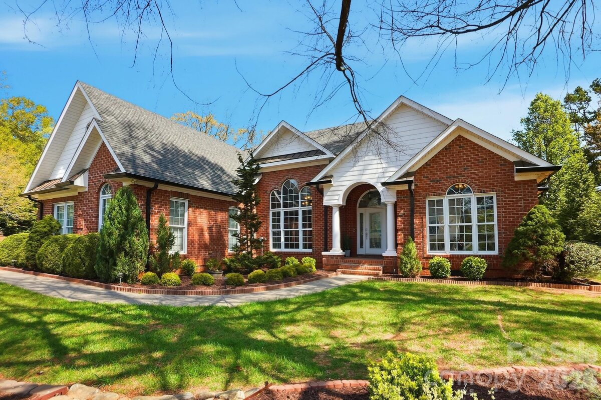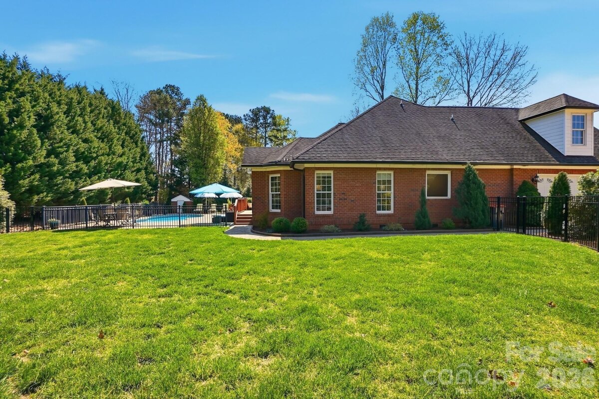 Stunning custom-built all-brick ranch located in the highly desirable Gates at Waterside community in Stanley, positioned on a rare private double lot totaling .56 acres and featuring a resort-style in-ground pool with exceptional indoor-outdoor living. Originally a former builder’s home, this property has been thoughtfully enhanced with both structural and design upgrades. Select walls were removed to create a more open and seamless living space, complemented by new hardwood floors throughout. Custom molding and detailed wainscoting add architectural elegance and character, elevating the overall craftsmanship of the home. The expansive main living area features soaring ceilings, custom built-ins, and flows effortlessly into a well-appointed kitchen with granite countertops, gas range, stainless steel appliances, elegant backsplash, and under-cabinet lighting. The luxurious primary suite serves as a true retreat with tray ceiling, fireplace, and private access to the deck and pool. The spa-inspired ensuite includes an upscale tiled walk-in shower and soaking tub with heated backrest. Upstairs, a spacious bonus room with full bath and convenient walk-in attic access offers flexible living space ideal for guests, media, or a home office. Recent upgrades include a smart home system with Alexa integration, tankless water heater, spray foam insulation for enhanced energy efficiency, encapsulated crawl space with dehumidifier, epoxy-coated 2-car garage floor, and surround sound inside and out. Outdoor entertaining is effortless with a fenced backyard, irrigation system, and beautifully designed pool and deck area, offering privacy and space within one of Stanley’s most sought-after neighborhoods. Conveniently located near Lake Norman, marinas, and Charlotte, this home blends refined craftsmanship, modern efficiency, and exceptional lifestyle. Welcome home.