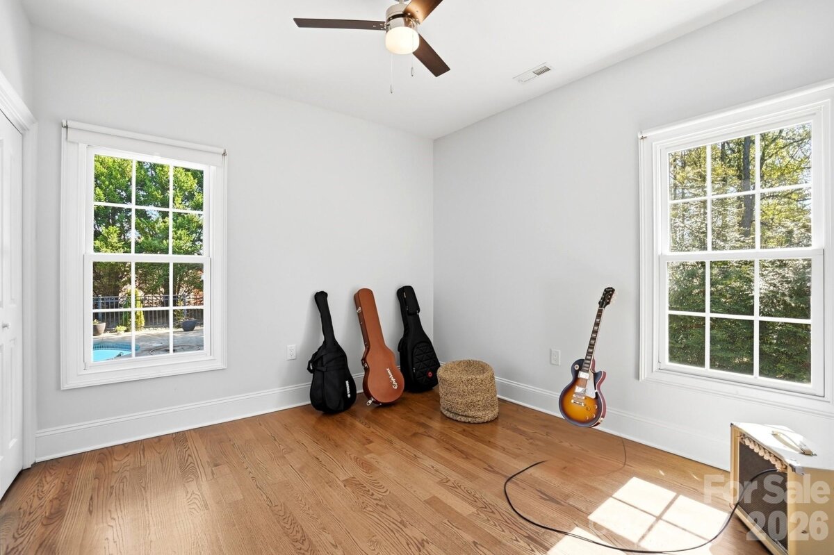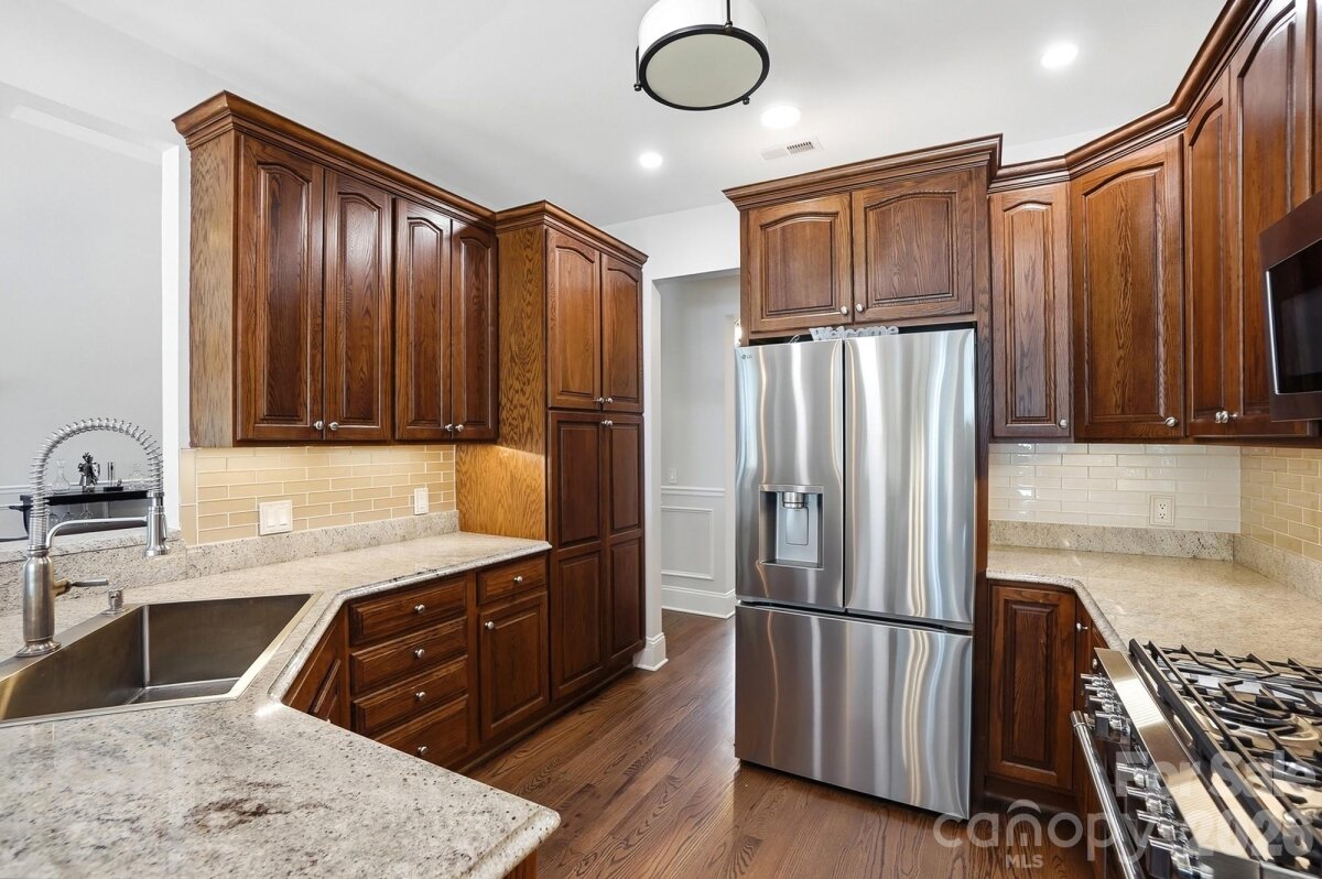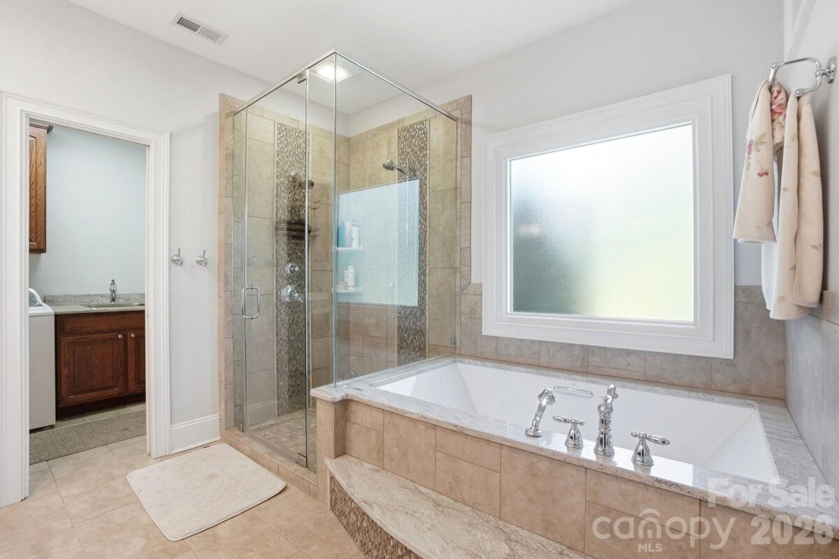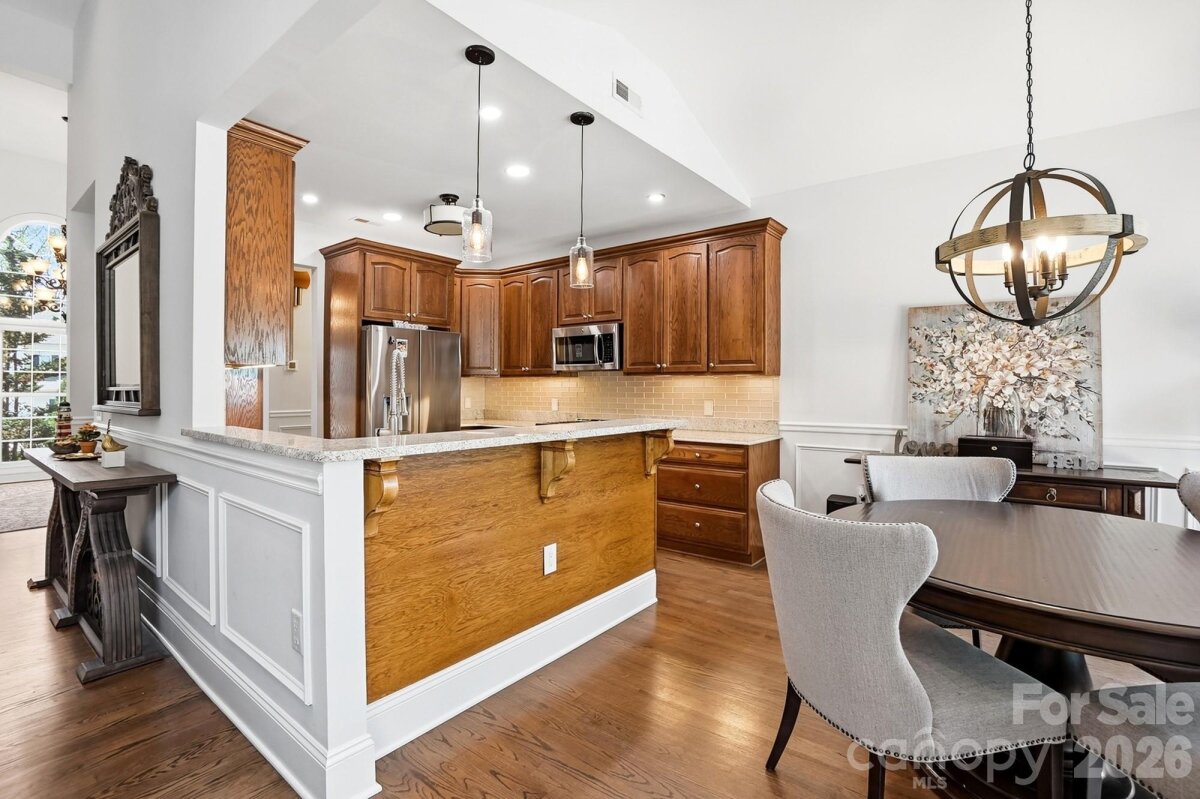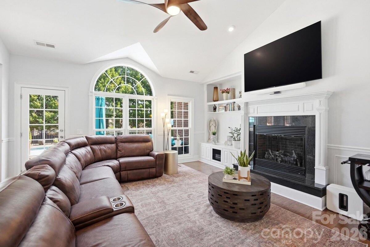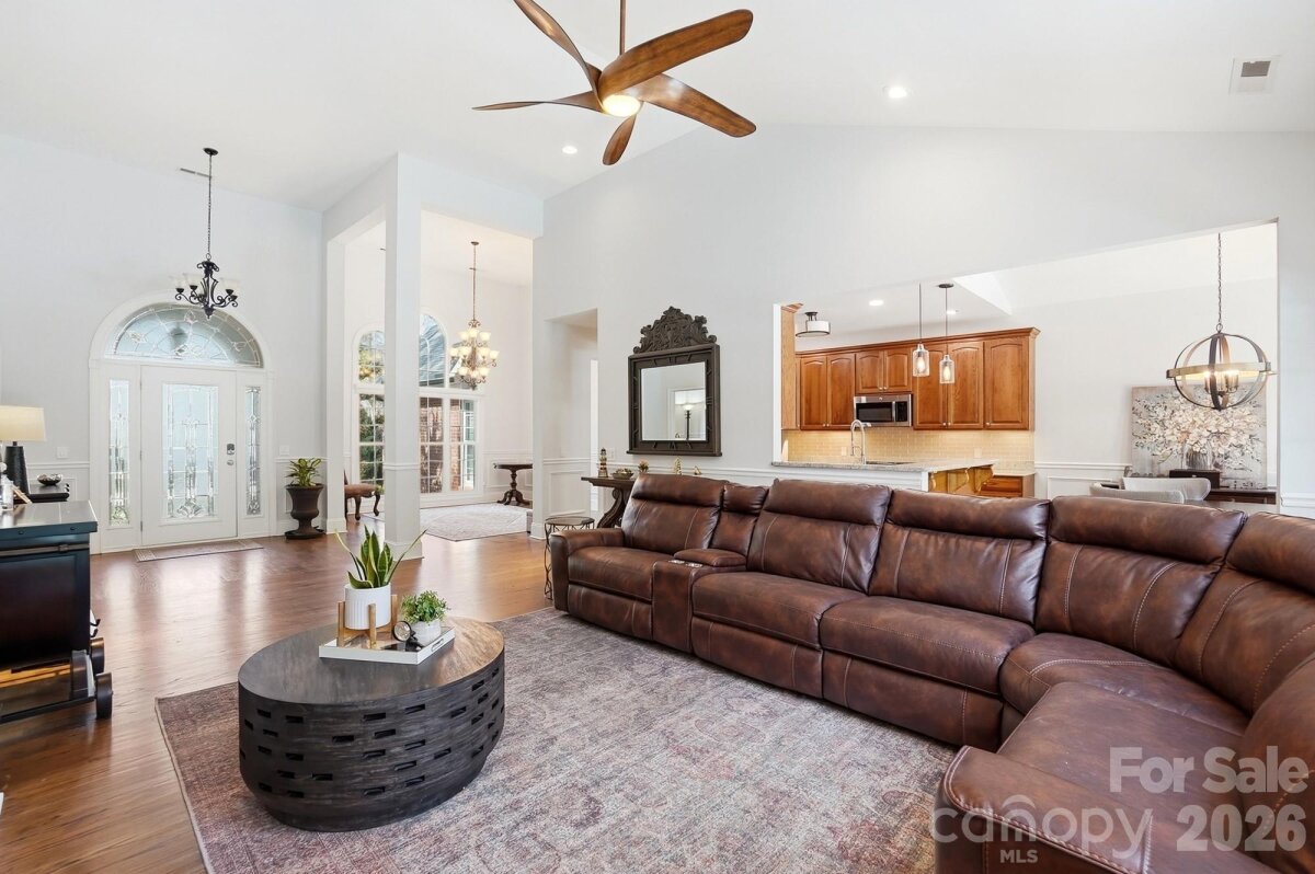 Stunning custom-built all-brick ranch located in the highly desirable Gates at Waterside community in Stanley, positioned on a rare private double lot totaling .56 acres and featuring a resort-style in-ground pool with exceptional indoor-outdoor living. Originally a former builder’s home, this property has been thoughtfully enhanced with both structural and design upgrades. Select walls were removed to create a more open and seamless living space, complemented by new hardwood floors throughout. Custom molding and detailed wainscoting add architectural elegance and character, elevating the overall craftsmanship of the home. The expansive main living area features soaring ceilings, custom built-ins, and flows effortlessly into a well-appointed kitchen with granite countertops, gas range, stainless steel appliances, elegant backsplash, and under-cabinet lighting. The luxurious primary suite serves as a true retreat with tray ceiling, fireplace, and private access to the deck and pool. The spa-inspired ensuite includes an upscale tiled walk-in shower and soaking tub with heated backrest. Upstairs, a spacious bonus room with full bath and convenient walk-in attic access offers flexible living space ideal for guests, media, or a home office. Recent upgrades include a smart home system with Alexa integration, tankless water heater, spray foam insulation for enhanced energy efficiency, encapsulated crawl space with dehumidifier, epoxy-coated 2-car garage floor, and surround sound inside and out. Outdoor entertaining is effortless with a fenced backyard, irrigation system, and beautifully designed pool and deck area, offering privacy and space within one of Stanley’s most sought-after neighborhoods. Conveniently located near Lake Norman, marinas, and Charlotte, this home blends refined craftsmanship, modern efficiency, and exceptional lifestyle. Welcome home.