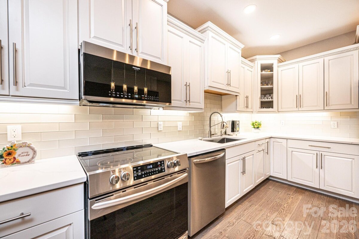 **SHOWINGS BEGIN ON FRIDAY, FEBRUARY 27TH*** Welcome to this quality custom-built home in the prestigious River Bend community, a Lake Hickory neighborhood offering peaceful surroundings and convenient lake access. This exceptional 5-bedroom, 4-bath residence blends modern design with privacy and spacious living. The home features five private bedrooms—including two primary suites, one on the main level and one upstairs—each with an ensuite bath and walk-in closet. A dedicated office provides an ideal space for work or creative projects. The gourmet kitchen serves as the heart of the home, showcasing energy-efficient appliances, a large quartz-topped island with bar seating, custom maple cabinetry, a spacious pantry, and a separate breakfast area, all complemented by a formal dining room perfect for gatherings. The bright, welcoming foyer opens to a stunning living area highlighted by an 18' stacked-stone fireplace, hardwood floors, modern crystal lighting, and elegant finishes throughout. Outdoor living is equally inviting with a private backyard and a covered deck designed for year-round relaxation. High-end features include energy-efficient windows, an energy-efficient HVAC system, a water filtration system, central vacuum, video surveillance, and abundant storage. A 4-car driveway and 2-car garage provide ample parking and flexibility for hobbies or additional storage needs. Ideally located in a quiet, well-established neighborhood, this home offers easy access to shopping, dining, and top-rated schools, making it the perfect blend of convenience and tranquility. 2025 combined Caldwell County and Town of Granite Falls taxes are $6,158. Don’t miss the opportunity to make this exceptional River Bend property your forever home.