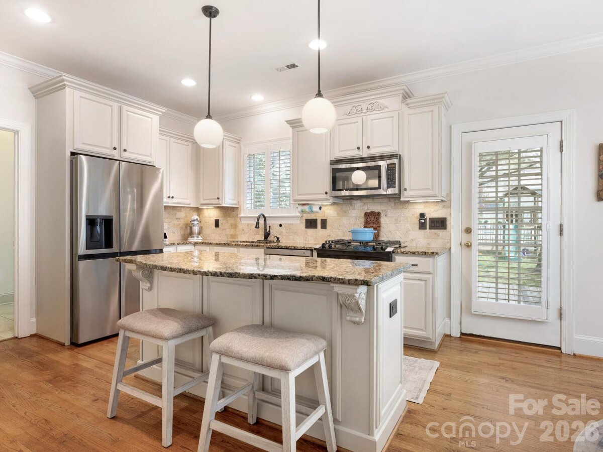 Welcome to this charming 4-bedroom, 2.5-bath home in highly sought-after Beverly Crest! This home features beautiful hardwood floors throughout the main level and a functional, light-filled layout perfect for everyday living and entertaining. The kitchen provides stainless steel appliances, a walk-in pantry and plenty of natural light with a gas range. Upstairs you'll find a spacious primary bedroom with two generously-sized closets. The updated primary bathroom provides a fresh, modern retreat, while the secondary bedrooms offer versatility—one includes a built-in Murphy bed, making it perfect for guests or a home office. The fourth bedroom can easily function as a flex space to suit your needs, whether it’s a playroom, office or workout area. Go outside to enjoy a flat, fully fenced backyard complete with a newly painted deck and small garden ready for outdoor gatherings. Inside the garage you'll find plenty of overhead storage and an EV charger. Located in a desirable school district and close to shopping, dining, and everything Charlotte has to offer, this home combines comfort, convenience, and location. Take advantage of the Beverly Crest Swim & Racquet Club with a pool, tennis court, basketball court. Renderings of the pool improvements available in photos.