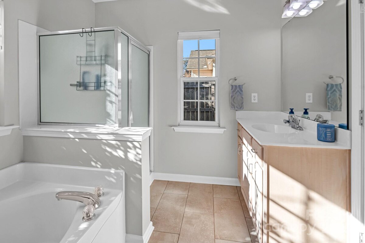 Welcome to this bright and spacious four-bedroom ranch nestled in the highly sought-after community of The Gates at Waterside. Boasting an open floorplan, this home offers a perfect blend of comfort, style, and functionality. Step inside to a large Great Room, with soaring ceilings, ideal for entertaining, a formal dining area, and an eat-in kitchen complete with granite countertops, tile backsplash, abundant cabinetry. A private office provides the perfect space for working from home. The expansive Primary Suite features a tray ceiling, walk-in closet and a spa-like ensuite bath with a soaking tub, separate shower, and dual vanities. Split Bedroom Floorplan has three additional bedrooms and a secondary bath with dual sinks offering plenty of room for family or guests. Enjoy outdoor living on the recently enlarged patio, overlooking a large, level, fully fenced, private backyard—perfect for play, pets, or relaxing evenings. Utility Shed in backyard remains for storage of lawn care items. NEW ROOF 2024. NEW HVAC 2025. New gutters and gutter guards. Extended parking pad added to the driveway for extra parking. 2-Car Garage. Residents of The Gates enjoy fantastic amenities including a community pool, playground, sidewalks. Walkable to restaurants and shopping of Waterside Crossing. Just minutes from Birkdale Village shopping and dining, with easy access to Lake Norman, Charlotte, Lincolnton, Hickory, Charlotte Airport. Low Lincoln County taxes. Lincoln County schools. This beautiful ranch has it all—space, convenience and an unbeatable location. Don’t miss it!