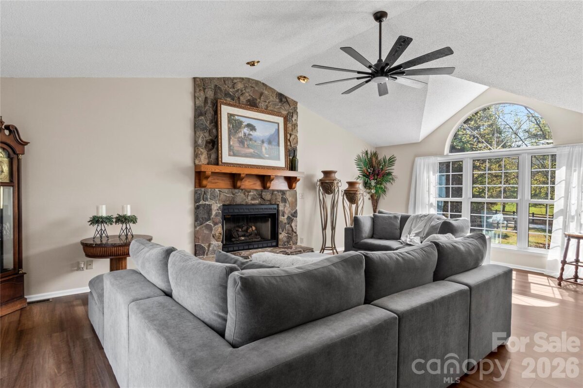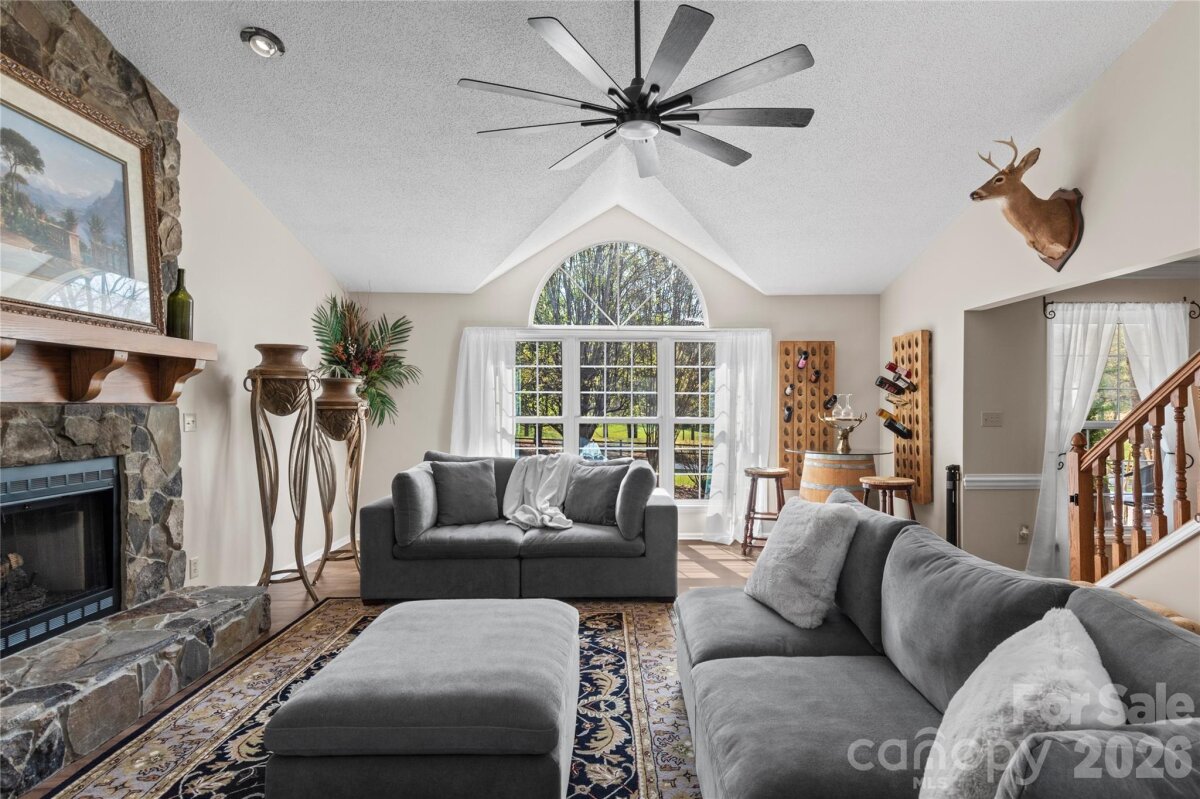 Spacious 3-bedroom, 2.5-bath home offering privacy, comfort, and a prime location! Nestled in a partially fenced setting and bordered by trees on two sides, this property provides a peaceful retreat while remaining convenient to major highways and everyday amenities. The kitchen features stainless steel appliances and flows into a bright and inviting living room with vaulted ceilings and a stunning rock fireplace. Step outside to a large multi-level deck—perfect for entertaining or enjoying the natural surroundings. Upstairs, all three bedrooms feature brand new carpet, adding a fresh, move-in-ready feel. Completing the home is a 2-car garage in the basement, providing ample storage and parking.
