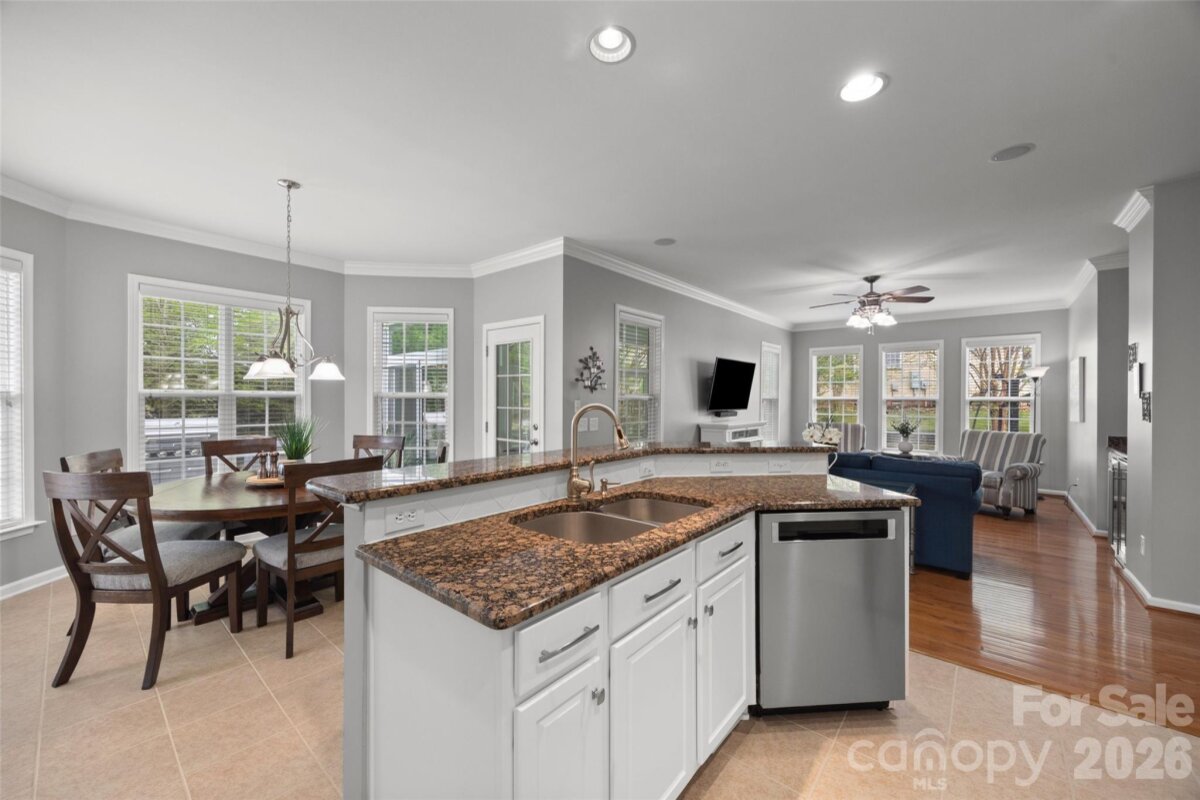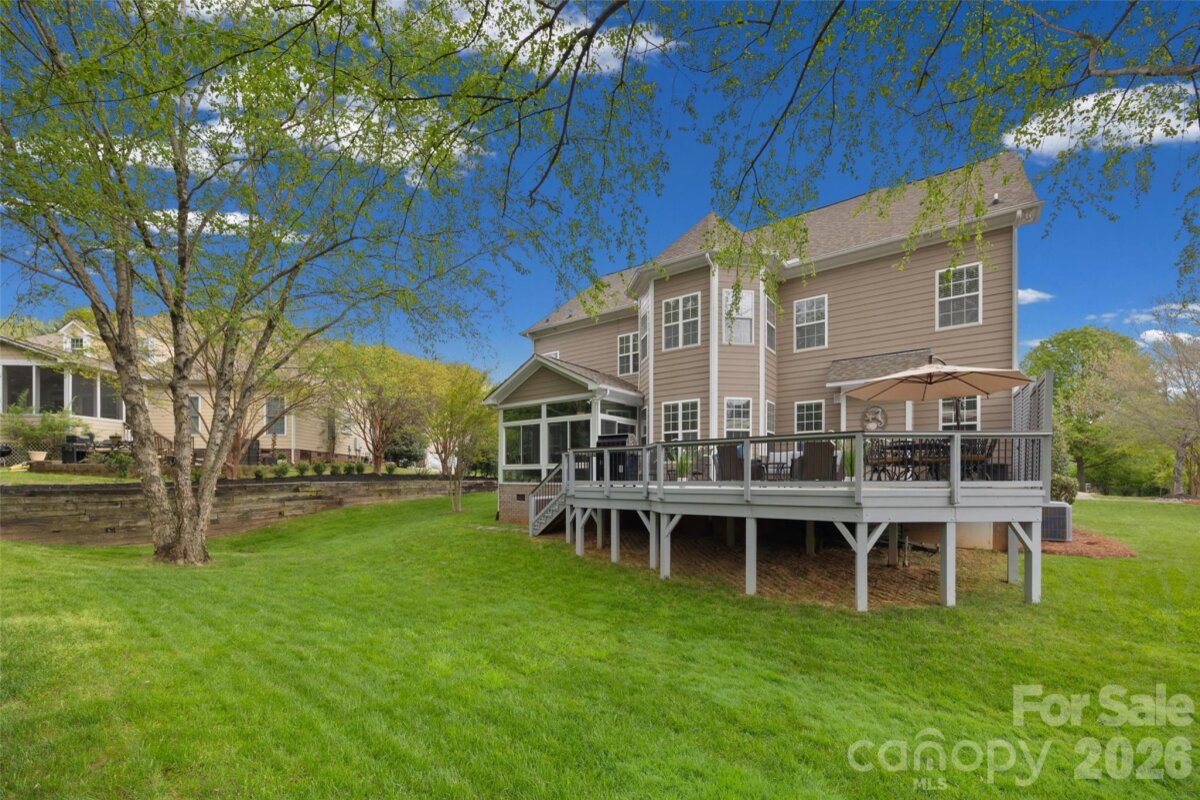 Beautiful home in sought-after Tega Cay, SC featuring 5 bedrooms, 3.5 baths, a 3-season room, and a large deck perfect for relaxing or entertaining. Meticulously maintained inside and out, this home reflects true pride of ownership and thoughtful care throughout. The bright, inviting kitchen features freshly painted white cabinetry and flows seamlessly into the main living spaces. The main level offers beautiful hardwood floors and a welcoming layout with an office, dining room, family room, keeping room, and kitchen, plus surround sound in the main living area, kitchen, and deck. Upstairs, you’ll find new carpet and generously sized secondary bedrooms, including a Jack-and-Jill bath plus an additional bedroom with an updated guest shower. The oversized primary suite offers a private sitting room, a huge walk-in closet, and a beautifully remodeled shower with dual vanities in the primary bath. Additional features include a 3-car garage with a large loft, tankless water heater, water filtration system, roof replaced in June 2020, LeafFilter gutter protection (July 2024), professionally cleaned tile, an in-ground basketball hoop, and a well-maintained HVAC system serviced every 6 months.
