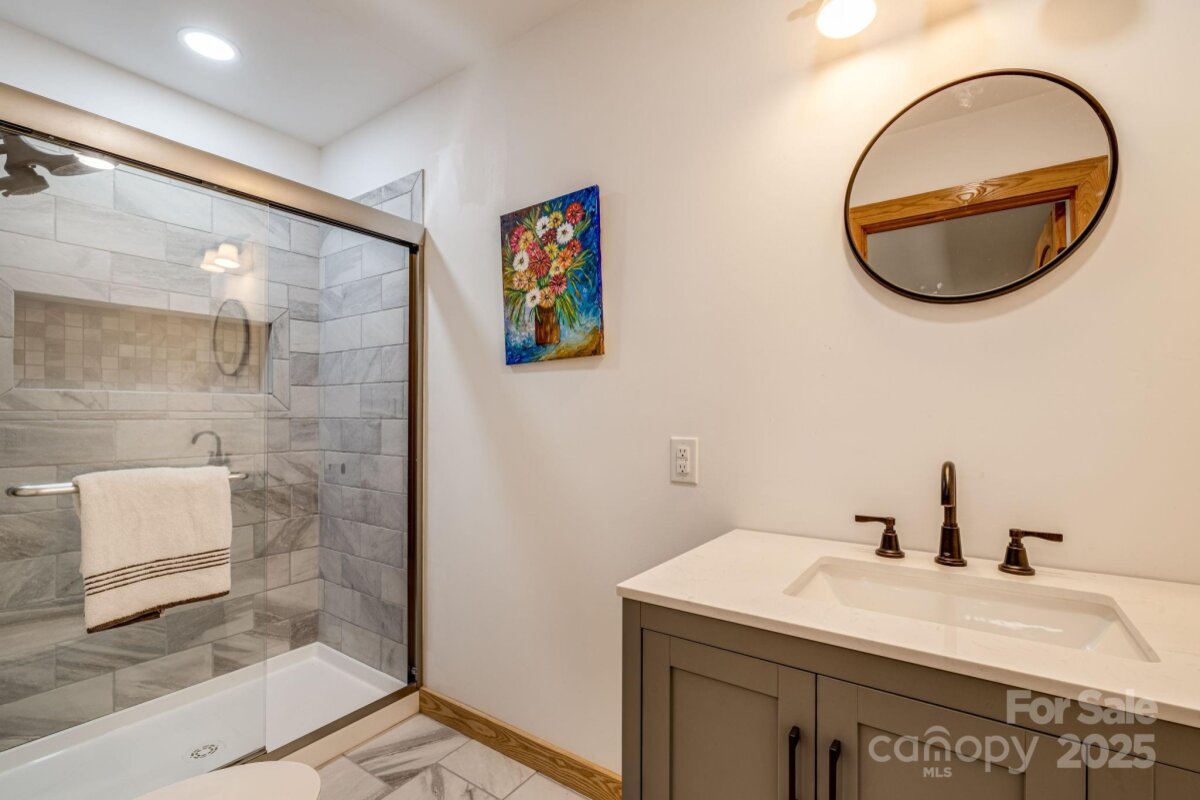 Discover a truly extraordinary opportunity to own a sprawling compound with two distinct homes, nestled on nearly 5 acres of pristine mountain land spanning McDowell and Mitchell Counties. This property offers unparalleled privacy, breathtaking long-range views and direct access to the beauty of the Pisgah National Forest. The main residence is a three bedroom 2.5 bath cabin that masterfully blends rustic charm with modern comforts. Be captivated by stunning ling range mountain views that are seamlessly integrated into the design, offering a picturesque panorama from nearly every room. The main level features a large, dedicated dining space and a cozy living area open to the kitchen. Retreat to the expansive primary suite on the second floor, accessible by your private elevator. This luxurious haven includes a separate study or work out room, a larger bathroom complete with relaxing jacuzzi tub, and a huge walk in closet. The daylight basement offers 2 additional bedrooms with walk out access. Enjoy the mountain air from multiple decks, an enclosed porch off the kitchen or from the relaxing outdoor hot tub. A generous garage/workshop with an EV charges and ample parking complete this incredible home. Just moments away sits a beautifully renovated guest house boasting 4 bedroom and 2 bathrooms on it's own 2.2 acre parcel. This pristine retreat features a large patio and a separate fire pit area, perfect for hosting family and creating unforgettable memories. With a generator hook up for peace of mind, private trails to explore and the assurance of permanent privacy as the property backs up to conservation land on one side and the Pisgah National Forest on the other, this is a rare find. Located in the coveted Little Switzerland area, this is more than a home - it's a legacy property waiting for you! Comes furnished!