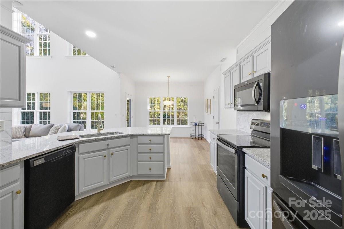 Welcome to 7709 Sedgebrook Dr E, a delightful single-family residence located in the sought-after community of The Gates. This spacious home is thoughtfully designed for both comfort and convenience with primary suite with tray ceiling and spa like bath on the main living area. It features high ceilings, four sizable bedrooms and two and a half bathrooms, providing plenty of room for relaxation and everyday activities. Nestled in a neighborhood that flanks Denver, NC, this home is conveniently located within a 3-minute drive to grocery stores, numerous restaurants, coffee shops, banks, and more. The property falls within the Lincoln County school district, providing easy access to all three public schools. Upon entering, you'll find a beautifully updated kitchen, which has been renovated with modern amenities, including updated countertops, a stylish backsplash, and new flooring throughout. The kitchen seamlessly connects to the living areas for an open and inviting layout anchered by the gas fireplace. The cozy fireplace enhances the home's appeal, creating a warm atmosphere perfect for gatherings. The property boasts a combination of carpet and luxury vinyl plank flooring, offering both durability and style throughout. Outside, complemented by an extended patio that provides added room for grilling, dining, and lounging. The backyard is fully fenced, backs up the community natural area offering privacy and a secure space for outdoor activities. A welcoming porch adds to the charm, making it ideal for relaxation or entertaining guests.The neighborhood itself features several community pools, walking trails, and parks, offering a variety of recreational options for residents. The two car garage is oversized with a storage room inside it adding extra storage. This property truly stands out, offering a harmonious blend of modern updates and classic charm. Don't miss your chance to make this house your home. Schedule a viewing today and discover all that 7709 Sedgebrook Dr E has to offer!