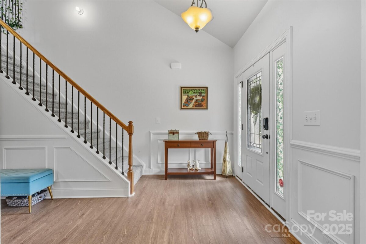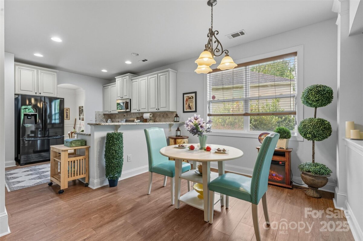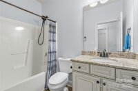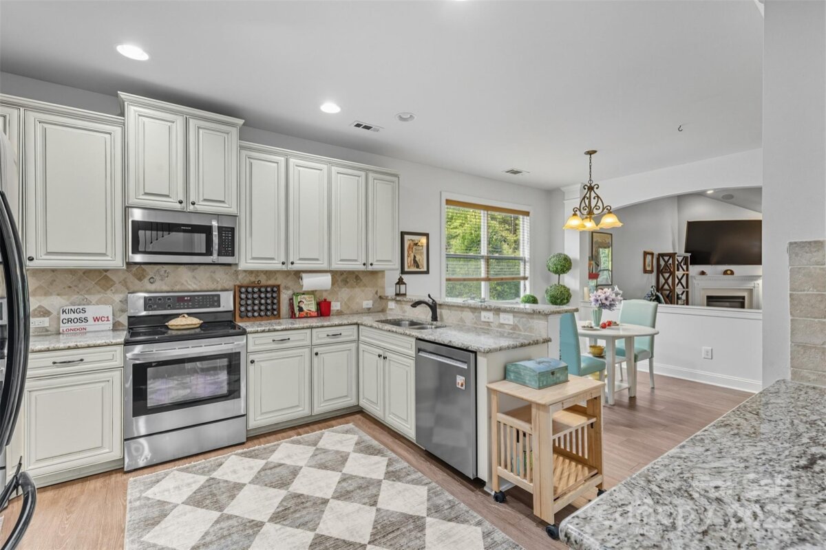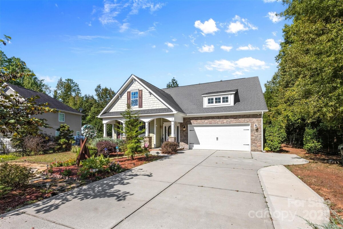 Appraised at $595,000 in 2024, this home features a charming, cottage-like curb appeal with a low-maintenance yard, eliminating the need for grass mowing. This stunning 4-bedroom, 3-bath home offers just under 3,000 sq. ft. of well-designed living space. The open floor plan is perfect for modern living, highlighted by freshly painted walls in most rooms in neutral paint. The heart of the home is the chef’s kitchen, featuring creamy white cabinetry, granite countertops, a cozy coffee bar, and all kitchen appliances, with an easy flow into both the great flex space and the formal dining room. The Great room provides the perfect spot for entertaining, while the upper level has been utilized as a second living space with kitchen amenities—ideal for guests or multigenerational use. The house sits on the quiet end of the street with only one neighbor. The backyard is tranquil and secluded. Tall, beautiful trees encompass a large swim spa and patio with a retractable awning to provide shade on hot days. Location is unbeatable—just a short walk to Wilgrove Park, offering pickleball courts, a playground, and picnic areas along the nature trail. Recent upgrades include a brand-new upstairs HVAC system and security cameras for added peace of mind. This Mint Hill gem combines privacy, convenience, and lifestyle features you won’t want to miss!