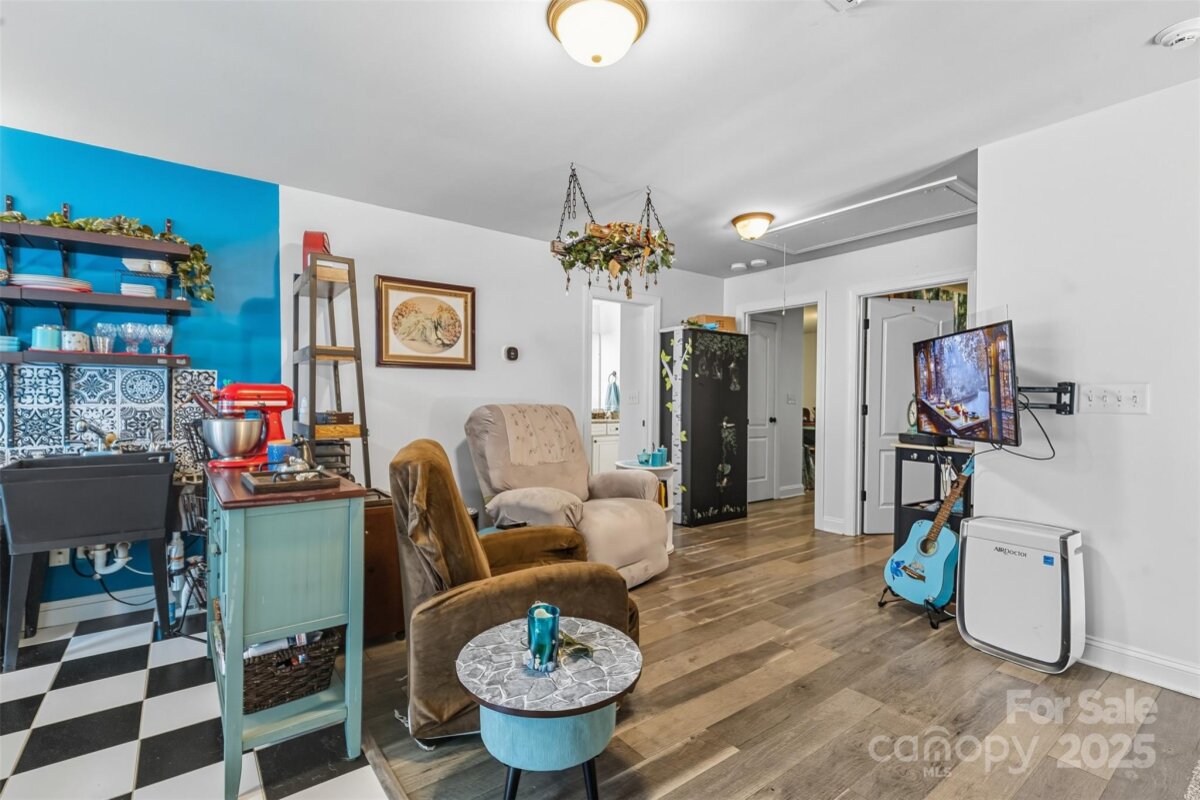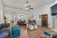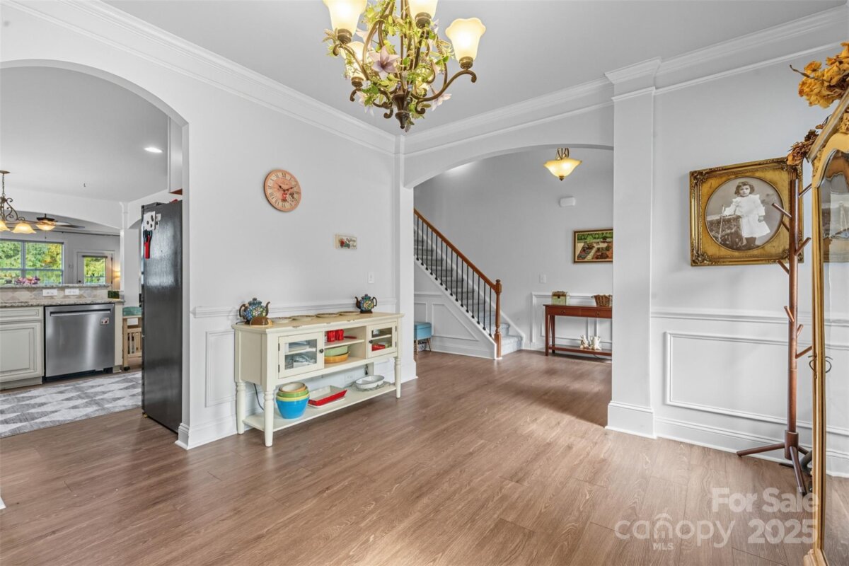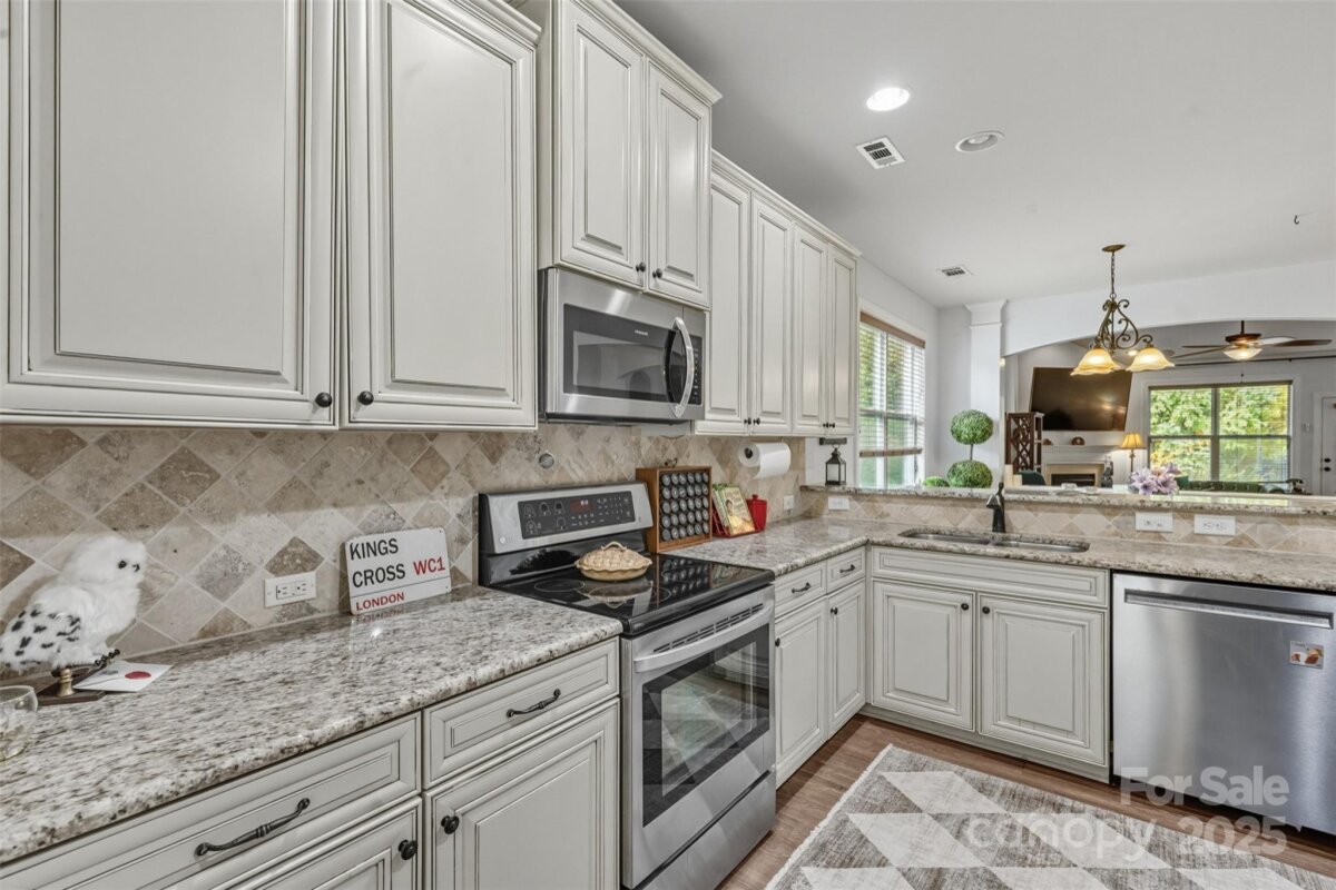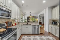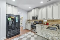 Appraised at $595,000 in 2024, this home features a charming, cottage-like curb appeal with a low-maintenance yard, eliminating the need for grass mowing. This stunning 4-bedroom, 3-bath home offers just under 3,000 sq. ft. of well-designed living space. The open floor plan is perfect for modern living, highlighted by freshly painted walls in most rooms in neutral paint. The heart of the home is the chef’s kitchen, featuring creamy white cabinetry, granite countertops, a cozy coffee bar, and all kitchen appliances, with an easy flow into both the great flex space and the formal dining room. The Great room provides the perfect spot for entertaining, while the upper level has been utilized as a second living space with kitchen amenities—ideal for guests or multigenerational use. The house sits on the quiet end of the street with only one neighbor. The backyard is tranquil and secluded. Tall, beautiful trees encompass a large swim spa and patio with a retractable awning to provide shade on hot days. Location is unbeatable—just a short walk to Wilgrove Park, offering pickleball courts, a playground, and picnic areas along the nature trail. Recent upgrades include a brand-new upstairs HVAC system and security cameras for added peace of mind. This Mint Hill gem combines privacy, convenience, and lifestyle features you won’t want to miss!