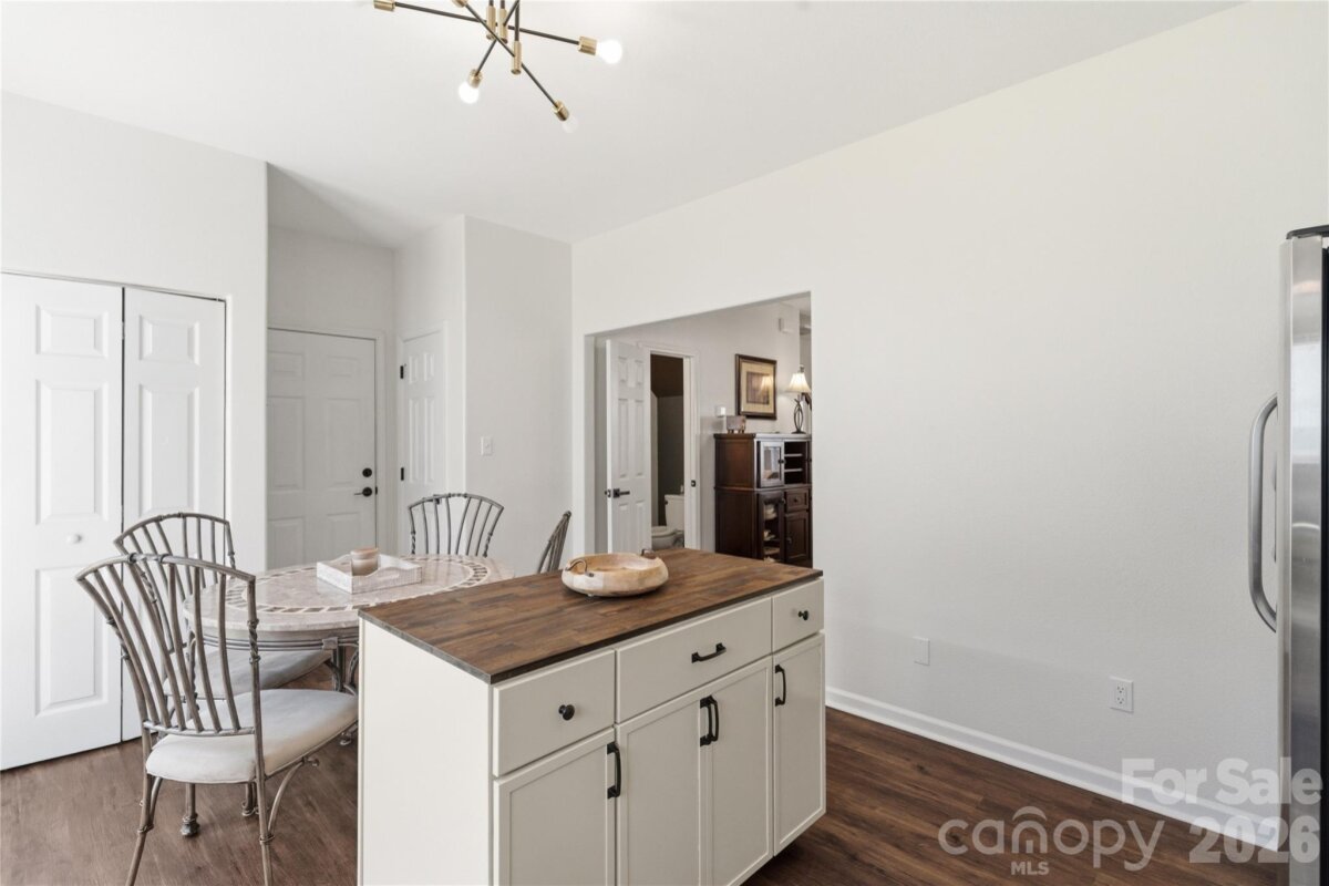 Welcome to this move-in-ready home with thoughtful updates throughout, offering both comfort and value. The main level features an open and inviting layout with a spacious living area and fireplace, flowing seamlessly into the kitchen and dining space, perfect for everyday living and entertaining. The kitchen features updated cabinet hardware with soft-close hinges, ample counter space, a newly added island for additional prep space and functionality, and direct access to the fully fenced flat backyard, ideal for pets, play, or relaxing outdoors. Upstairs, the primary suite features a standout walk-in closet with custom built-in cabinetry, along with a spacious bedroom filled with natural light. There are two additional spacious secondary bedrooms on the upper level, each with walk-in closets, offering flexibility for guests, office space, or growing needs. Recent updates include fresh interior paint throughout, updated light fixtures, new door hardware, and new outlets (some with USB charging ports). Conveniently located in a desirable community featuring a pool, clubhouse, and playground, all just minutes from shopping, dining, and major commuting routes. A great opportunity for first-time buyers or anyone seeking a well-maintained, low-maintenance home in Charlotte.