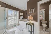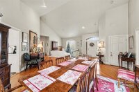 Nestled in the heart of the highly desirable Montibello neighborhood, this classic brick home offers timeless charm, thoughtful design, and a floor plan that truly delivers—highlighted by a spacious primary suite on the main level. A welcoming front entry opens to a light-filled living room with vaulted ceilings, hardwood floors, and elegant arched windows and doorways, creating an airy and inviting first impression. Multiple living spaces provide flexibility, including a comfortable family room featuring a fireplace with custom mantel, recessed lighting, and tile flooring, ideal for everyday living and entertaining. The kitchen is generously sized and designed for functionality, featuring white cabinetry, abundant counter space, tile flooring, and a large center island with seating, seamlessly connecting to the surrounding living and dining areas. The main-level primary suite serves as a private retreat with tray ceiling detailing, hardwood floors, and direct access to the backyard, offering a peaceful indoor-outdoor connection. The ensuite bath and generous layout provide comfort and convenience rarely found in this location. Upstairs, additional bedrooms are well proportioned with vaulted ceilings, large windows, and neutral finishes, offering versatile space for guests, home offices, or bonus living areas. Outdoor living is enhanced by a private, fenced backyard with mature trees and landscaping, complemented by a brick patio and pergola, perfect for relaxing or entertaining in a serene setting. Known for its tree-lined streets, strong sense of community, and proximity to SouthPark shopping, dining, and top Charlotte amenities, Montibello remains one of South Charlotte’s most sought-after neighborhoods. This home presents a rare opportunity to combine location, livability, and long-term value.