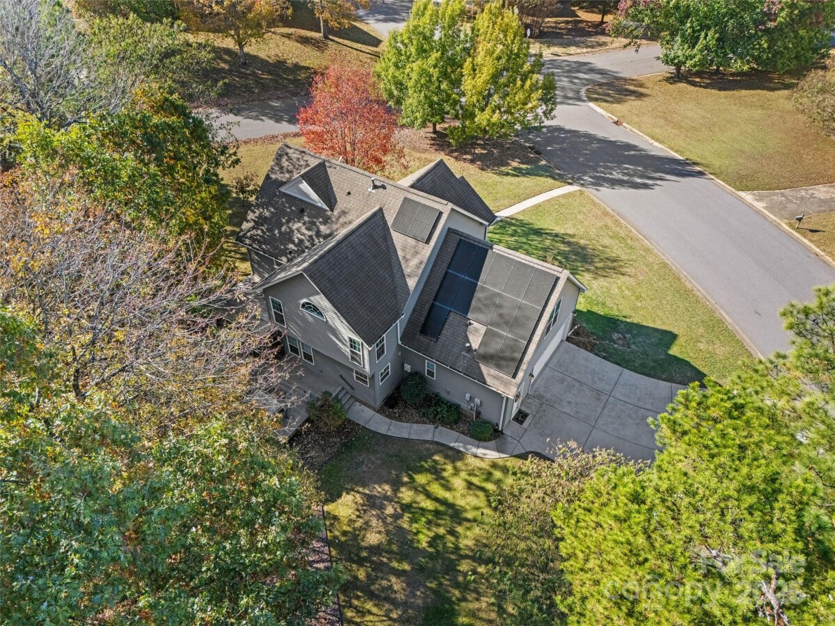 This well-maintained, move-in-ready home offers exceptional value where it matters most, major systems, energy efficiency, and long-term reliability all set on a spacious corner lot in the Orchard Park community of Harrisburg. For buyers focused on cost of ownership, this home stands out. Owned solar panels with a transferable warranty help keep energy bills low, while a new water heater (2025) and two newer HVAC systems (upstairs 2020, downstairs 2023) reduce the likelihood of near-term replacements. These meaningful upgrades translate directly into savings, predictability, and peace of mind. Inside, the layout is bright and functional with abundant natural light, hardwood flooring on the main level and upstairs hallway, and a neutral palette that offers a clean canvas for future personalization. The kitchen features white cabinetry, granite countertops, stainless steel appliances, tile backsplash, and a refrigerator that conveys—providing classic style with practical updates. Upstairs, the primary suite is spacious with vaulted ceiling and an updated bath with free standing tub. Well placed secondary bedrooms for extra privacy allows flexibility for guests, home office, or hobby space. The guest and half baths have been refreshed, maintaining cohesion while preserving the home’s established character. Outdoor living includes a screened-in porch overlooking the backyard, along with a simple fire pit area with built-in bench seating, an easy, low-key space for casual evenings or seasonal use. The corner lot adds privacy and presence, while extra garage storage and the conveying washer and dryer add everyday convenience. Orchard Park is an established community known for mature trees and amenities including a pool, clubhouse, playground, and resurfaced tennis courts. The location offers convenient access to Cabarrus County schools, Harrisburg Town Center, shopping, dining, and I-485. An excellent opportunity for buyers who prioritize solid systems, lower energy costs, and the flexibility to update cosmetic finishes over time.