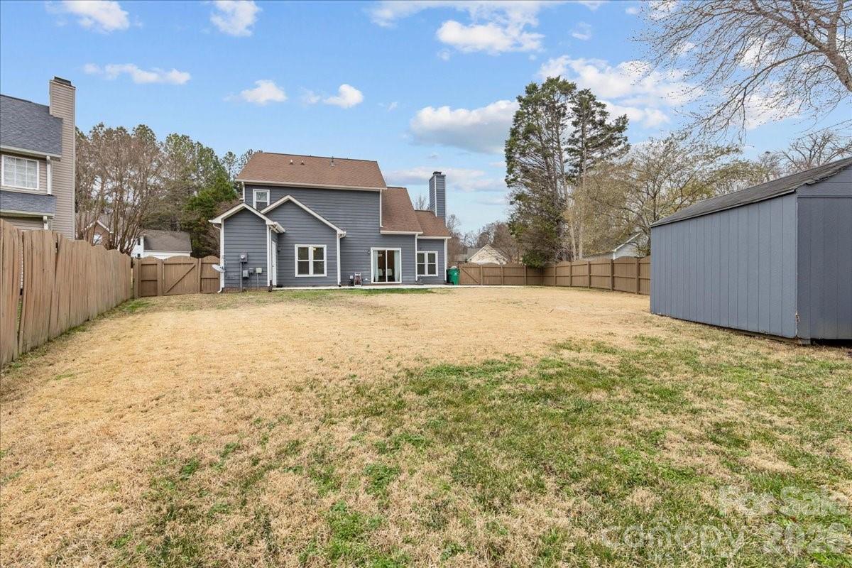 Welcome to this charming 3-bedroom, 2.5-bathroom, two-story home nestled in a quiet community just north of Charlotte's vibrant city center. The inviting living room, boasting vaulted ceilings and a cozy fireplace, seamlessly transitions into the dining area and kitchen—creating a perfect space for entertaining. The primary suite is conveniently located on the main level, offering both privacy and accessibility. Upstairs, you'll find two spacious bedrooms, a full bathroom, and a versatile loft—ideal for a home office, playroom, or additional living space. Step outside to the large backyard with a patio and privacy fence, ideal for outdoor entertaining and relaxing. You'll also love the added convenience of a shed and an outdoor storage closet, offering plenty of space to keep your tools, gear, and seasonal items organized. The expanded driveway provides ample parking for family and guests. Conveniently located near Mountain Island Lake, the brand-new Long Creek Greenway, and a variety of restaurants and shopping options. Commuting is a breeze with easy access to I-77 and I-485. Don’t miss the opportunity to make this wonderful home yours!