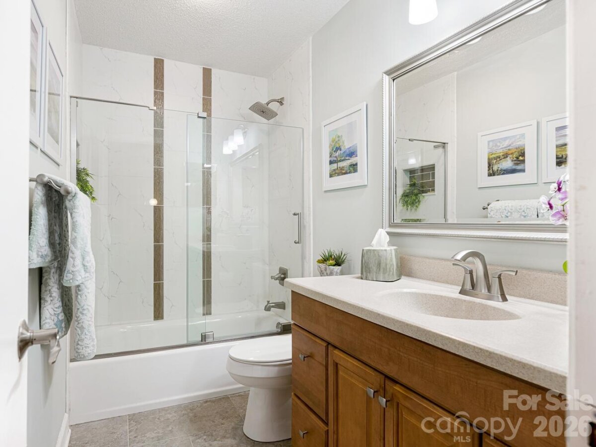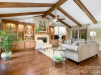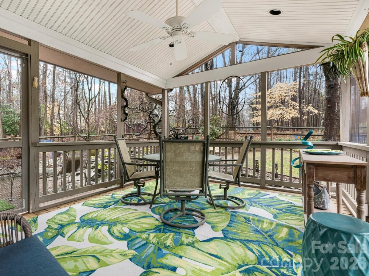 Charming gem of a one-level home on a large shady lot at the end of a quiet street in South Charlotte. Beautifully maintained property boasts gorgeous landscaping with a mix of annuals and perennials in extensive planting beds and a lovely pond with waterfall adjacent to the spacious rear screened porch. Vaulted great room has windows on 3 sides, centered on a fireplace flanked by custom built-ins. Great flow in the living spaces--great room and dining room open onto side deck; screened porch is off the dining room, which is currently being used as a den; kitchen is in the heart of the house, overlooking the rear yard. Bedroom wing includes primary suite with walk-in closet, two additional bedrooms, hall bath with tub and a laundry room with great storage. Recent updates include 2022 roof and 2023 HVAC.