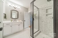 Estate living at its finest in this exceptional 2021 custom luxury home, ideally set on a private .90-acre lot in Mint Hill. This full brick residence blends timeless French Provincial–inspired architecture with modern comfort and thoughtful design, creating a true retreat for both everyday living and elegant entertaining. Designed for main-level living, the home features hardwood floors throughout the primary living and common areas. The open, inviting floor plan includes a dedicated main-floor office, formal dining room, breakfast area, butler bar and pantry, and a spacious great room anchored by a fireplace—perfect for gatherings large or small. The chef’s kitchen showcases a gas cooktop and high-end custom finishes, while smart Hue lighting adds modern convenience throughout the home. The primary suite offers a spa-like escape with a soaking tub and refined finishes. In total, the home offers 5 bedrooms, 3 full baths, and 1 half bath, providing flexibility for guests, family, or multi-generational living. A large upstairs bedroom is perfectly suited for entertaining and is already plumbed for a future wet bar, making it ideal as a bonus lounge, media room, or private guest retreat. Outdoor living is equally impressive with an expansive screened rear porch overlooking the private backyard, complete with an outdoor grill, creating the perfect setting for year-round entertaining, relaxing, or hosting memorable gatherings. Additional highlights include an oversized two-car garage, Tesla EV charger, wiring for a generator and hot tub, and quality craftsmanship throughout that reflects meticulous care and pride of ownership. Conveniently located just 7 minutes from I-485, 10 minutes to downtown Mint Hill, and 20 minutes to Matthews, this property offers the perfect balance of privacy, accessibility, and luxury living.