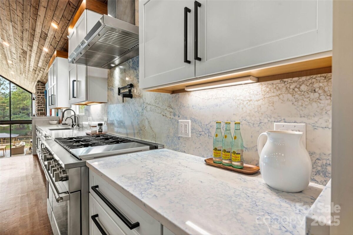 Waterfront custom home w/ one-of-a-kind architecture is a must see & rare find on Lake Norman, NC! Like new, built in 2024 offering approx 5,000 under-roof sq ft that blends indoor luxury w/ outdoor entertaining & fun in the sun! Home is situated in highly sought-after Westport in Denver, NC on a an easily navigable cove offering protection from main-channel wakes & noise. Composite wood floating dock w/sun deck, covered boat slip, & 8000 lb capacity boat lift. This is a bustling tree-lined cove w/ swimmers & 4-legged friends many months of the year, followed by a peaceful retreat to overlook smooth-as-glass water w/ beautiful NC colorful fall foliage. Cold-e-sac w/ no through traffic. Rear fenced in yard flanked with landscaping has a gentle slope to the lake that's ready for your dream pool. Inside, the soaring ceilings & oversized windows offer plenty of natural light. The heart of the home - main-level gourmet kitchen w/ oversized island w seating & appliances to wow the chef! Upper level is only a few steps & hosts the primary suite w/ private attached sundeck. Lower-level features 2-story great room w/floor to ceiling fireplace & game room w/wet bar for entertaining! Game room also has 2 custom-built full-size murphy beds & a full bath for extra visitors. Enjoy rear patio with custom sunshade & hot tub off the 2-story great room & game room. 3 more bedrooms/office & 2 more full baths are tucked away on the main floor behind the kitchen. Generous 2-car garage offers 815 sq ft w epoxy flooring & utility sink. Stamped driveway extends to front door entry & to rear yard. Memberships available to Westport Golf Club including tennis, pickleball, outdoor pool w/ kids splash area, fitness center, & new clubhouse for social events - westportgc.com. 5-minute drive to grocery, dining, retail, & access to HWY 16 for travel to Charlotte, Huntersville, or Hickory. Short term rentals permitted & home has an excellent history of rental success. Patio furniture, grills, poker table, washer, dryer convey. Take Fairfield Forest Rd off HWY 16 for easiest access to the home. OPEN HOUSE, Sat 10/4 12-2pm & Sun 10/5 1-3pm.