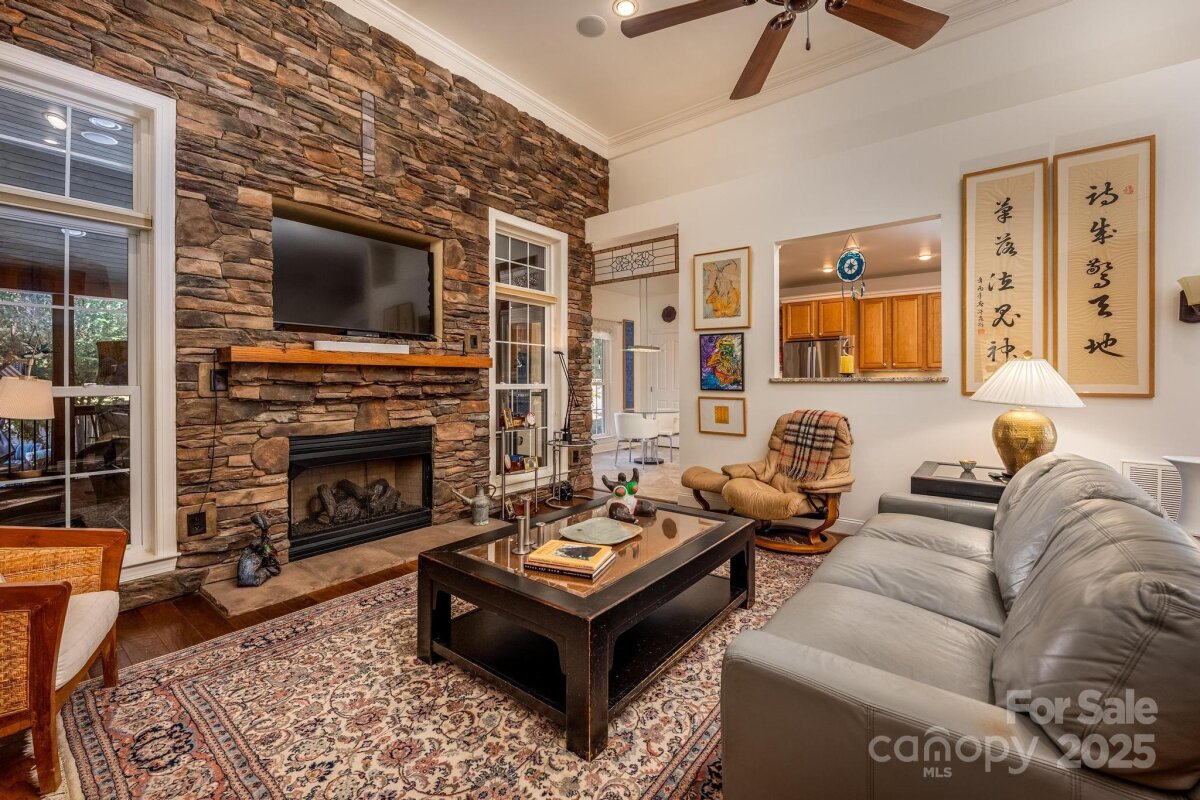 Welcome home to this immaculate ranch ideally situated on the scenic 11th hole of the Westport Golf Course and featuring a gorgeous heated saltwater pool! This custom-built home offers exceptional craftsmanship, architectural detailing, and modern elegance throughout. Step inside to find a bright, open-concept floor plan highlighted by wide-plank wood flooring, tall ceilings, and abundant natural light. The gourmet kitchen will impress with its rich wood cabinetry, granite countertops, stainless steel appliances, tiled backsplash, and large center island perfect for entertaining. The adjoining dining and great rooms flow seamlessly together, anchored by a striking stacked-stone gas fireplace that creates a warm and inviting focal point. The spacious primary suite is a private retreat with tray ceiling, sitting area, and a stunning stone fireplace. The en-suite bath offers a cathedral ceiling, dual vanities, a garden tub, separate shower, and a generous walk-in closet. The split-bedroom design provides privacy for guests or family, while the upper-level bedeoom with full bath makes an ideal flex space—perfect for a home office, guest suite, exercise room or media room. Outdoor living is just as impressive! Relax & enjoy your backyard private oasis featuring a large screened porch with a wood plank tall ceiling that overlooks the fenced backyard and sparkling heated pool, surrounded by a manicured lawn and mature landscaping that add to the sense of privacy and tranquility. A three-car courtyard garage provides ample parking and storage. Located in a private cul-de-sac. Bonus extras in this home: A 325 gallon (owned) above ground propane tank that is for home heating, fire places & the pool heater. There are also 3 other 100 gallon(leased) above ground propane tanks to fuel the Whole House Generac Generator & gas stove. Enjoy the perfect blend of comfort and luxury in this move-in ready home, located in desirable Westport—offering memberships at Westport golf course & clubhouse. The Westport Swim & Tennis Club offers memberships with the amenities of: a fitness center, tennis courts, and community pool. Lake Norman is a quick walk down the street! The nearbye Westport Marina offers full boating services, wet slips, & dry stack storage. The Freedom Boat Club also offers boat rental options. Located on the west side of Lake Norman close to shopping & restauants with a quick commute to Charlotte & the international airport. Don't miss this opportunity to own your own private oasis at Lake Norman!
