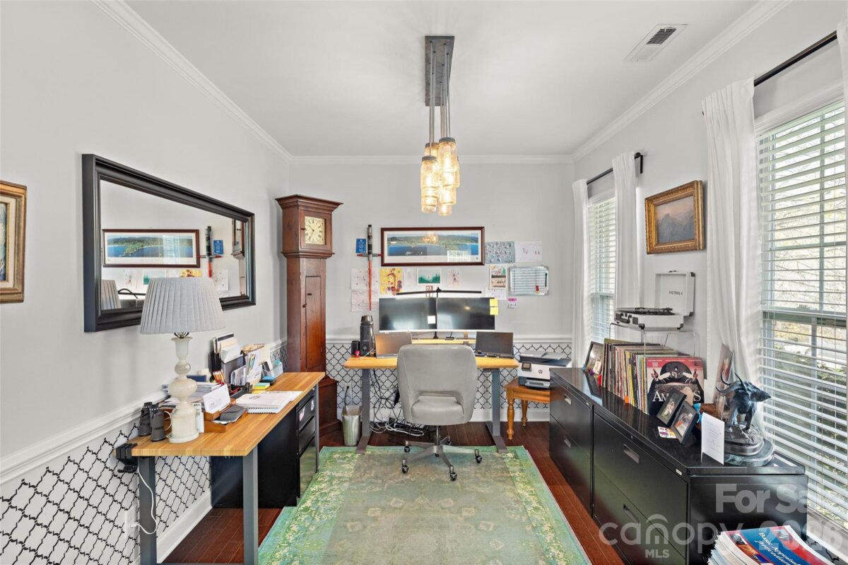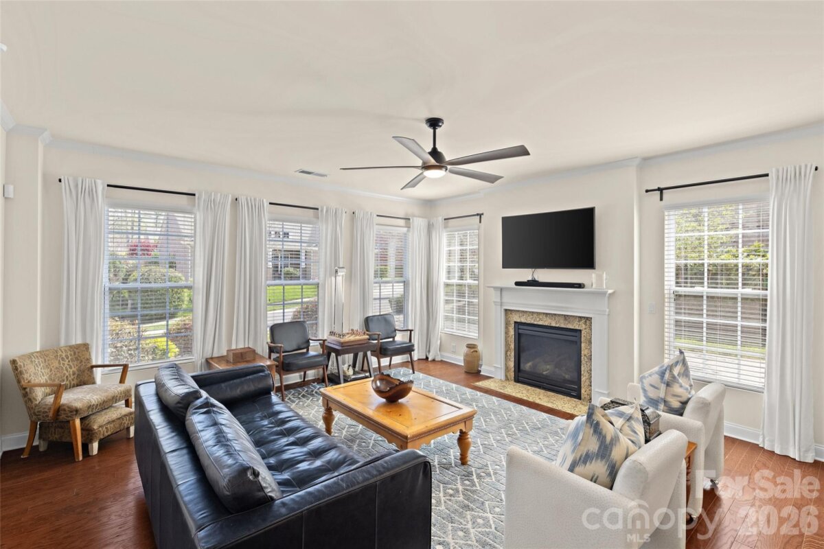 Handsome brick home nestled on a quiet cul-de-sac street in popular South Charlotte! This light-filled floorplan offers 4BR, 2.5BA, and 2,600+ sq/ft of comfortable living space with an open, inviting layout. Beautiful hardwoods throughout the main level. Formal dining room (currently used as an office) and a welcoming living room with gas log fireplace provide flexible living and entertaining spaces. The kitchen is equipped with granite countertops, breakfast bar, center island, stainless steel appliances, pantry, and opens to a sunny breakfast area. The main-level primary suite features a spacious walk-in closet and en-suite bath with dual vanity, glass walk-in shower, and garden tub. Laundry room/drop zone with built-in storage and attached 2-car garage with workshop add everyday convenience. Upstairs includes 3 spacious secondary bedrooms, a full bath with dual vanity, and a loft/bonus room. Enjoy outdoor living with mature landscaping, covered deck, sunny patio, and built-in grilling station with gas grill—plus a flat yard and additional cleared natural space. Outfitted with solar panels, offering improved energy efficiency and reduced utility costs. Just minutes from McAlpine Creek Greenway and convenient to SouthPark, this move-in ready home checks all the boxes!
