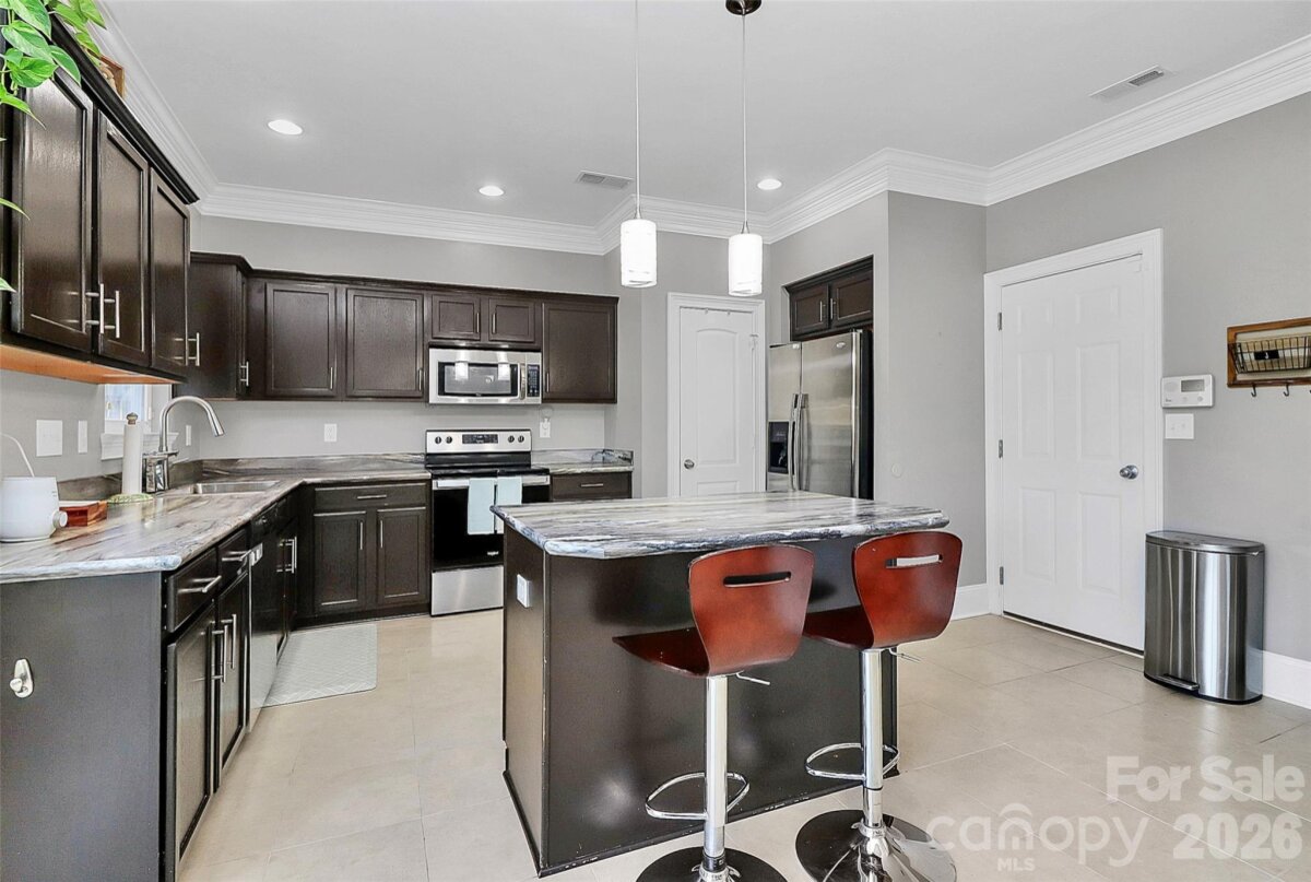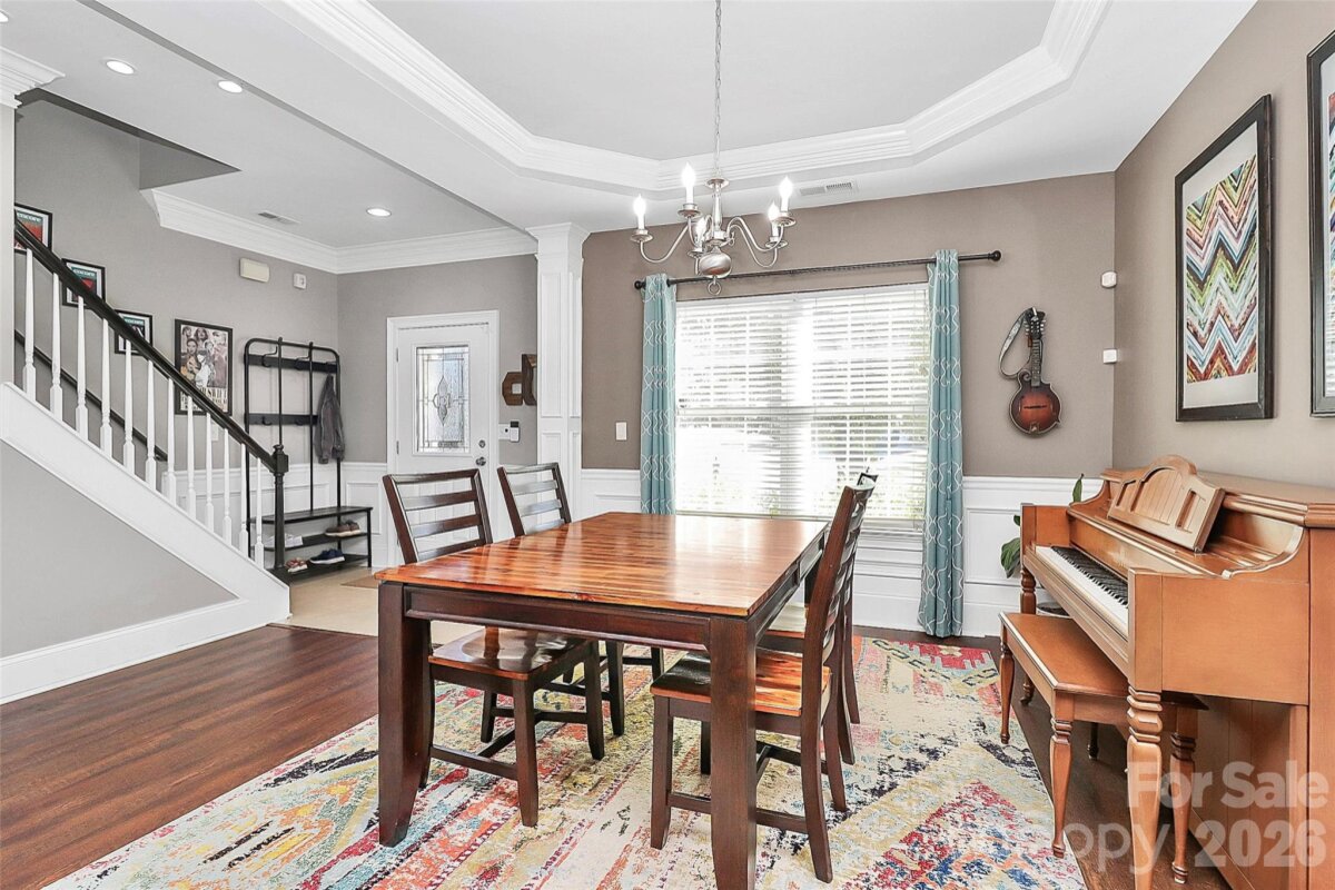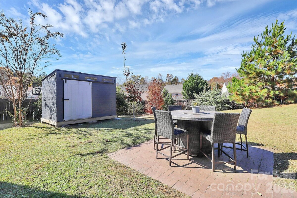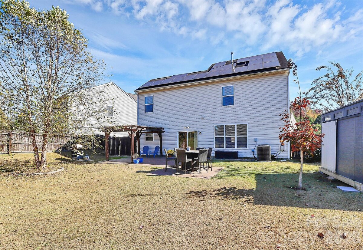 Welcome to this beautifully maintained 4-bedroom, 2.5-bath located in the desirable Kingstree Subdivision. Home features Solar Panels for enhanced energy efficiency and long-term savings! This inviting home offers a functional and flowing layout, perfect for everyday living. Step inside to a welcoming dining room that seamlessly connects to the spacious living area and kitchen, creating an open and comfortable feel throughout the main level. Upstairs, you’ll find all four generously sized bedrooms, offering plenty of space for family, guests, or a home office. Step outside and enjoy the fully fenced backyard with an oversized paver patio and additional detached storage for tools, equipment, or hobbies. Enjoy all the perks of community living with access to a neighborhood pool, clubhouse, and two playgrounds, perfect for relaxing or staying active. Conveniently located near I-485 and I-85, this home offers easy access to shopping, dining, and commuting routes making daily life a breeze. NOTE: Bar in the garage does not convey.