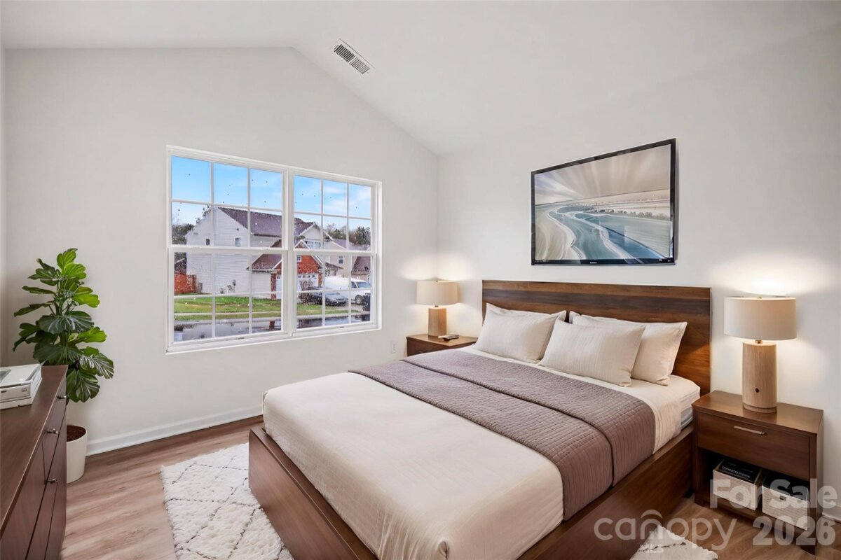 FULLY UPDATED 2026!!! Like new home with open main level living and an upstairs bonus room in the Family Friendly Kingstree community. New Updates include all new plank flooring throughout the entire main level including bedrooms & bathrooms and a full kitchen renovation including new cabinets, counters, fixtures & appliances! Bonus room upstairs has new carpet & ceiling fan. Home is located inside the I-485 loop convenient to travel into and around the Charlotte area. Inside you'll find an open living plan with vaulted ceilings and large windows + sliding door to back patio creating a bright and open space. Dining area off to the side plus a breakfast bar in the kitchen providing additional seating when hosting family & friends. Primary bedroom has vaulted ceiling & huge walk-in closet plus attached full bath with dual sinks, soaking tub & stand-up shower! 2 additional guest beds plus full hall bath for guests. Front room over garage is the perfect media space or home office area. Community has spacious playground and outdoor pool for summer fun!