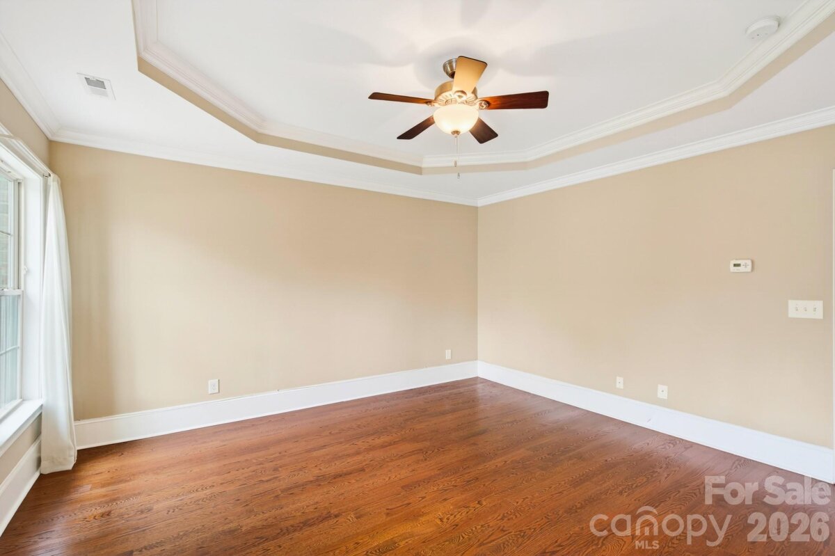 Quietly positioned at the end of a cul-de-sac in south Charlotte, this all-brick home offers a rare combination of privacy, quality construction, and thoughtful design. The floorplan feels spacious and well-composed throughout — the kind of layout that accommodates real life without sacrificing style. Mature trees, a wooded backdrop, and no immediate neighboring homes create a naturally secluded setting, while the location keeps everyday convenience well within reach. Inside, tall ceilings and oversized interior doors lend the main level a refined, airy character. Finishes and upgrades throughout are polished and intentional, giving the home a distinctly elevated feel. The kitchen is a true centerpiece — anchored by a large island and breakfast bar, with generous counter space, a sunny eat-in area, and a walk-in pantry that keeps things beautifully organized. A butler's pantry adds additional prep and storage space, making entertaining feel seamless. The kitchen opens directly into the living room, where a gas fireplace adds warmth and ambiance — an ideal layout for gathering, hosting, and everyday connection. A separate formal dining room sits just off the kitchen, ready for the occasions that call for a proper table setting. The sunroom extends the living space beautifully, offering a bright, comfortable room that works year-round — morning coffee, a reading nook, or a relaxed space to enjoy views of the wooded backyard. Outside, the fenced yard and brick paver patio provide a private, tree-lined setting ideal for outdoor dining, entertaining, or simply unwinding. The large main level suite is a genuine standout — spacious, private, and appointed with a full bath and walk-in shower. Whether for guests, extended family, or multigenerational living, it functions as a true retreat rather than an afterthought. Upstairs, the primary suite delivers an elevated sense of comfort, with a tray ceiling, soaking tub, separate shower, and generous vanity space — a well-designed escape at the end of the day. Additional bedrooms are well-proportioned and thoughtfully sized, with one oversized room offering real flexibility as a media room, home gym, playroom, or whatever the next chapter calls for. An upper-level laundry room adds the kind of everyday practicality that's easy to appreciate. The outdoor living space is a true extension of the home and every bit as considered as the interior. A custom brick paver and stamped concrete patio wraps the back of the house with a finished, intentional feel, anchored by a curved natural stone seating wall that's as functional as it is beautiful. Mature trees surround the property on all sides, creating a canopy of privacy that feels truly tucked away. Whether you're entertaining under the trees, enjoying a quiet evening by a firepit, or simply taking in the view — this backyard delivers that rare, secluded feel that's hard to find this close to the city. A side-entry garage and quiet cul-de-sac positioning add to the home's refined curb appeal, while the all-brick exterior ensures lasting quality and low maintenance. Set in one of southeast Charlotte's most established and convenient corridors, the home is minutes from The Arboretum at Providence Road and Highway 51, with a strong mix of everyday shopping, dining, and services. Downtown Matthews is just down the road, offering a charming small-town feel, local restaurants, and the region's largest producer-only farmers market. SouthPark — Charlotte's premier destination for luxury retail and fine dining — is an easy drive, and major corridors provide straightforward access to Uptown and the broader metro. This home provides the best of both worlds: a private, serene setting with every convenience, restaurant, and entertainment option right at your doorstep.