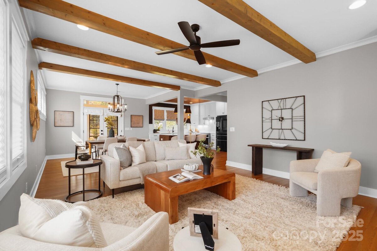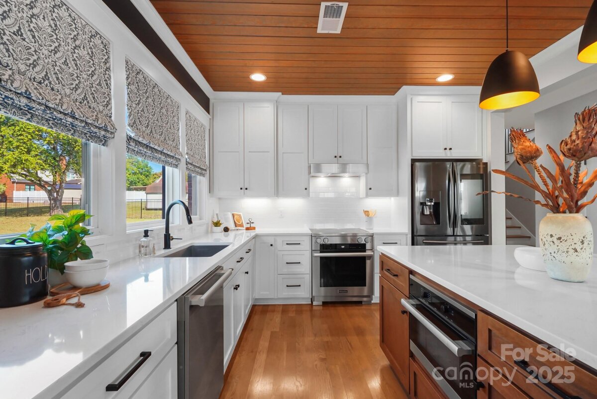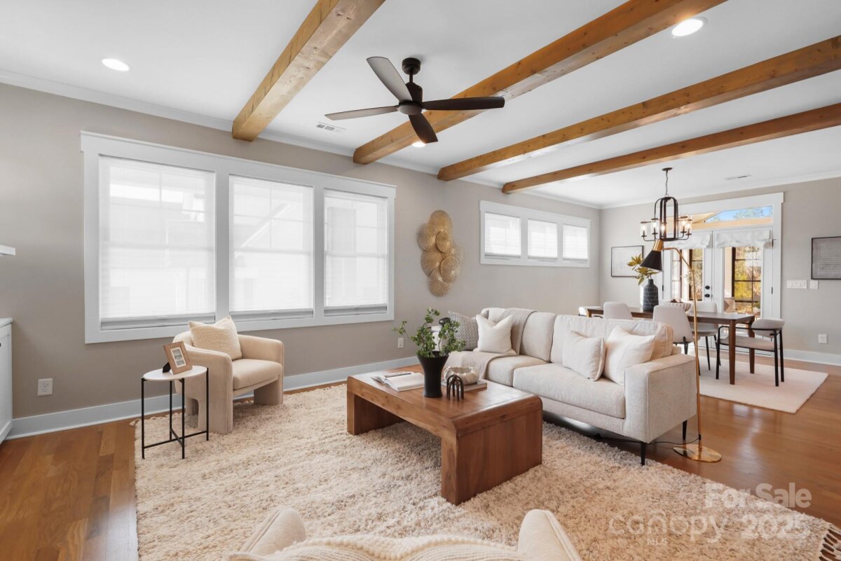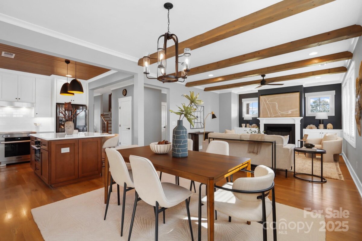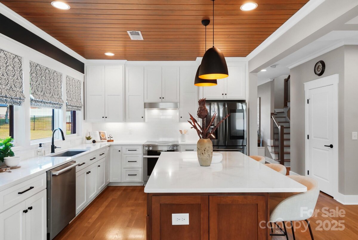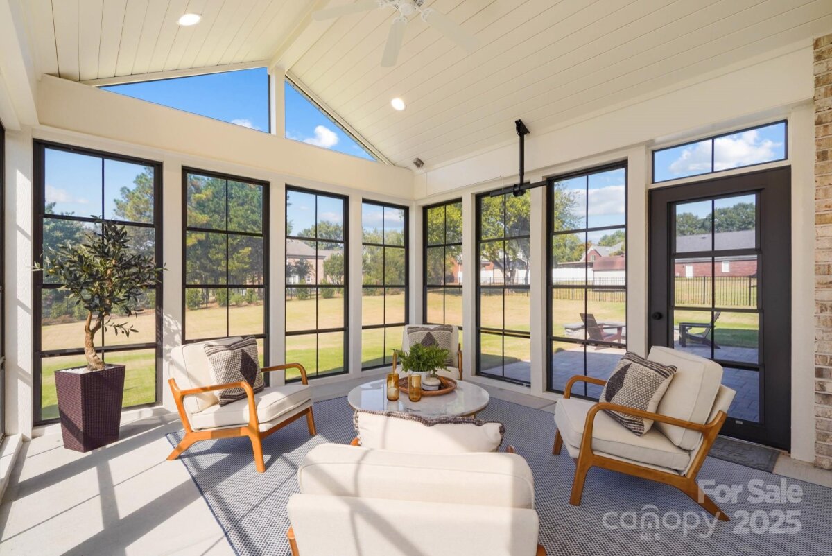 Welcome to a jaw dropping, custom luxury home located in desirable Harrisburg, North Carolina on over half an acre! This home features gorgeous flooring, upgraded lighting, cathedral ceiling, custom wood paneled ceiling in the kitchen, high end appliances plus beautiful upgraded cabinetry, backsplash, and countertops! The living room features a cozy fireplace, stunning wooden beams, and built-ins framing the fireplace! Downstairs also features a side door drop zone, large walk in laundry room, spacious garage, and what is sure to be your favorite spot in the house- the sunroom! The sunroom windows can fully close or fully open, making it a screened in porch for those beautiful Fall evenings! Upstairs, you'll find a spacious primary suite with dual closets, dual sinks, plush new carpets, and a tray ceiling! There is an office/flex space plus 3 additional bedrooms! Outside you'll fall in love with the massive fully fenced yard and expanded patio with a built in, push button gas fire pit! This home is an entertainer's dream! And did I mention the wrap around covered front porch? : ) Last but not least, the home features a whole home water filtration system, excellent schools, and a beautiful neighborhood- convenient to shopping, dining, and only 20 minutes to Uptown! Hurry to see this masterpiece before it's gone!