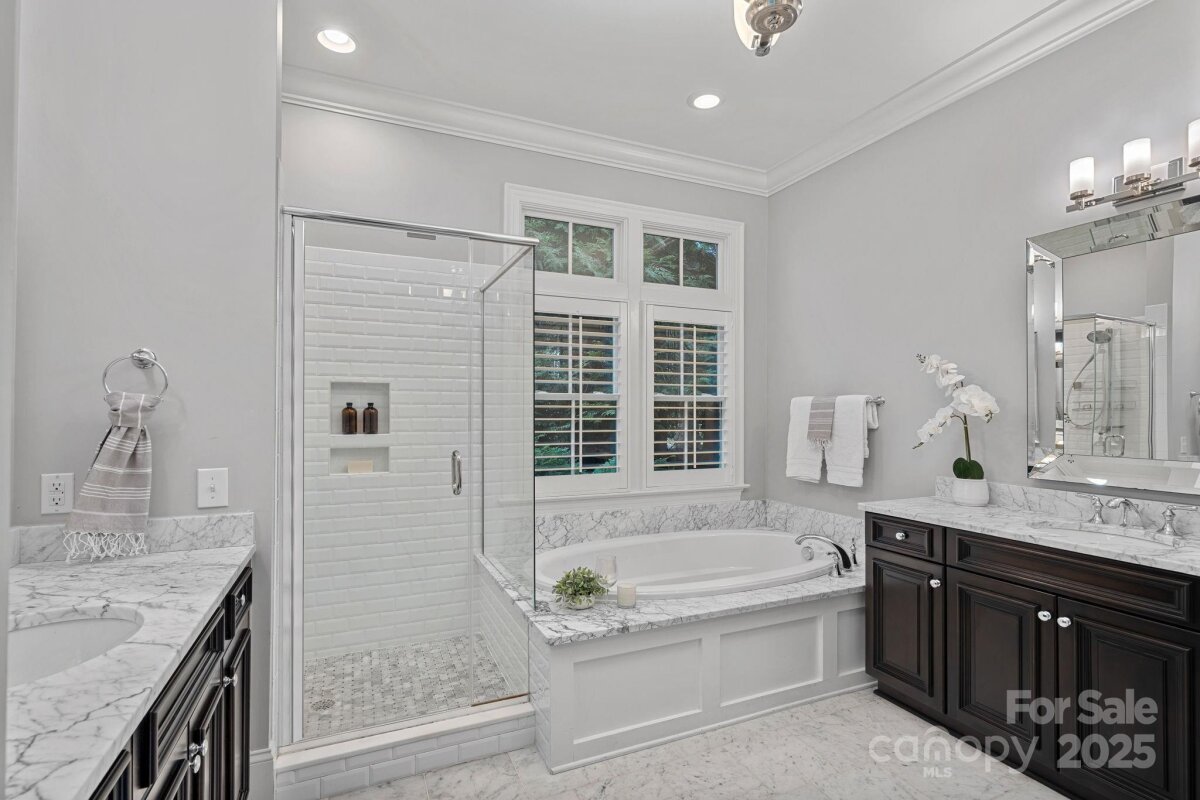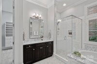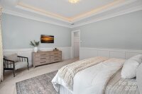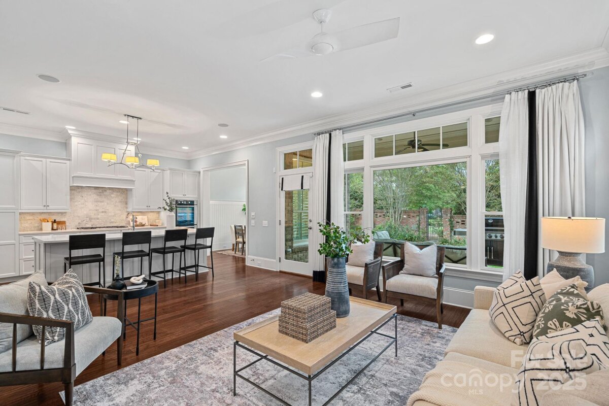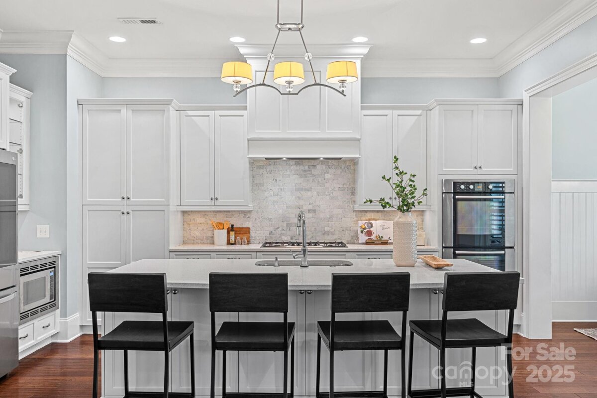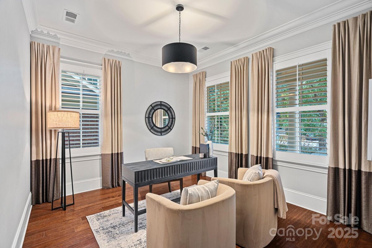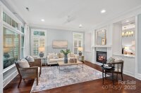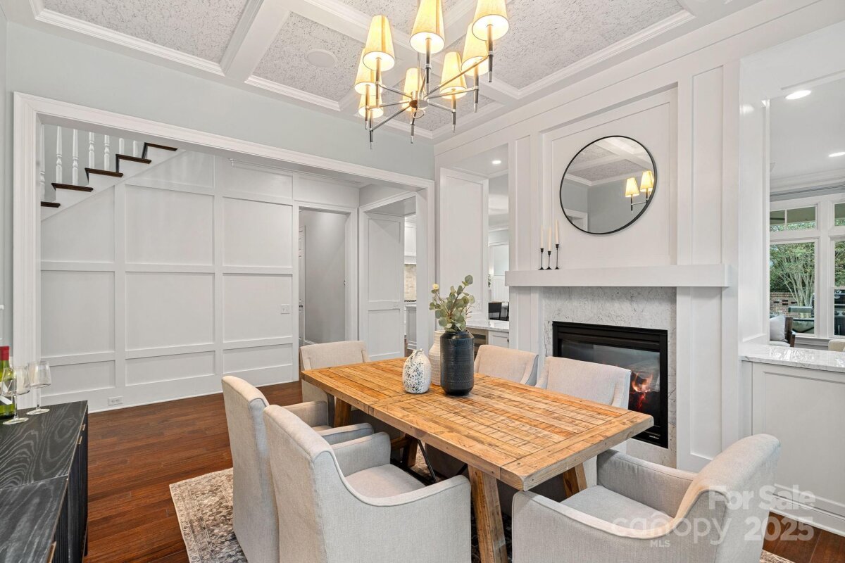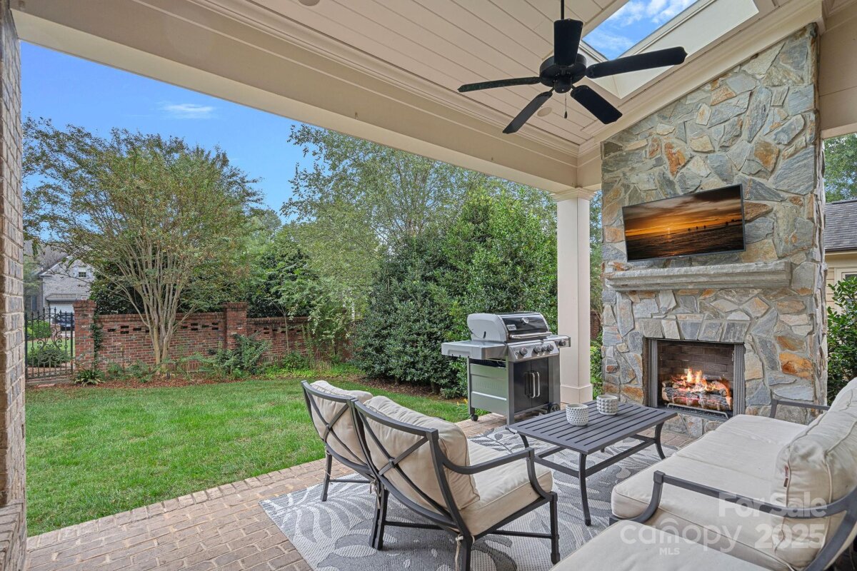 Stunning 4-bedroom home nestled in the highly sought-after gated community of Bellmore Hall. Built by Simonini Builders in 2010, this gorgeous home was the former model and blends sleek, modern lines with warm, inviting spaces. Inside you'll find a beautifully appointed kitchen featuring an abundance of cabinetry, a large center island, and a charming breakfast area with wainscoting and sunlit windows. The family room is open to the kitchen and boasts a see-thru gas fireplace to the dining room. Gather in the dining room with its coffered ceiling and enjoy the versatility of a stately front office or den. The primary suite is a true retreat, offering a spacious walk-in closet with a convenient washer/dryer hookup, stunning windows overlooking the lush backyard, an elegant tray ceiling with rope lighting and richly paneled walls. Adding to the home's appeal, a versatile bonus room serves as both a gym and rec/playroom. And for ultimate convenience, the two-car attached garage is equipped with an electric vehicle charging station. Enjoy direct access to the common greenspace and year-round outdoor living on the covered rear porch, complete with a cozy gas fireplace, mantel television and beautiful landscape lighting, front and rear, installed in 2023 and connected to solar photocell. This home is truly a rare gem, offering a perfect blend of elegance, comfort, and modern convenience.