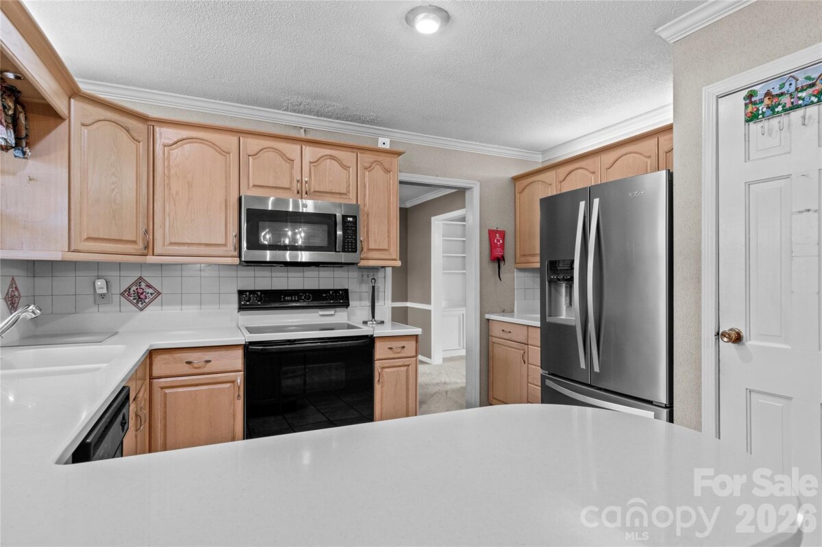 Charming 3-bedroom, 2-bath ranch home in Kernersville, perfectly situated on a spacious 0.41-acre lot! This well-maintained home offers easy one-level living with a functional and inviting layout. The living room features a cozy gas log fireplace flanked by beautiful built-in shelving, creating the perfect focal point for relaxing or entertaining. The kitchen offers abundant cabinet space, a pantry, and plenty of room for meal prep and storage. Enjoy the convenience of a main-level laundry room and a two-car garage for added functionality. Step outside to a welcoming covered front porch or unwind in the fenced backyard complete with a deck and gazebo—ideal for outdoor gatherings, grilling, or simply enjoying the peaceful surroundings. Don’t miss your opportunity to own this home with space, style, and everything you need to feel right at home!