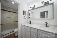 WOW! This beautifully maintained 4-bedroom, 2.5-bath home with mid-century charm is located in the highly sought-after Sharon Forest Community. Featuring two expansive wraparound decks an open and inviting floor plan filled with natural light, this home is perfect for both everyday living and entertaining. The inviting living room boasts a striking stone fireplace, and the gourmet kitchen is a chef's dream, complete with timeless cabinetry, quartz countertops, stainless steel appliances, and ample storage. Retreat to the spacious primary suite with vaulted ceilings, a private deck, and a spa-like en-suite with a shower. Outdoors, enjoy a peaceful night with the firepit and a serene creek flowing through the backyard—perfect for gatherings or simply unwinding in nature. With easy access to Matthews, Mint Hill, and Uptown Charlotte, this home is just minutes from shopping, dining, and major highways.