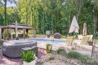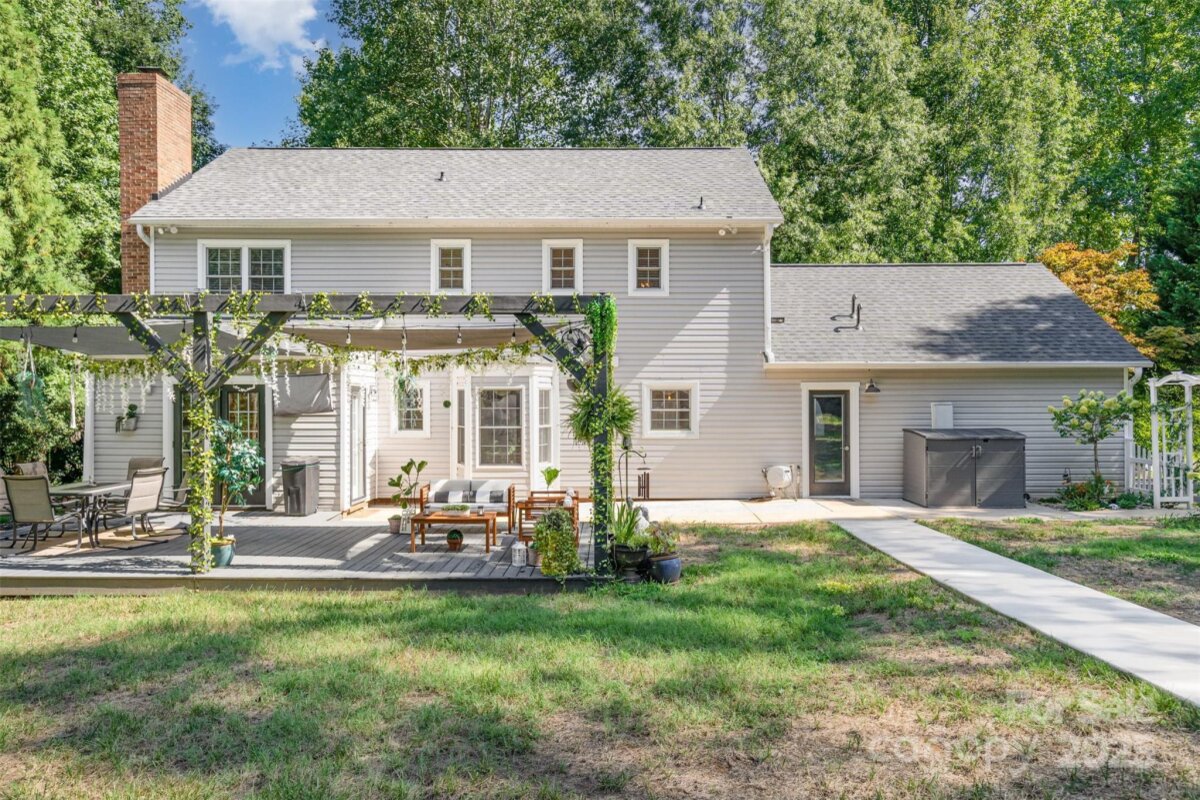 PLEASE SEND HIGHEST & BEST OFFER BY MONDAY (9/1) AT 5PM. A truly stunning piece of property with the backyard oasis of your dreams. Enjoy the peaceful pace of country living while being just minutes from I-485 giving you city convenience all around the Charlotte area. Home has endless updates including whole home water filtration system, built-in surround sound, EV charger, ATT Fiber Internet AND MORE! For full list see Features PDF in attachments. Home sits back from the road tucked among mature trees on a spacious 1.14 acre lot. Backyard has unlimited hosting areas to impress family & friends. Spacious patio area has open air pergola for relaxing. Concrete sidewalk leads to stunning inground saltwater fiberglass pool w/ waterfall and gas heater + oversized cabana to enjoy year round. Inside you'll find new plank flooring throughout with an oversized living room / family room area on the right and formal dining room with statement wall to the left. Family room has cozy brick fireplace and enough room to host family & friends. Kitchen has tile backsplash, matching SS appliances, and pantry with sliding door for plenty of storage. Upstairs the primary bedroom suite has attached full bath with large walk-in closet and beautiful tile shower w/ rain down shower head. 3 additional bedrooms provide enough space for a home office area plus full hall bath for guests. A MUST SEE!