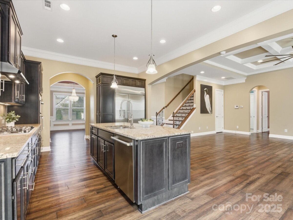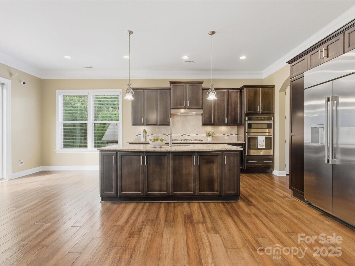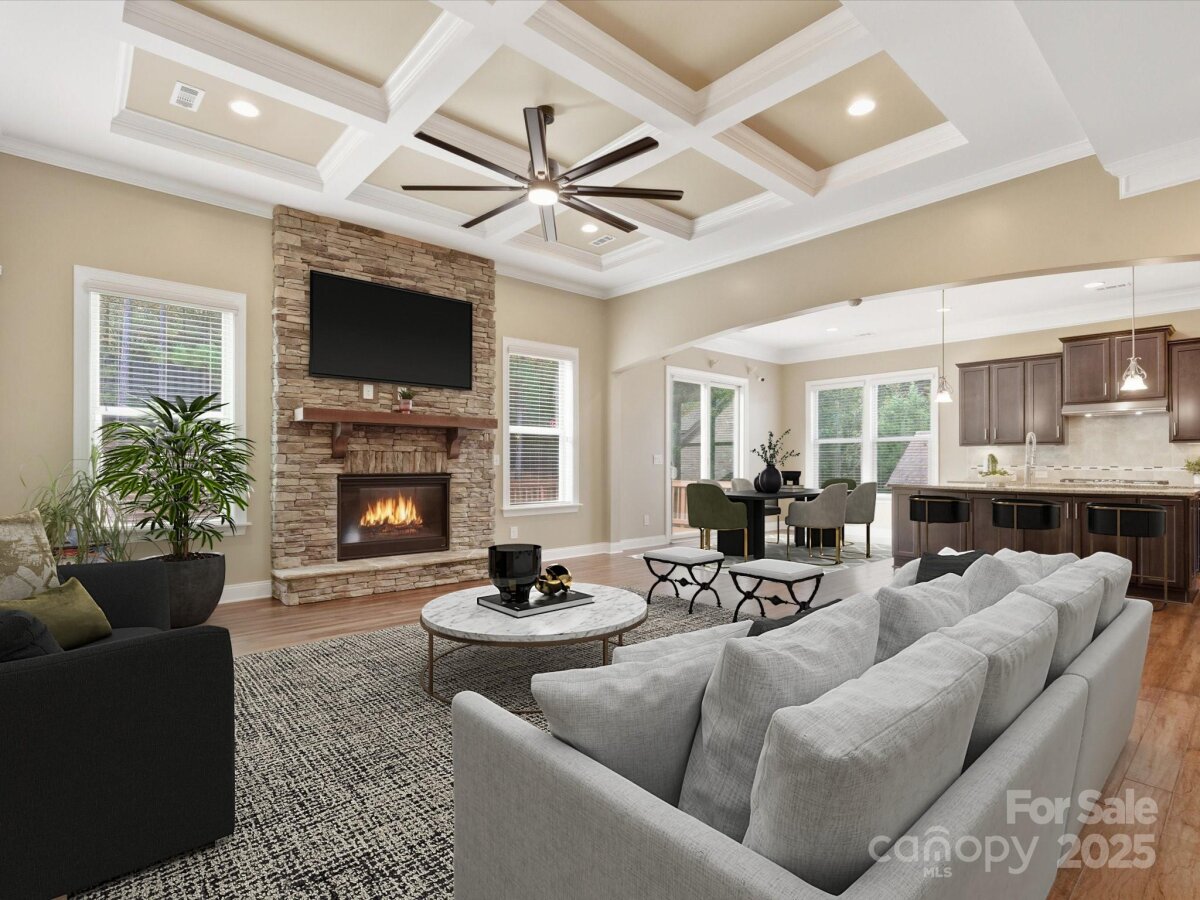 Experience luxury living in the sought-after Barber Rock community, conveniently close to Ballantyne and Fort Mill. This stunning 5-bedroom home showcases high-end finishes and thoughtful design throughout. The main level is designed with hardwood floors, a coffered ceiling, and a floor-to-ceiling stacked stone fireplace that anchors the expansive family room. The family room flows seamlessly into the gourmet kitchen, featuring stainless steel appliances, a gas cooktop, granite countertops, and a generous island perfect for both prep and gathering. Flexible living spaces, including a formal dining room and bonus rooms, provide versatility for work-from-home setups, media areas, or guest accommodations. Outside, enjoy a covered front porch, private backyard backing to trees, and serene outdoor living spaces ideal for relaxing or entertaining. Residents of Barber Rock enjoy resort-style amenities including a clubhouse, outdoor pool, playground, walking trails, and year-round community events. The full brick exterior with elegant stone accents creates timeless curb appeal, reflecting the home’s exceptional craftsmanship. Experience refined living in one of Indian Land’s most coveted communities—schedule your private tour today!