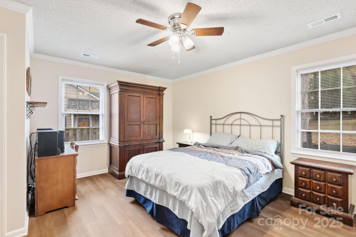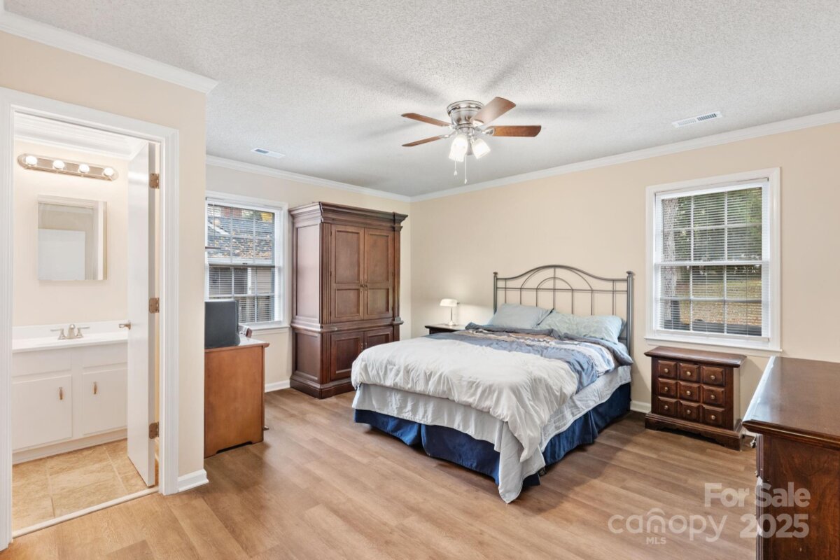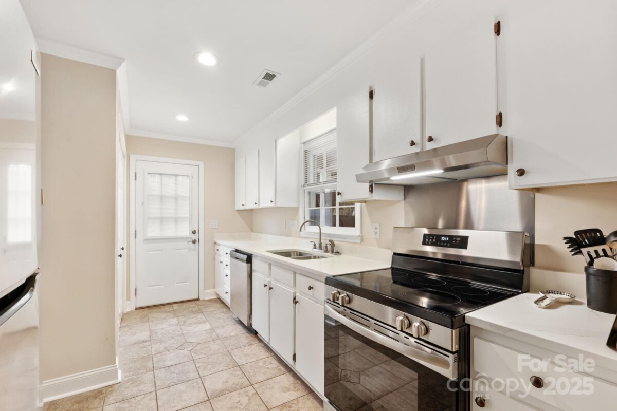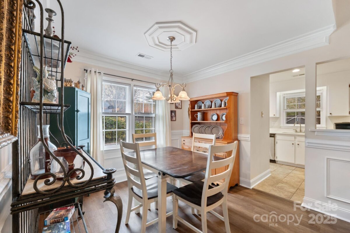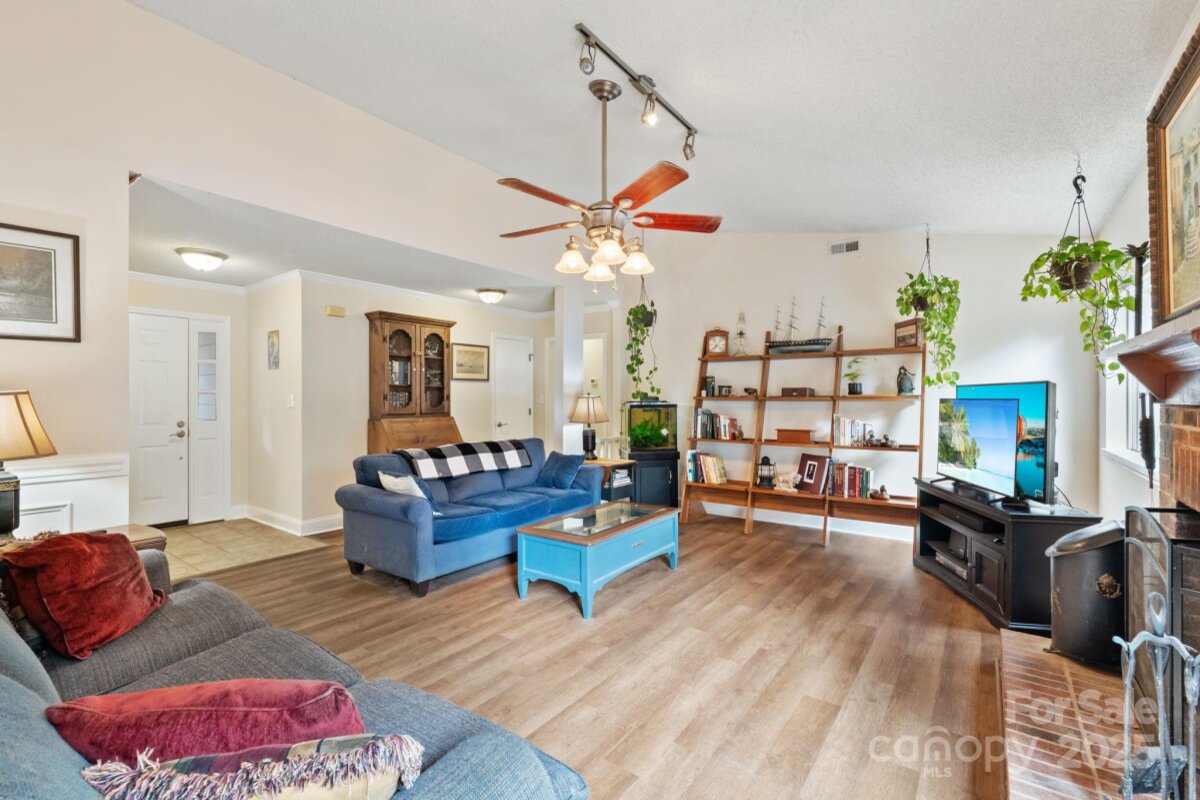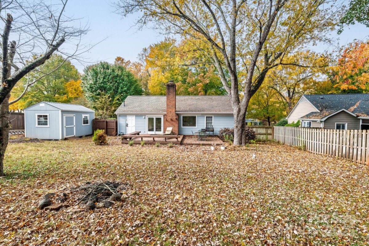 Meticulously Maintained Ranch in Highly Desirable Settlers Landing! Welcome to this beautifully cared-for 3-bedroom, 2-bathroom ranch home in the heart of Settlers Landing—just steps from award-winning Elizabeth Lane Elementary. Every detail has been thoughtfully maintained, offering move-in-ready comfort and timeless charm. Enjoy mornings on the rocking chair front porch overlooking the manicured front yard. Inside, the bright and airy family room features a vaulted ceiling and a classic brick wood-burning fireplace—perfect for cozy evenings. The updated kitchen boasts quartz countertops, stainless steel appliances, and a smooth flow to both the dining area and living space, ideal for everyday living and entertaining. The spacious primary suite includes a walk-in closet and a private en-suite bathroom, while two additional bedrooms share a pristine full bath. Step outside to your fully fenced backyard complete with fruit trees and a newer storage shed. Whether you’re gardening, playing, or relaxing, there’s plenty of room to enjoy. Located minutes from downtown Matthews, The Arboretum, and major conveniences, this exceptional home combines location, quality, and value. Both the roof and HVAC were replaced in the last few years creating peace of mind for years to come. Homes this well-maintained rarely come available—schedule your showing today!