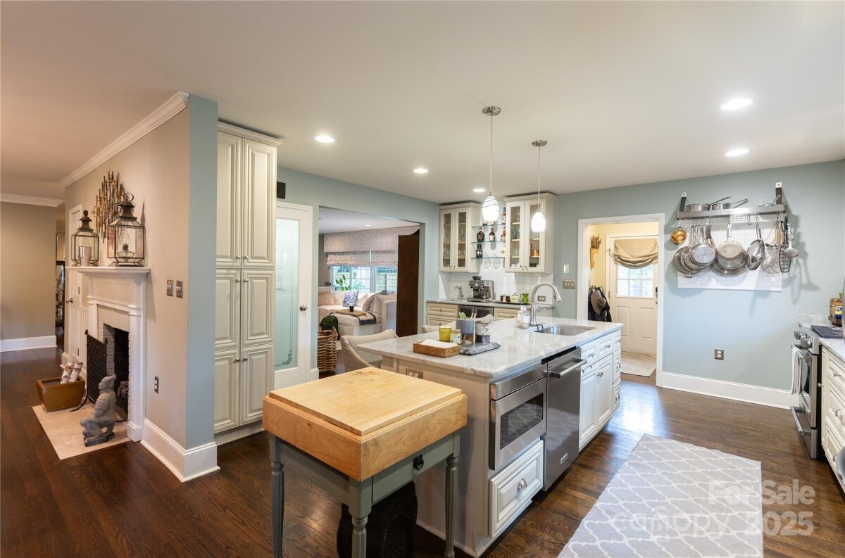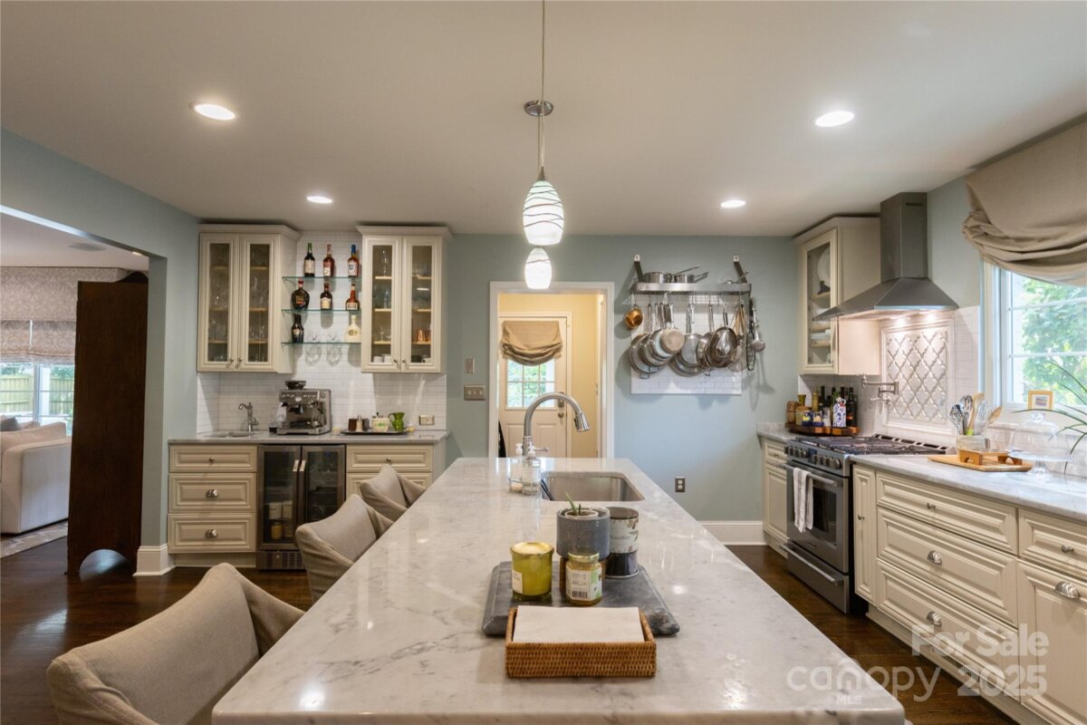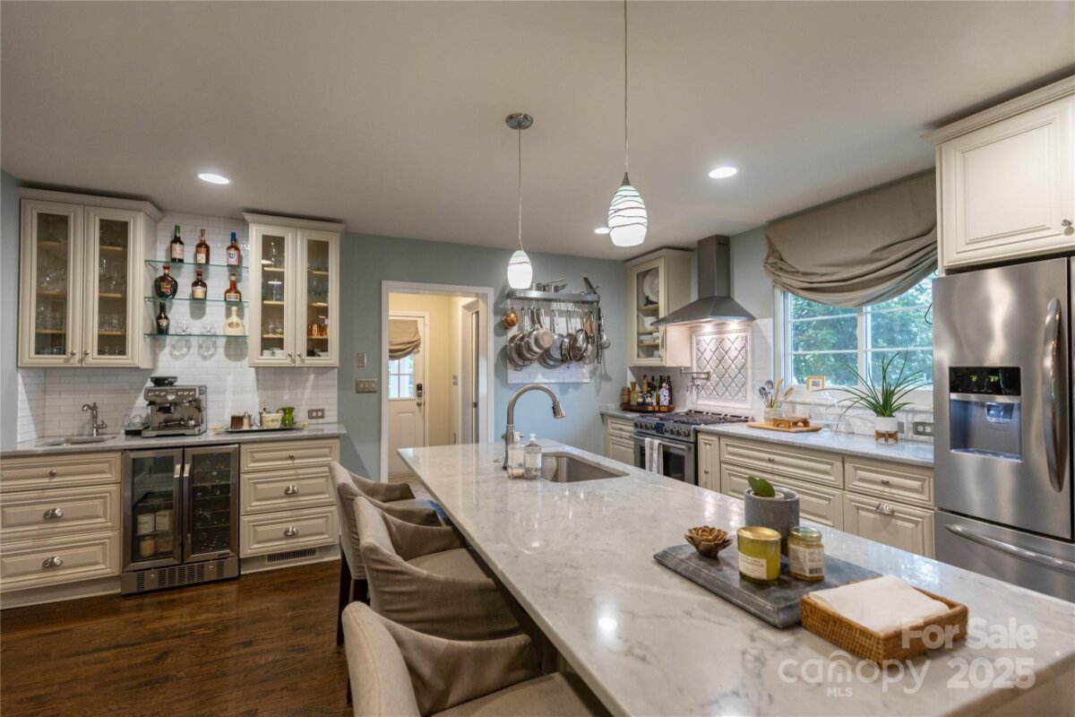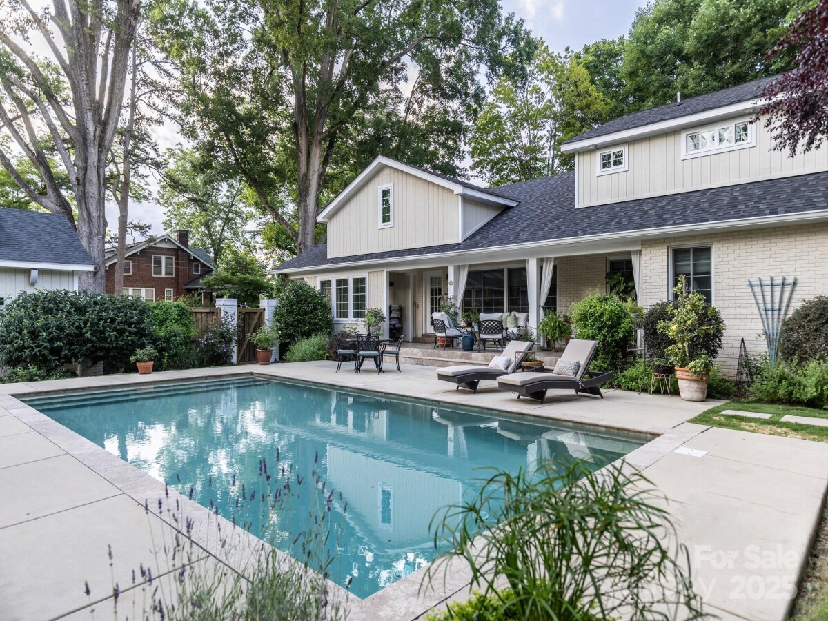 Step into timeless style and modern comfort with this beautifully updated 1950s ranch, perfectly located just moments from downtown Monroe’s boutiques, restaurants, and parks. Spanning over 4,300 sq ft, this thoughtfully designed 4-bedroom, 3.5-bath home offers seamless flow between open living spaces, ideal for entertaining or everyday living. Dual primary suites each feature private en-suite baths and spacious dual closets, perfect for guests or multigenerational living. A stunning custom kitchen boasts handcrafted cabinetry, a coffee and tea bar with under-counter refrigerator, built-in microwave, and a convenient pot filler above the range. Every detail combines elegance and ease, from the beautifully wallpapered powder room and touch-free toilets to restored original features like a crystal chandelier and fireplace mantel. Light pours through new energy-efficient Andersen windows, while custom draperies add warmth and sophistication. Step outside to a peaceful retreat surrounded by lush landscaping and a zen-inspired pool area designed for relaxation. A climate-controlled wine cellar, spacious laundry with utility sink, and whole-home security system offer comfort and confidence throughout.