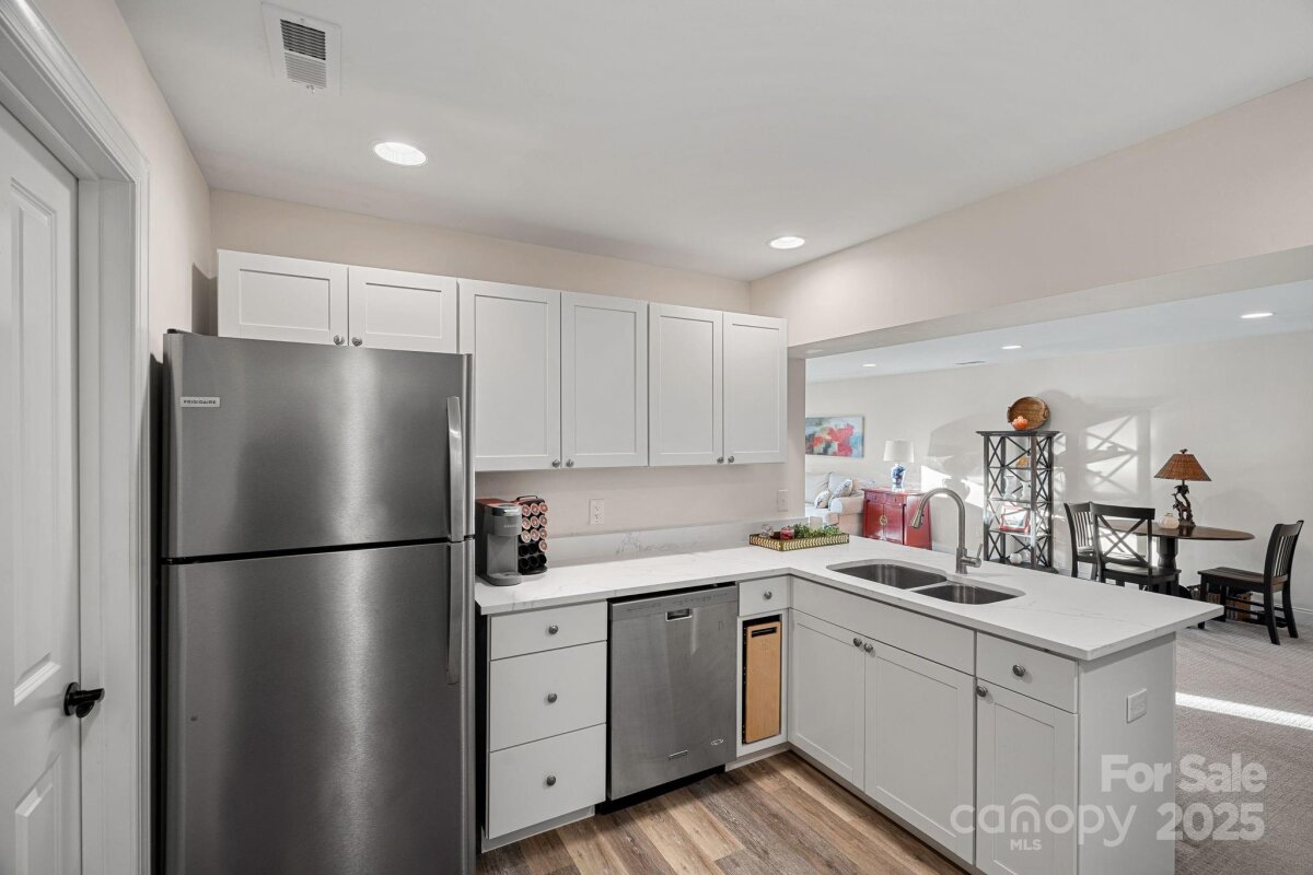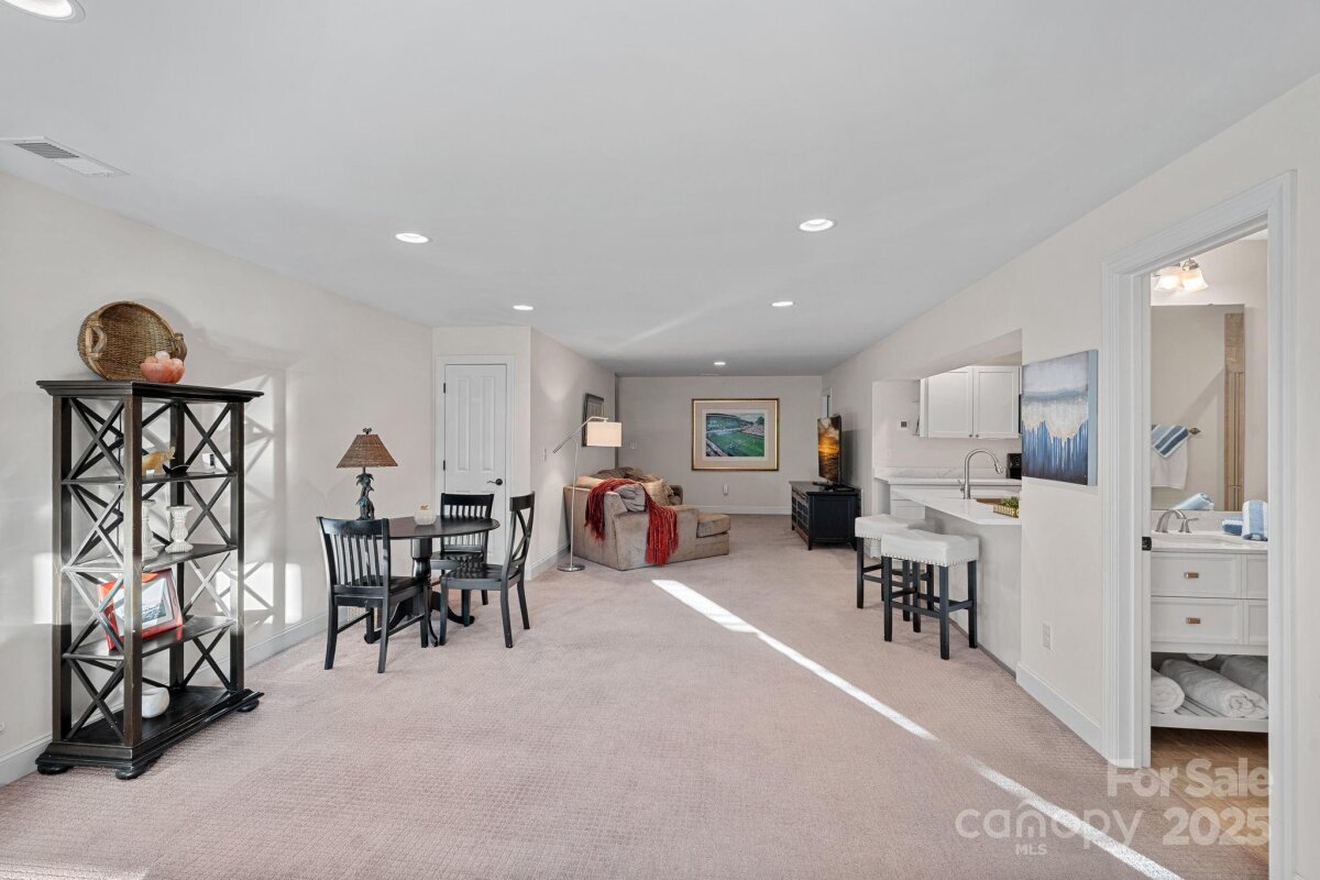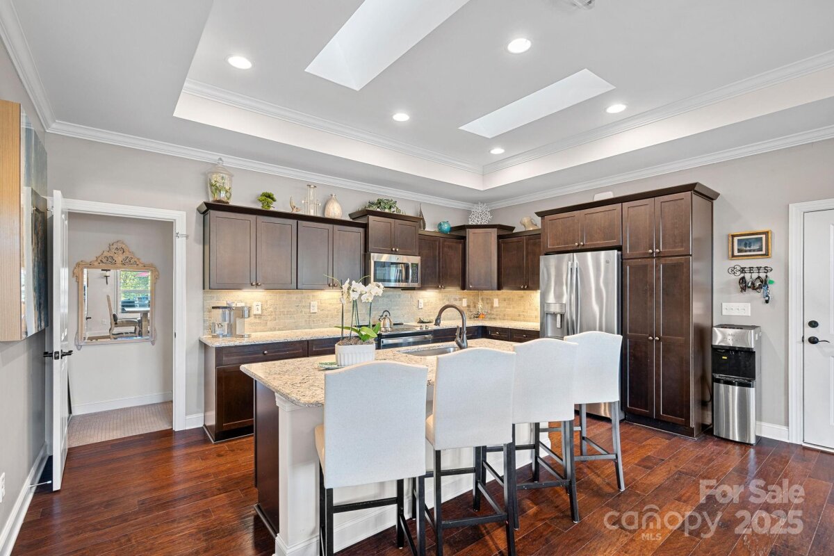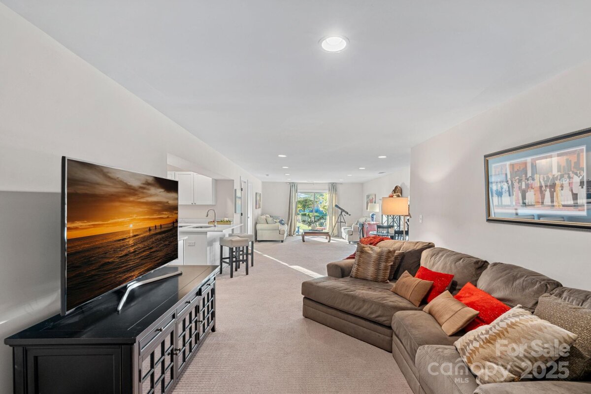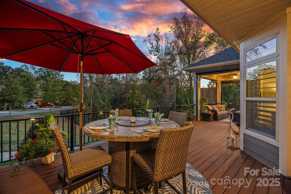 Mother-in-law suite, guest suite, man cave, game space, hobby/craft space - possibilities are endless. With a private, fully-equipped and functional lower level second living quarters AND magnificent SUNSET views, this exceptional home offers a combination of functionality, comfort and beauty. Perfectly situated on one of the most desirable lots in this 55+ community of The Courtyards of Huntersville, the property enjoys unmatched privacy with no home directly across the street or to the side and is quietly tucked away at the back of the intimate neighborhood. A major highlight is the thoughtfully designed LOWER LEVEL SUITE. This private space has its own exterior entrance and includes two living areas, a dining area, a full kitchen with new quartz countertops and sink, full-size appliances and an oversized pantry. The suite also features a spacious bedroom with a walk-in closet and pond views, a full bath with a new vanity, stackable, full-size washer and dryer, and a private patio overlooking a tranquil reflection pond and water feature. The main level is filled with natural light thanks to the absence of an adjacent home, as well as skylights in the kitchen and primary bath. The layout includes a welcoming foyer, a sunroom/home office, living and dining rooms, a spacious kitchen, laundry room, and a full guest bath, along with a primary suite and an additional guest bedroom. An upgraded kitchen boasts quartz countertops, a subway tile backsplash, a new range and dishwasher, and a pantry cabinet with pull-out shelving. The optional sunroom/office features a custom built-in desk with a quartz countertop, lockable drawers, storage, slide-out printer trays, and a built-in bookshelf—perfect for working from home. An enhanced laundry room includes upper and lower custom cabinetry with glass doors, a deep sink, subway tile backsplash, and a built-in beverage refrigerator creating a fully functional mini beverage bar. Both main-level baths have been updated with new quartz countertops, deep sinks, and faucets. The primary bedroom is a true retreat, complete with a spacious Closets By Design custom closet system and direct access to a screened and covered deck area. A new screened porch off the primary bedroom features two custom retractable screens, and elegant plantation shutters with dual control have been installed throughout the home. A maintenance free, elevated deck with multiple seating and dining spaces, spans the side of the home and overlooks a natural area where breathtaking sunsets will be enjoyed. The two-car garage offers epoxy-coated, non-skid flooring and a convenient wall-mounted vacuum unit. Pull down garage stairs leads to an incredible amount of storage above the garage. Five ceiling fans have been added in living spaces and bedrooms. The home's exterior was freshly painted in 2025 and features an attractive combination of fiber cement and stone. The community offers a wide range of amenities, including a clubhouse for social events with a full kitchen, fitness facility, and swimming pool. Sidewalks and streetlights, natural areas, extensive landscaping and pond add to the neighborhood’s charm. The HOA maintains all landscaping (except private courtyards) and the exteriors of the homes so homeowners only need an HO6 insurance policy. Two kitchen refrigerators, beverage refrigerator and two washer and dryers are included. Easy access to Beatties Ford Road, Gilead Road, Hwy 73 and I77, Birkdale, Blythe Landing, Jetton Park, Marinas, Shopping and Dining. In close proximity to hospitals/medical centers. Pre-inspected and adjustments made! The Courtyards of Huntersville homes are classified as condos by the Town of Huntersville but live like single family homes.
