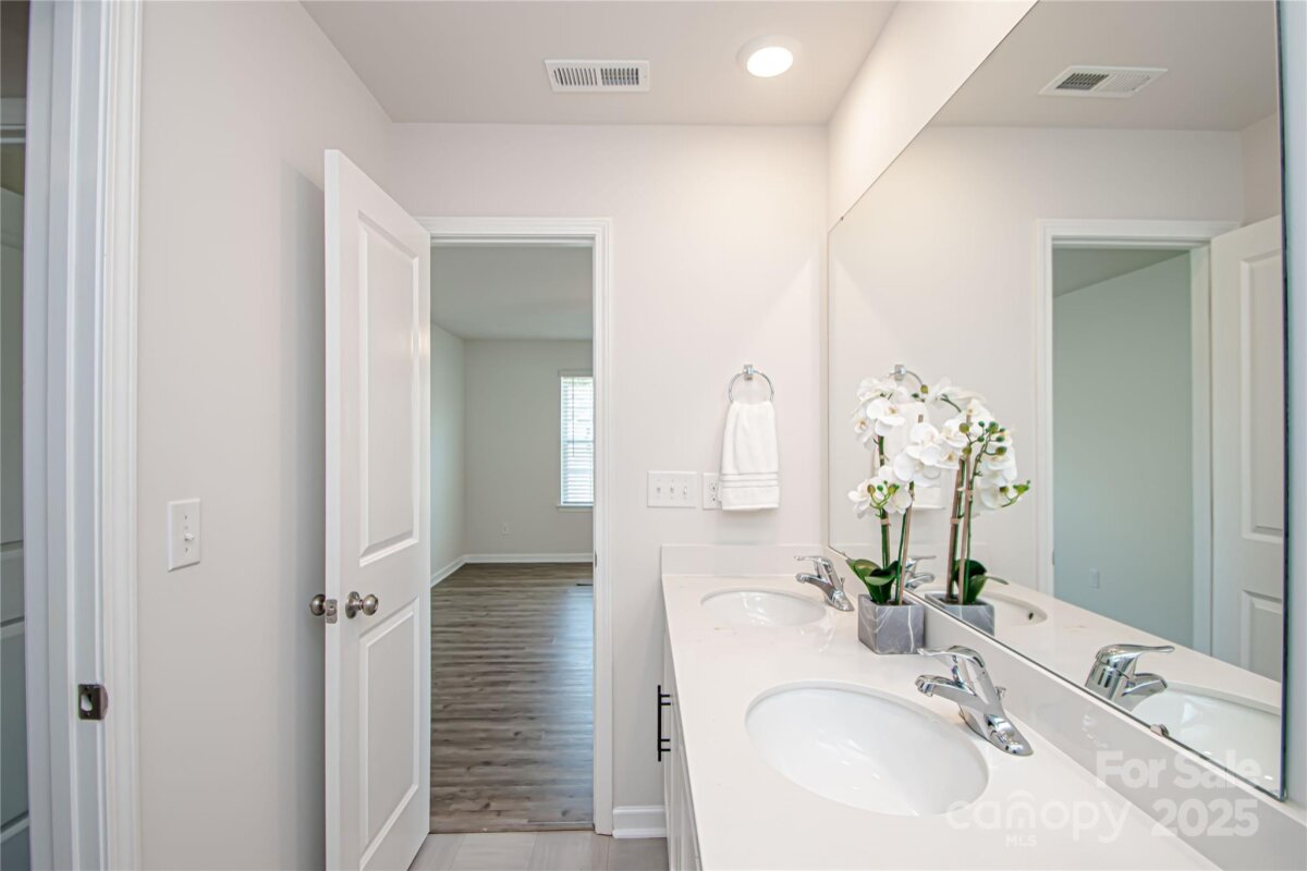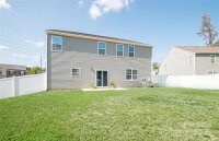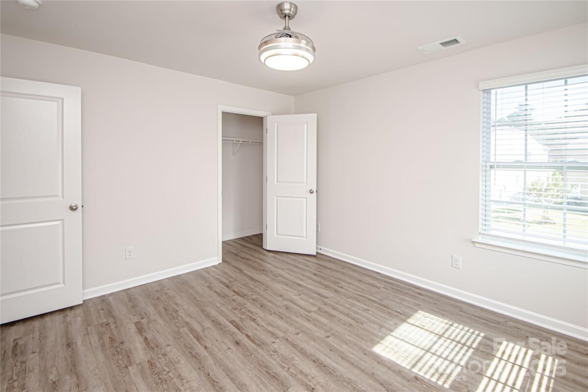 This stunning 4-bedroom, 3.5-bath home truly shows like new and has many upgrades. The open floor plan is filled with natural light and features a spacious dining room that flows seamlessly into the family room, kitchen, and breakfast area. The kitchen is a chef’s dream with stainless steel appliances, a 5-burner gas stove, granite countertops, white shaker cabinets, a center island, and a large walk-in pantry. A convenient office/flex room is located on the main level right by the front door. Upstairs, the huge primary suite boasts vaulted ceilings, a ceiling fan, and a luxurious bath with dual sinks, a private toilet, a walk-in shower, and an oversized walk-in closet with built-ins. Three additional bedrooms, each with their own walk-in closets, provide plenty of space for family and guests, and one of the bedrooms has direct access to the hall bath. The upper level also offers a versatile loft area that can be used as a second family room, playroom, or media space, along with a laundry room for added convenience. The backyard is large, flat, and fully fenced with a 6-foot white vinyl privacy fence perfect for entertaining year-round. LVP flooring was added to all of 2nd level. House was recently painted in neutral and tile was added to primary bath and laundry room Sept 2025. House is wired for ATT wireless. Additional features include $38K solar panels with transferable warranties that will be fully paid by seller at closing and a transferable ADT security system. Ideally located close to Hwy 485, shopping, and dining, this home is truly move-in ready and waiting for its next owner.