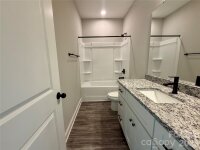 For sale—new construction home in the Court Street Commons neighborhood in Newton, NC! This beautifully finished 3-bedroom, 2-bath home offers a desirable split-bedroom layout with an open floor plan that makes the main living area both comfortable and functional. The kitchen is a standout, featuring white shaker-style cabinetry, granite countertops, a large center island with bar seating, perfect for prep or casual dining, stainless steel appliances, and a classic subway tile backsplash. Pendant lighting and recessed lights brighten the space, while the window over the sink brings in natural light. The flooring adds warmth and contrast. Connected to city water and sewer, this home is conveniently located near shopping, dining, and major roads for easy commuting—combining quality construction with everyday convenience.