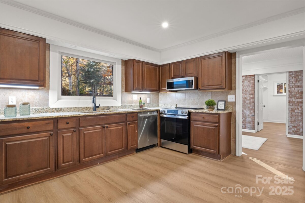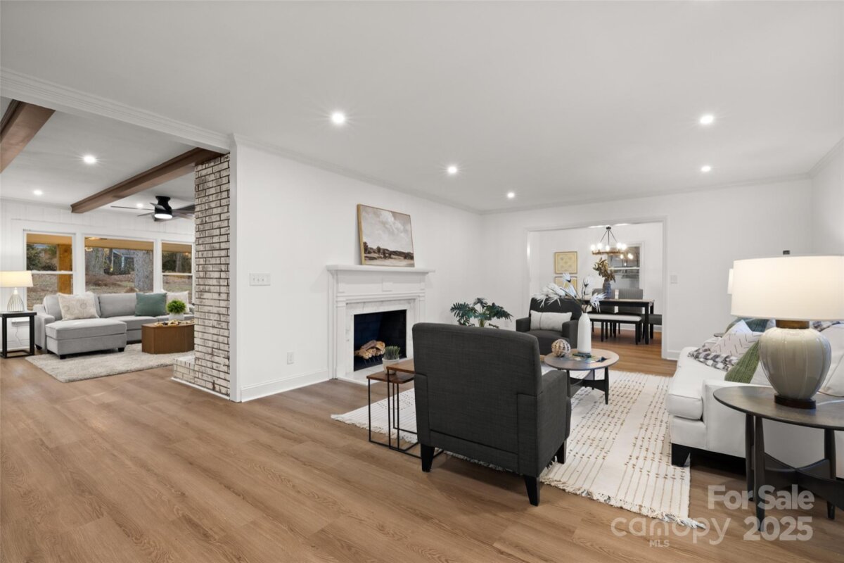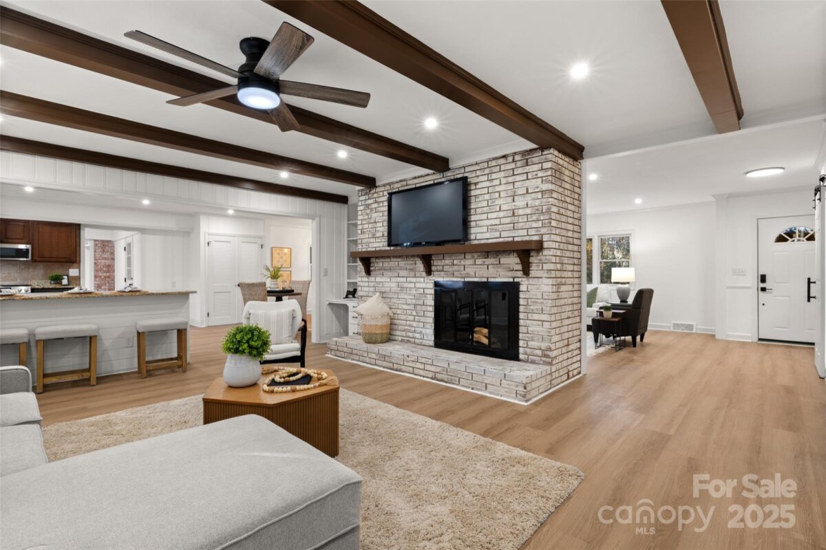 Welcome to your NextHome! This beautifully updated brick ranch offers three bedrooms and 2.5 baths on a spacious 0.78-acre lot. Step inside to an open floor plan highlighted by gorgeous wood beams, recessed lighting, and brand-new LVP flooring throughout. Enjoy two cozy wood-burning fireplaces, one in the living room and another in the den, perfect for creating warm, inviting spaces. The large kitchen features granite countertops, new stainless steel appliances, a garbage disposal, and plenty of room for cooking and entertaining. The primary suite includes a generous walk-in closet, offering ample storage and comfort. Additional updates include a new roof and new water heater. Outside, you’ll find a two-car garage and a wide, private lot ideal for outdoor living. Move-in ready and full of charm, this one is a must-see!