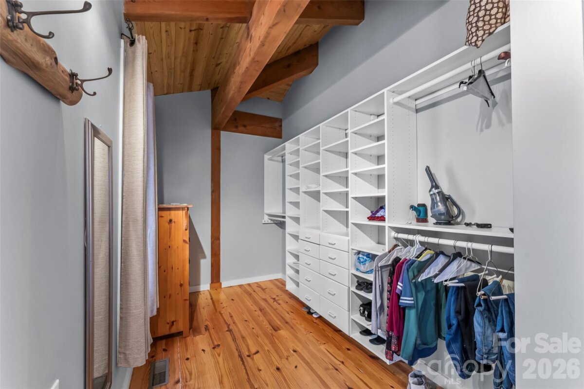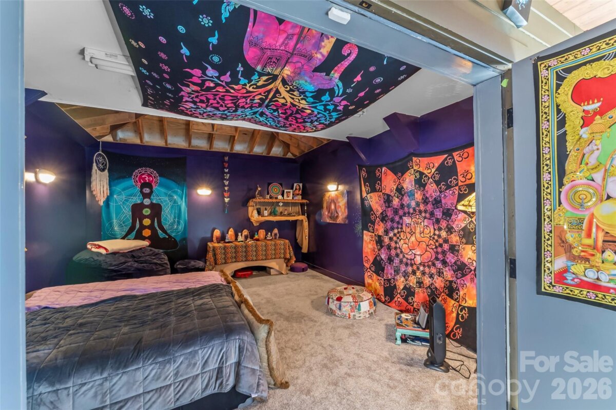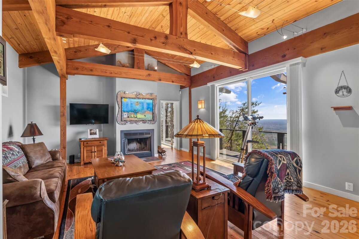 Extraordinary Haiku-inspired mountain retreat where Japanese design principles meet the natural beauty of Western North Carolina. This 3BD/3BA Haiku House captures sweeping long-range mountain views, creating a serene setting that feels both luxurious and deeply connected to nature. Thoughtfully designed with balance and tranquility in mind, the open floor plan features warm wood flooring, exposed beams, and expansive windows that frame the dramatic views. Natural light pours into the living spaces, enhancing the home’s peaceful atmosphere. The living room centers around a cozy wood-burning fireplace, while a bright sunroom offers the perfect place for quiet reflection, reading, or morning coffee while overlooking an endless sea of stunning mountainous landscape. The kitchen blends style and functionality with high-end stainless steel appliances, a central island, and generous cabinetry. The primary suite is a private sanctuary with direct deck access, a walk-in closet, and a spa-inspired ensuite bath featuring a dual vanity and a traditional Japanese soaking tub, reinforcing the home’s Zen-like design and focus on relaxation. The lower level is partially finished with 522 sq ft of non-contiguous heated bonus space that makes an ideal recreation room or additional living area. This includes a 3rd full bath, making it easy to transform this space into 2nd living quarters. Also on the lower level is another non-contiguous room (223 sq ft) currently used as a meditation room. You'll love the space and possibilities this sacred retreat holds! Outdoor living areas are perfectly positioned to capture the panoramic mountain vistas, inviting you to unwind and fully experience the peaceful surroundings. This distinctive property offers exceptional versatility as a primary residence, private mountain retreat, or income-producing investment. STRs allowed! Furnishings negotiable. Savor the tranquility of mountain living with convenient access to dining, shopping, and local attractions. This is a rare opportunity to own a one-of-a-kind mountain sanctuary inspired by the beauty and simplicity of a Haiku.