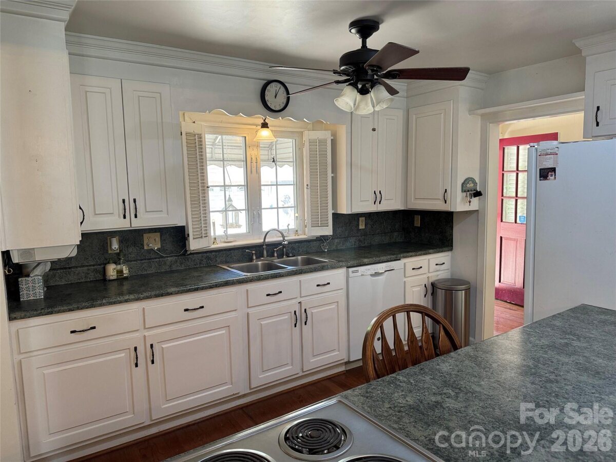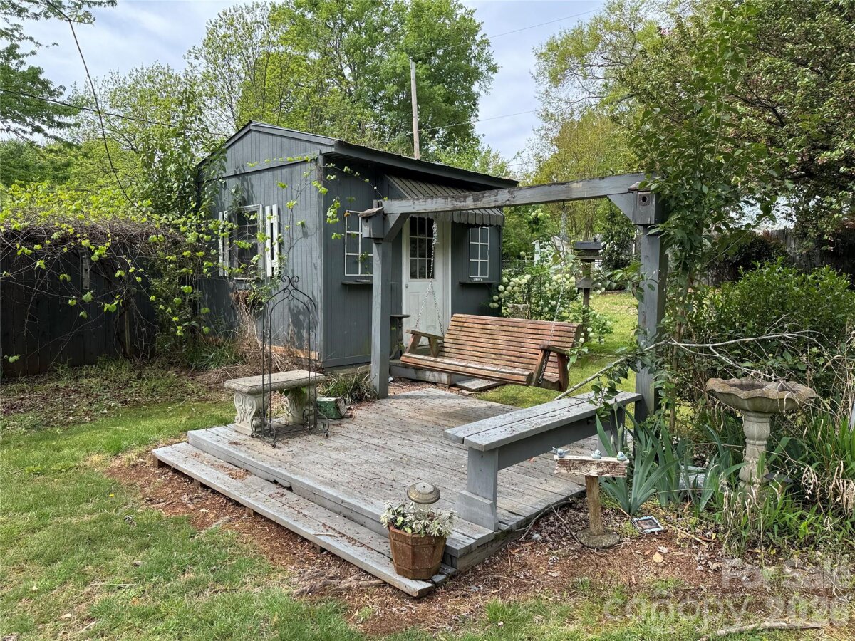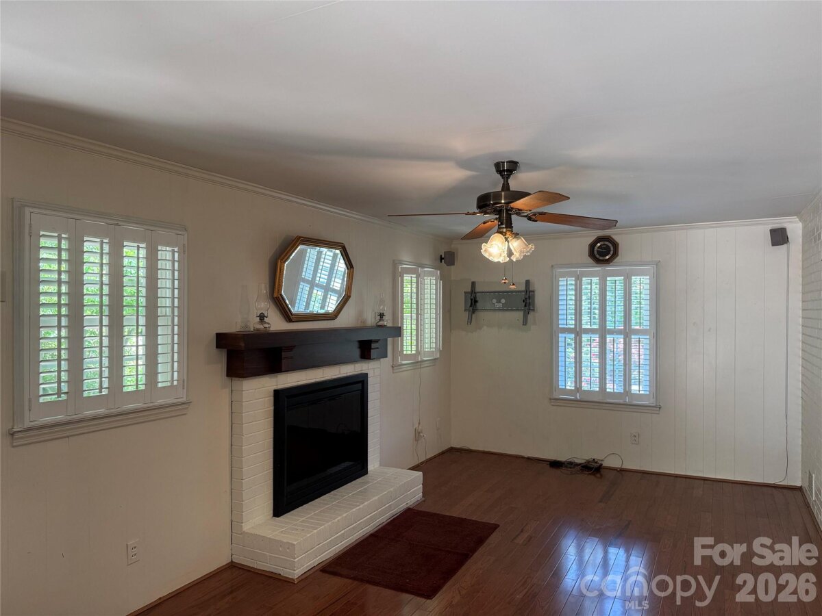 Classic Brick Ranch with Premium Finishes. This meticulously maintained 3-bedroom, 2-bath brick ranch exudes quality with hardwood flooring, ceramic tile, crown molding and plantation shutters throughout. The heart of the home features a seamless open-concept layout, connecting the dining area and kitchen—complete with bar seating—to a bright living room. Unwind in the cozy den by the gas log fireplace or step outside to the spacious covered deck. Overlooking a large, fenced backyard, it’s an entertainer’s dream, The property features a 25' X 30' wired detached double garage/workshop (complete with air compressor), a second 16' X 16' wired storage/workshop, and an additional 12' X 10' wired storage building. Ultimate Workshop Setup offers unparalleled storage and workspace, New 30-year architectural shingles