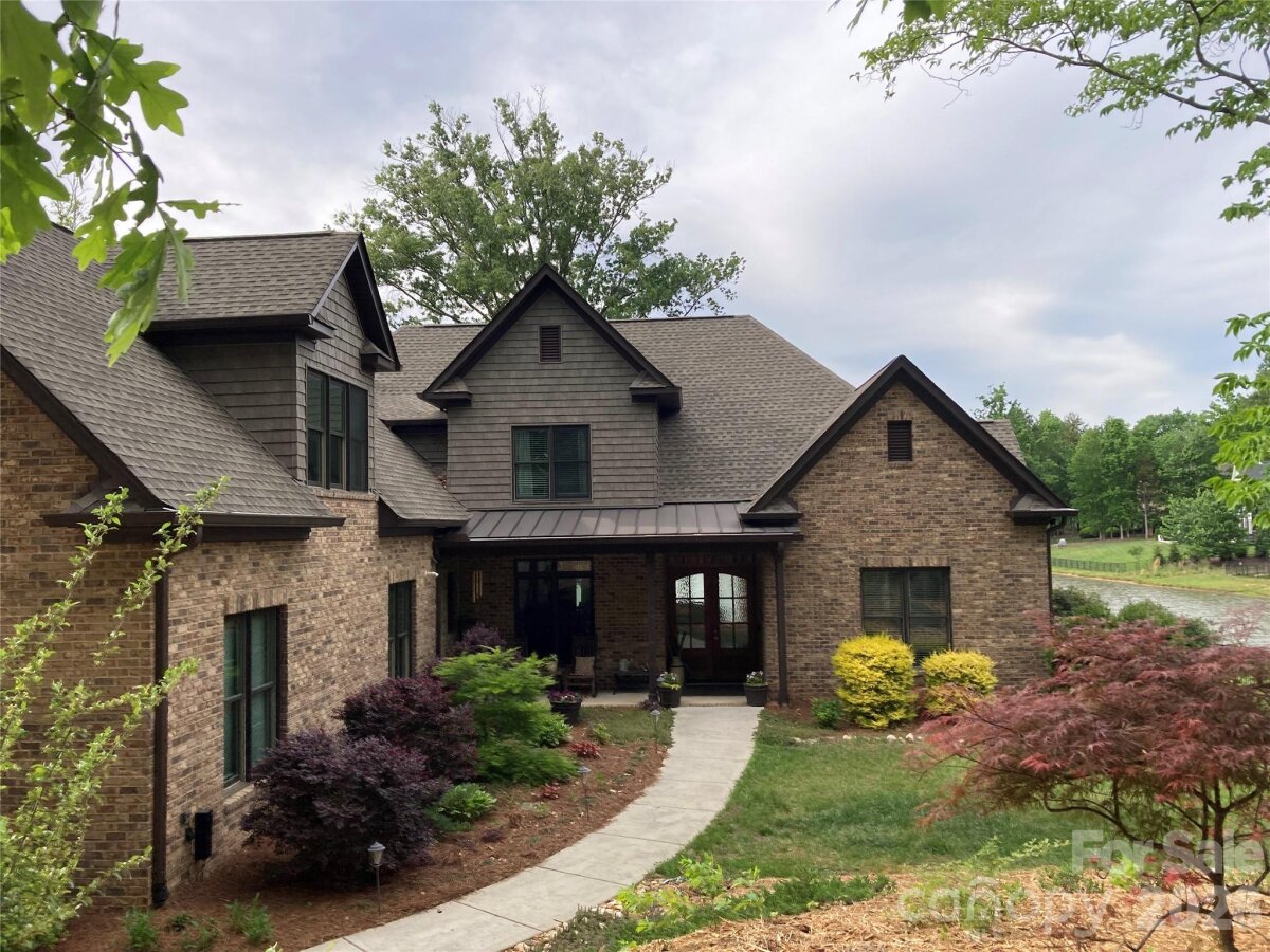 WATERFRONT - This beautiful builder’s custom estate home is situated on a 1.75-acre cul-de-sac lot and features nearly 300 feet of shoreline on the community's private large pond/small lake. Enjoy spectacular 180-degree water views from most rooms and the back of the home, creating a private retreat where you can relax and feel like you are on vacation every day! The property also includes a freestanding shop that could easily serve as a workshop, studio, or private office (with insulation in the walls and ceiling, finished /painted walls, and electricity). A spacious foyer opens to the formal dining room and an office with a closet and access to the full bath. The large cook's kitchen features granite countertops, an oversized island with seating, abundant custom cabinetry, an induction range (with a gas line run for a gas range option), a microwave, a built-in double oven, and a pantry. The breakfast area easily accommodates a large table and overlooks the scenic lake behind the home. The great room has a fireplace flanked by built-in cabinets, creating a warm and inviting gathering space, also looking out over the lake. The Primary bedroom with Spa-like bath, along with an additional bedroom with a full bath, are on the main floor and have sliding doors to porches, and boast expansive lake views. Ideally located next to a drop zone and garage entrance is the large laundry room with a sink, ample counter space, and cabinets. Upstairs, you will find a huge bonus room with a workout area off the back, two roomy secondary bedrooms, two full baths, a reading/study area, and a media room (or extra flex space). 3-Car side load garage that is extra deep to accommodate larger vehicles. Approximately 700 square feet of walk-in storage area. No steps into the house - the first floor is handicap accessible. Come experience this incredible home and see why its beautiful water views and thoughtful layout make it a truly special place to call your next home!