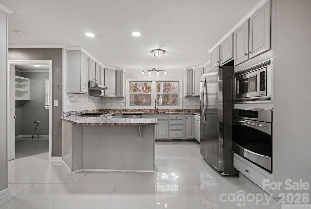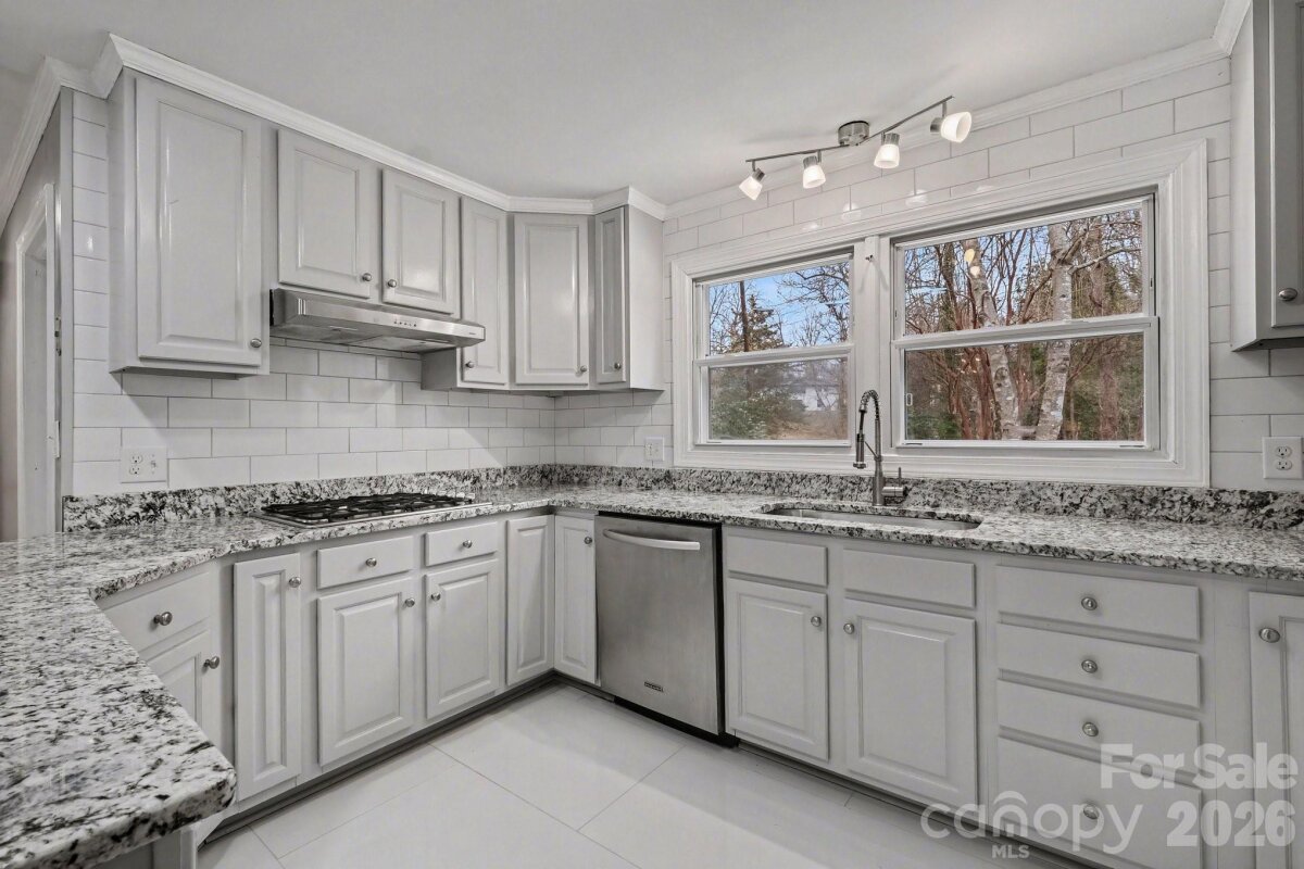***$5,000 Lender Credit available when you get approved with Preferred Lender*** Welcome to West Charlotte, just minutes from the Airport, Uptown Charlotte, I 485, Catawba River, shopping, entertainment, restaurants, grocery, and all the other conveniences the Queen City has to offer. This brick home sits on a sloped .67 acre lot and features a fenced in back yard, a rocking chair front porch, a back patio, a concrete driveway, and great curb appeal including a level front yard, mature trees, flower beds, and brick retaining wall. Inside, the home features 3 spacious bedrooms and 2 bathrooms including a primary suite with fireplace. The secondary bedrooms feature large closets and built in cabinetry. The open floor living room, dining area, and kitchen are filled with lots of desirable natural light. The kitchen has been upgraded and includes beautiful white tile flooring, granite countertops, painted cabinetry, stainless steel appliances, gas cooktop, subway tile back splash, double windows over the sink, and an eat in peninsula that flows into the dining and living area. The laundry room sits right off the kitchen and could double as a pantry. Double windows, hardwood floors, and modern fixtures flow throughout the main level. Lastly, the converted garage now used as living space, is perfect for entertaining guests. This den area has walk out access to both front and back yards. If you're looking for move in ready, affordable, no HOA, just minutes from everything West Charlotte has to offer, we welcome you to come take a tour today!