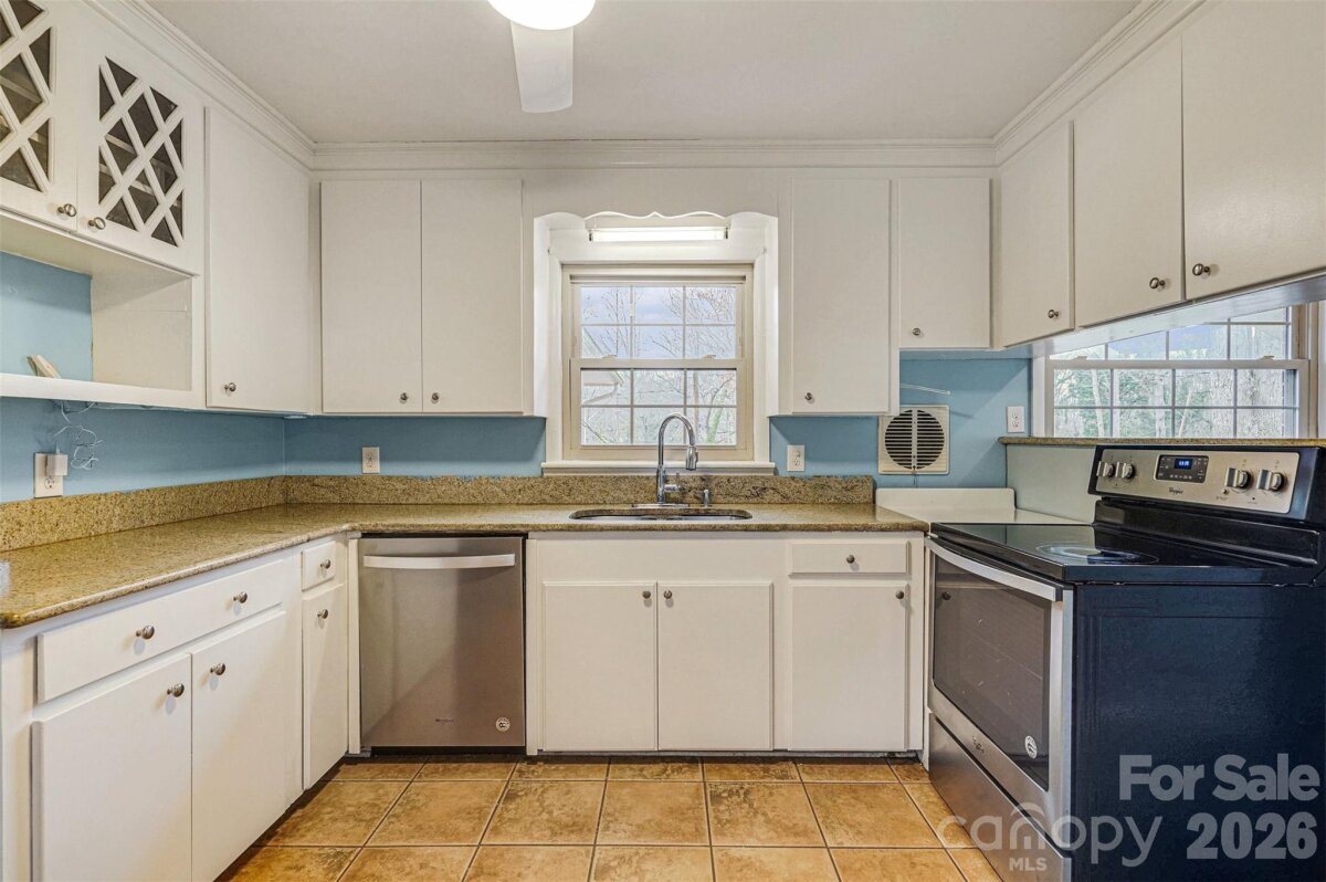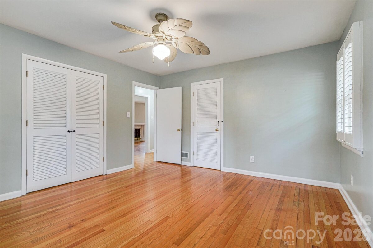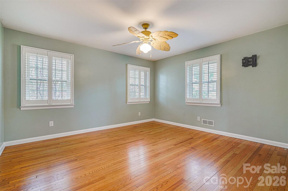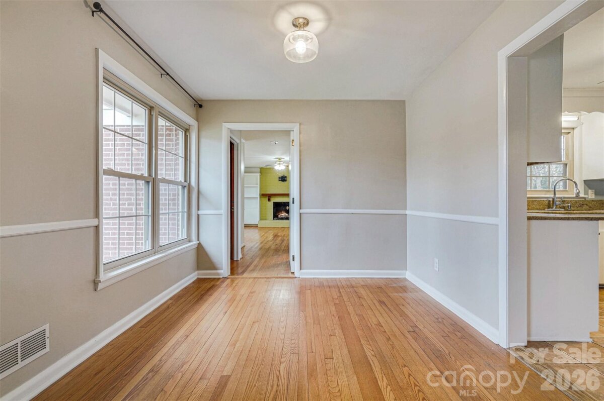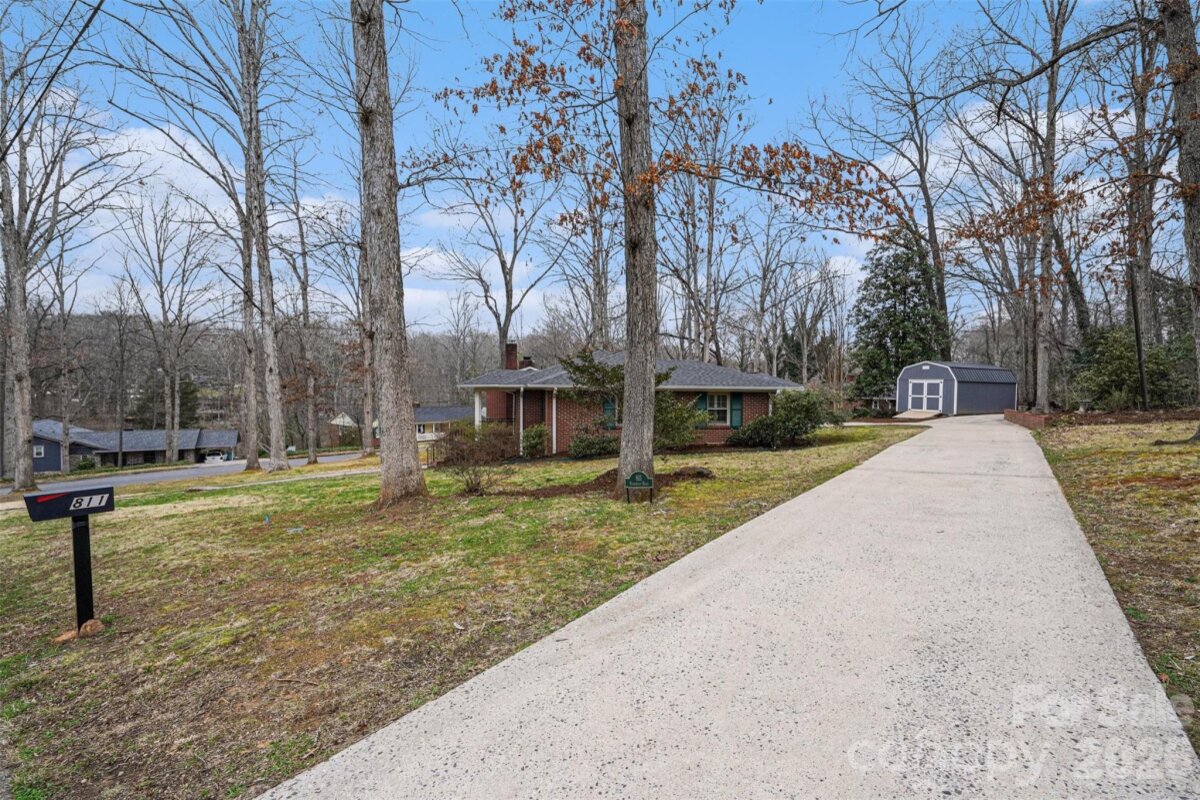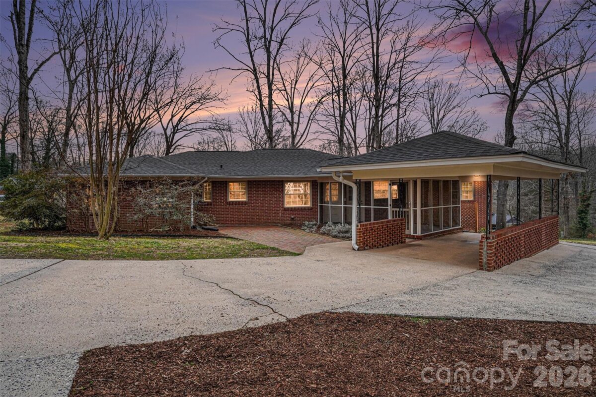 Situated on a spacious corner lot, this well-maintained brick ranch is conveniently located just minutes from Uptown Shelby in a desirable, established neighborhood with mature trees and walkable streets. Recent updates include NEW ROOF (Feb 2026), fresh paint, pressure washed exterior, and mulched beds--it is MOVE-IN READY! Inside, the home delivers a true split-bedroom floor plan with three bedrooms and two full bathrooms on the main level. FRESH neutral paint, hardwood flooring, and updated light fixtures can be found throughout. The oversized primary bedroom has a fireplace, built-in cabinetry, tons of windows, and an ensuite bath. The kitchen is equipped with solid wood cabinetry, granite countertops, and stainless steel appliances--refrigerator included! There is space for a study nook or drop zone as you enter the kitchen from the screened porch. The main level also includes a separate breakfast room, living room w/ gas log fireplace, and dining room--great spaces to customize and use how you wish! Tons of charm with arched doorways, great flow, original built-in corner cabinet in the hall, and plantation shutters in the 2nd bedroom. The walk-out basement bonus room provides additional flexible living space along with another FULL BATH and the laundry area. This area could be a recreation room, a workshop, an additional bedroom, or a home office! The property features a long circular driveway that wraps around the back of the house, a brick patio, and a screened-in porch with access from both the kitchen and dining room-perfect for relaxing or entertaining. There is also an attached carport. Additional highlights--newer windows, washer and dryer remain, Nest thermostat, and a 12' x 24' Amish-built storage building purchased in Spring 2025 included. A one-year home warranty is also included for added peace of mind! Several pictures have been virtually staged to give you an idea of furniture layout however the home is empty and ready for your personal touch! Please call with any questions!