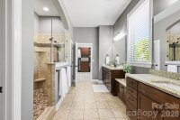Welcome Home to 814 McGavock St in The Estates section of the highly desirable Massey neighborhood in Fort Mill SC. Meticulously maintained since construction in 2015 by the original owners, this home boasts a plethora of sought after features and improvements. Sitting towards the end of the Massey neighborhood, on a corner lot with a side-entry three car garage, facing the forested community area, 814 McGavock instills an immediate sense of privacy with its location. Tasteful interior and exterior selections have been thoughtfully included throughout the home, which is truly a sanctuary to behold. From the cozy fireplace, the large level five granite kitchen island, improved cherry finished built in primary closet, dual exterior patios, one screened, one open, hardscaped pool deck and luxurious inground heated Gunite pool with benches and fiberglass table insert, and elevated jacuzzi soaking tub with waterfall feature, 814 McGavock has appealing aspects at every turn. The impeccable kitchen presents well with Frigidaire appliances, wall inserted oven, microwave, and five burner gas cooktop range are ideal for both experienced and aspiring chefs. A large pantry allows plenty of snack storage alongside the bright upleveled dovetailed cabinets, with sliding drawer inserts for convenience of cookware storage. The floors are engineered hardwoods, and the carpet was replaced 2 years ago. The Primary bedroom, office and dining room all have tray ceilings and wainscoting adorns the dining room walls. Two of the three guest bedrooms have ensuite bathrooms which add privacy and convenience for family and guests. The home and the screened in porch have been hardwired for A/V entertainment features and a central vacuum system has been installed as well.