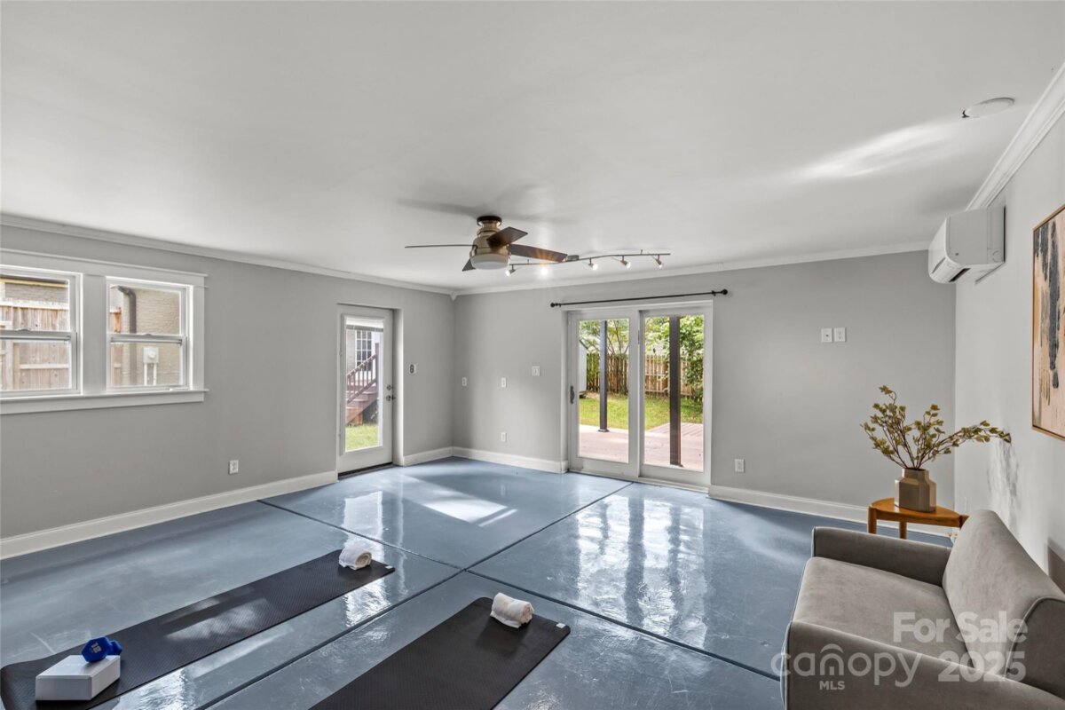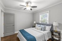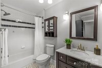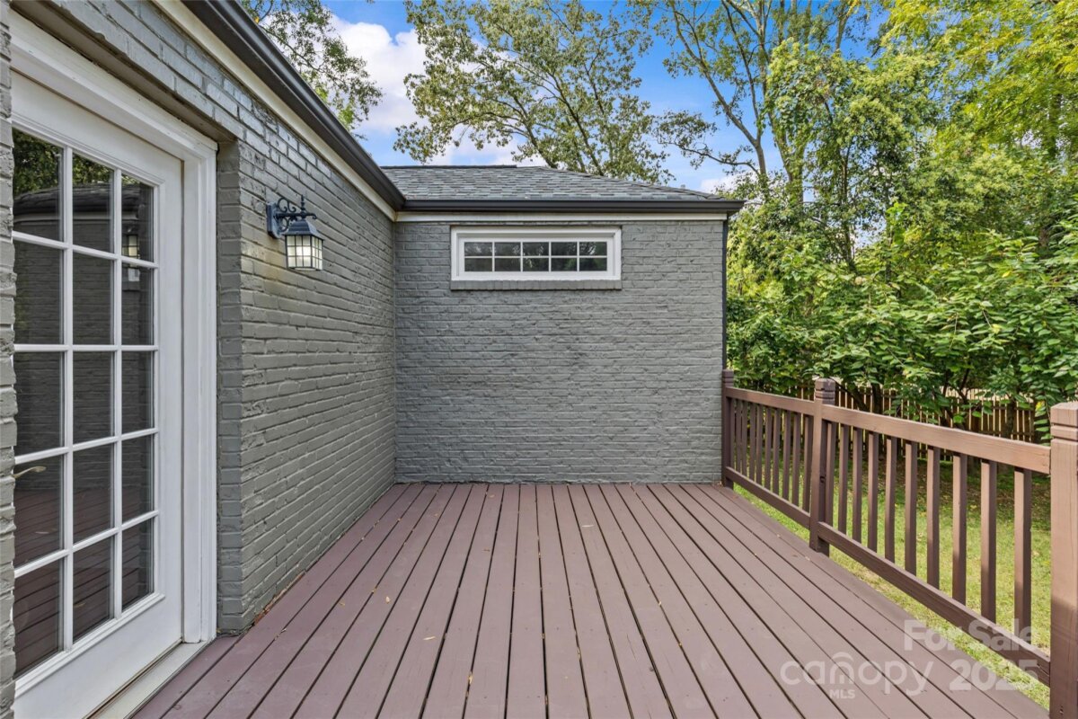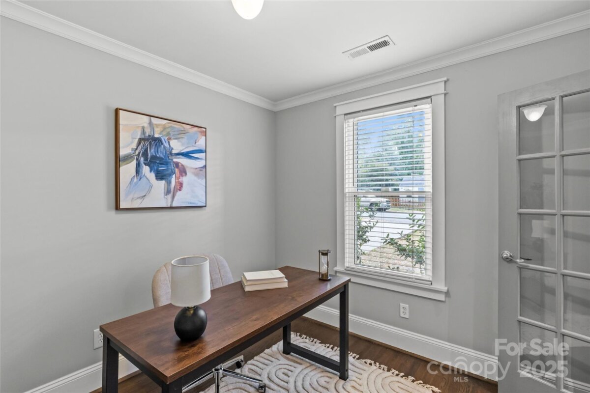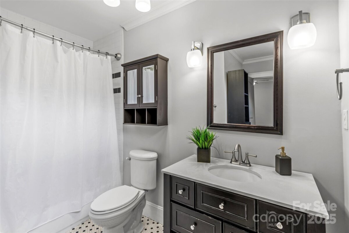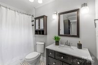 Welcome to this charming 3-bedroom, 2-bathroom brick bungalow located in desirable Villa Heights. This home beautifully blends original details with fresh updates for modern living. The oversized and covered front porch creates a lovely first impression. The living room is a perfect gathering space with a cozy fireplace and built-ins. The eat-in kitchen boasts freshly painted cabinetry (2025), black granite countertops, and stainless steel appliances. The spacious primary suite has a walk-in closet and an en-suite bathroom with classic finishes and a tub/shower combination. Secondary bedrooms are well-appointed and share access to a full bathroom. This home allows for a flexible floor plan, as the third bedroom could easily be used for a home office. The hardwood floors and nice natural light flow throughout the home, adding to its appeal. The backyard includes multiple back decks, making it ideal for indoor-outdoor living and the perfect spot for grilling, lounging, or entertaining. The fully-fenced backyard offers great privacy and has a beautiful mature tree canopy. A separate, detached 400 square foot studio has endless possibilities as a bonus room, home gym, guest house, and more. All just steps away from Sugar Creek Greenway access, Cordelia Park, NoDa, Plaza Midwood, Uptown, and more!