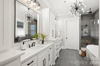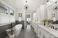 Welcome to The Courts of Prince Charles, an exclusive enclave of 10 new construction homes nestled in the heart of Foxcroft. Where modern comfort meets exquisite craftsmanship, these luxurious full-brick homes are engineered for a peacefully quiet interior—while offering unmatched convenience to everything SouthPark has to offer. Designed with both elegance and function in mind, this home features a primary suite on the main level, hardwoods throughout, and an open-concept layout bathed in natural light. The stunning kitchen is a true chef’s dream, showcasing handmade white-painted maple cabinetry, designer lighting and finishes, gorgeous quartz countertops, and an oversized island with farmhouse sink. High-end Thermador appliances, including two refrigerators, elevate both everyday living and entertaining. Custom shelving in all closets, laundry rooms on both levels, Ply Gem Mira Series windows, and a fully foamed attic provide exceptional insulation, energy efficiency, and soundproofing. Enjoy outdoor living year-round on the covered back porch with a wood-burning fireplace, wired for sound and overlooking a professionally landscaped yard with full irrigation. Designer window shades—including a remote-controlled shade for the sliding glass doors—add both style and convenience. Perfectly positioned across from Charlotte Country Day School and moments from Foxcroft East Shopping Center—home to Barrington’s—this prime location is also just minutes to Phillips Place, SouthPark Mall, Red Rocks Cafe, The Fresh Market, and the charming neighborhoods of Myers Park, Dilworth, and Uptown. Lawn maintenance is included in the HOA, allowing for truly low-maintenance luxury living. Every detail has been thoughtfully considered—welcome home.