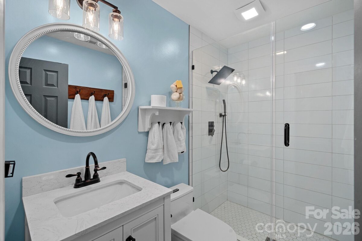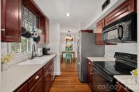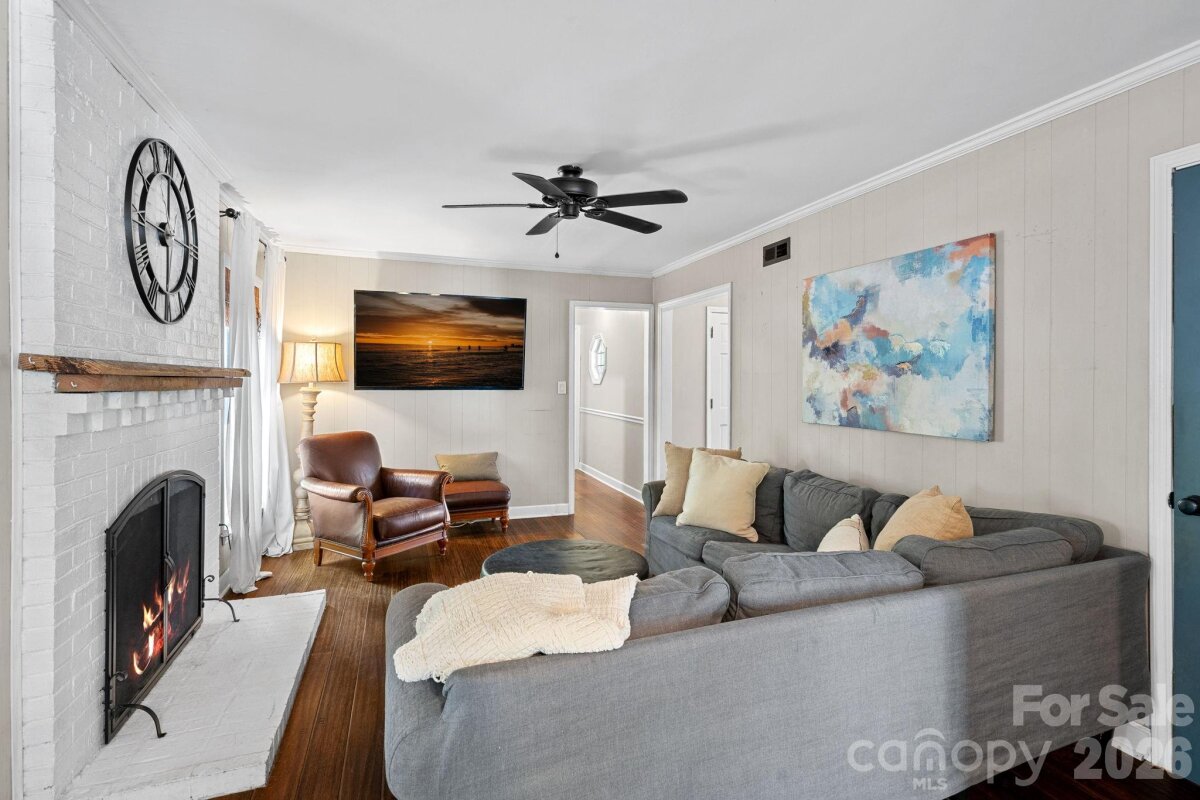 Tucked into a desirable Matthews location with no HOA, this charming 1.5 story 3 bedroom, 2 bathroom home offers almost 1700 heated square feet on a spacious corner lot of more than a quarter acre, uniquely positioned between two cul-de-sac streets. Inside, you’ll find inviting living spaces filled with character, including bamboo flooring, crown molding, a cozy brick, wood-burning fireplace in the family room, and a main level primary bedroom for added convenience. The updated primary bathroom adds a stylish touch with a frameless, tiled walk-in shower, upgraded vanity, and trendy tile flooring. Outdoor living is just as appealing, starting with the covered rocking chair front porch and continuing to one of the home’s standout features — the screened-in porch overlooking the backyard, perfect for relaxing or entertaining. A slate patio adds even more outdoor charm, all while being just 10 minutes from downtown Matthews. Living here you are less than 25 minutes from Uptown Charlotte.