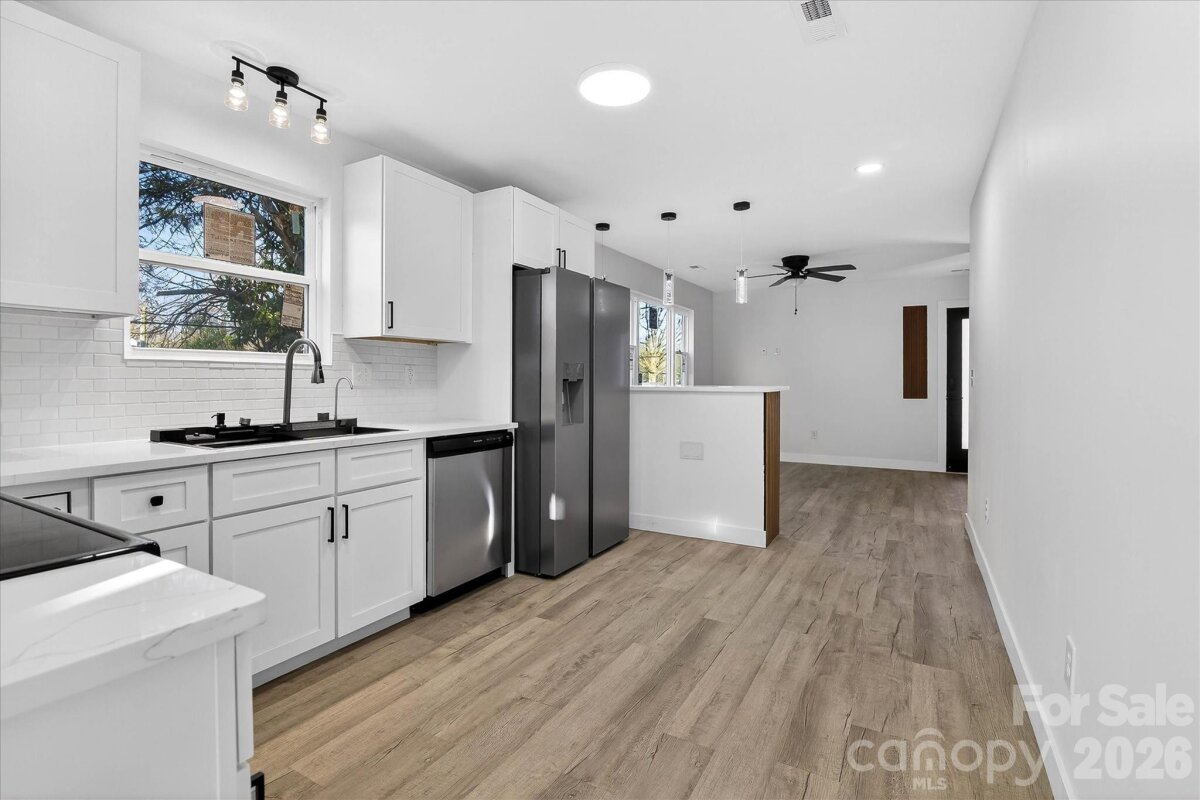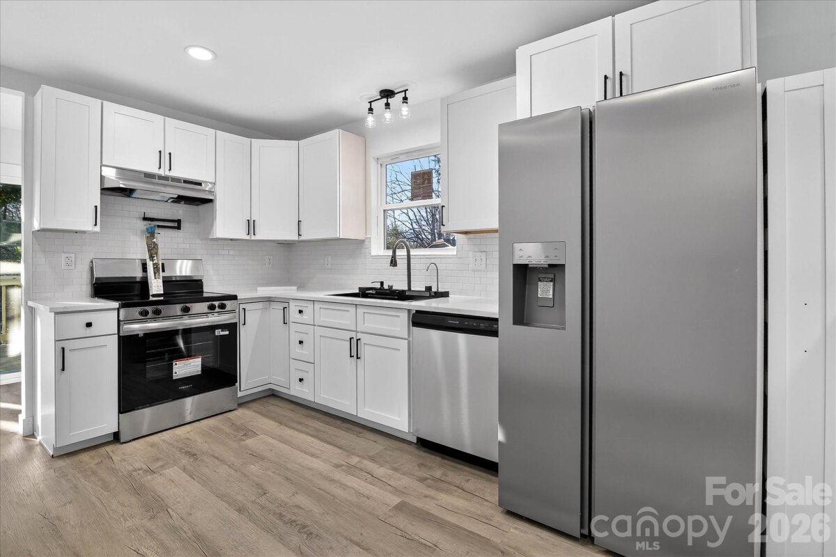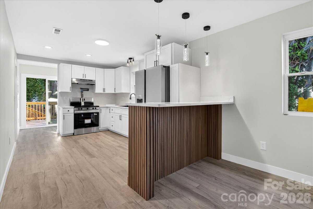 Fully Reimagined Corner Bungalow with Modern Finishes in the Heart of Kannapolis! From top to bottom, this charming 1938 barn-style bungalow has been completely transformed — and it shows in every detail. Sitting proudly on a corner lot in Kannapolis, 817 Mable Avenue is not a cosmetic flip; it is a full-renovation where nearly everything is brand new, giving buyers the warmth of a classic home with the confidence of modern construction. Step inside and you will immediately feel the difference. New luxury vinyl flooring runs throughout the open layout, and recessed LED lighting casts a clean, warm glow across every room. The major systems — roof, plumbing, electrical, HVAC, and windows — have all been replaced, meaning the next owner can simply move in and live without worrying about what lies behind the walls. The kitchen is a true showpiece. A sleek pot filler above the range sets the tone for a space designed to make cooking effortless, while a complete workstation sink keeps prep and clean-up contained and organized. Stainless steel appliances throughout — including a washer and dryer that convey with the home — round out a kitchen that is as practical as it is polished. Both bathrooms have been outfitted with spa-inspired features that go well beyond the standard renovation. Multi-function body sprayers and smart LED mirrors with integrated lighting bring a boutique-hotel feel to the everyday routine, turning a simple shower into a moment worth looking forward to. Smart home technology is woven throughout the property, giving residents intuitive control over their environment from day one. The upscale finishes — from the recessed lighting to the curated fixture selections — reflect a level of care rarely found at this price point. Outside, the newly built deck extends the living space into the open air, offering a natural setting for weekend cookouts, morning coffee, or evening gatherings with friends. The corner lot provides added breathing room and curb appeal, while the distinctive barn-style exterior gives the home a character all its own. The location complements the lifestyle perfectly. Dining and local shops are within walking distance, and Concord Mills Mall along with the broader attractions of Concord are less than 30 minutes away. Quick access to Interstate 85 — just 10 minutes from the front door — keeps Charlotte and the surrounding region well within reach. Opportunities like this — move-in ready, fully renovated, and priced for the Kannapolis market — do not last. Schedule your private tour today before this one is gone.