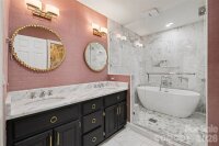 Welcome to your dream home, where modern elegance meets cozy charm! This ASID designer updated residence is a true gem, boasting an array of stunning features that blend functionality with style, including Farrow and Ball paint inside and out. As you step inside, you're greeted by a fabulous living room showcasing a cathedral ceiling adorned with rustic wood beams. Built-in shelving complements the space, while a natural gas fireplace adds warmth and character, making it the perfect spot for gatherings or quiet evenings at home. The heart of this home is undoubtedly the spectacular kitchen. Here, culinary enthusiasts will appreciate the stainless-steel double oven gas range, and custom breakfast bar with convenient prep sink. Gorgeous marble countertops provide both beauty and durability, while designer pendant lights illuminate the area beautifully. The centerpiece is a spacious butcher block island, ideal for meal prep or casual dining. Retreat to the amazing primary bedroom suite. The ensuite bathroom is a true oasis where luxury continues with marble floors, British bath fixtures, designer wallpaper including Schumacher grass cloth walls and Manuel Canovas patterned powder room, featuring a custom walk-in shower complete with a soaking tub and elegant glass shower doors—perfect for unwinding after a long day. Step from the living room through French doors to discover a wonderful, screened porch, equipped with a cozy wood-burning fireplace, perfect for relaxing evenings under the stars. Adjacent to this porch is a spacious deck that overlooks your private backyard, enclosed with a charming split rail fence with David Austin roses and mature perennial beds that would make a master gardener proud. The yard also features a delightful custom built shed, complete with swings—ideal for both play and storage and the garage boasts new epoxy floors. Located conveniently close to shopping, dining, hospitals, and the interstate, this home offers easy access to everything you need, all while enjoying the freedom of no HOA. Don’t miss this opportunity to own a beautifully crafted home that truly has it all!