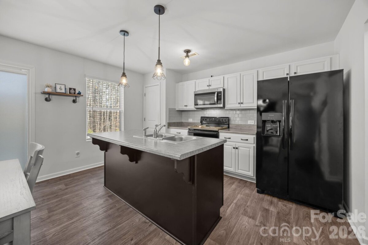 Gorgeous newer home for sale in Albemarle, NC, located in the highly sought-after Grandview subdivision, known for its community pool and convenient location. This beautifully maintained 3-bedroom, 2.5-bath home features a 2-bay garage, open-concept floor plan, upgraded fixtures, and standout curb appeal with a beautifully unique green vinyl exterior accented by subtle brick detail. The spacious kitchen includes all appliances conveying and opens to a bright living area—ideal for everyday living and entertaining. Enjoy outdoor living with an oversized back patio and gazebo that conveys, overlooking a beautiful backyard perfect for gatherings or relaxing evenings. Move-in ready home in Stanly County—819 Yorkshire Dr in Albemarle is ready for its next owners.