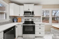 Located in an established neighborhood just minutes from downtown Matthews, this beautifully updated 3 BR, 2 BA home offers space, charm, and an unbeatable location. Set on nearly half an acre, the fully fenced back yard provides privacy and plenty of room to relax, garden, or entertain. Inside, you will find a fresh, modern feel with thoughtful updates throughout. The kitchen has been freshly renovated with new cabinets, quartz countertops, stylish backsplash, and brand new appliances. New vinyl flooring enhances the kitchen and bathrooms, while new carpet adds comfort in the bedrooms. Both bathrooms feature new vanities, mirrors, toilets, updated lighting, and a new tub and shower surround in the hall bath. Fresh interior paint, updated light fixtures, and new closet and pantry shelving make the home truly move in ready. The exterior has also been freshly painted for great curb appeal. The spacious primary bedroom offers a comfortable retreat, and the generous living area is centered around a cozy wood burning fireplace. A covered front porch and rear patio create inviting outdoor living spaces, while the detached two car garage with dedicated work bench area provides ample parking and storage. Located approximately one mile from charming downtown Matthews and just minutes to Providence High School, The Arboretum, Carolina Place, and I-485, this home combines everyday convenience with the character of an established community. With major updates already completed, this is a fantastic opportunity to enjoy a refreshed home on a large lot in one of the area’s most desirable locations!