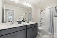No need to wait for new construction, this like-new full brick home has added ceiling fans, pendant lights, appliances and gutter guards for you! Located in the heart of Mint Hill and still covered under the builder’s structural warranty! Thoughtfully upgraded and move-in ready, it offers the perfect blend of style, function, and peace of mind. The main level features a dedicated office and a show-stopping kitchen complete with a 36" gas cooktop, stainless steel appliances, sleek tile backsplash, quartz countertops, and a spacious walk-in pantry with added under-stair storage. Crown molding in the primary bedroom, bathrooms and entry way adds a polished feel. Step outside to a private 12' x 8' powered screened porch overlooking the trees. Upstairs, a versatile loft provides additional living space alongside three generously sized bedrooms. The upgraded primary suite impresses with a tray ceiling and crown molding, while the spa-inspired bath features an all-tile shower with glass walls. The secondary bath includes an upgraded vanity and tub surround. Enjoy low-maintenance living with a tankless water heater. All appliances, including washer and dryer, convey with the sale. The community offers a scenic pond and recreation area and the location is unbeatable, just minutes from shopping and a variety of dining options.