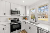 Welcome to this beautifully renovated brick ranch charmer, conveniently located just 6 minutes from shopping and dining in the popular Mountain Island Lake area with easy access to I-485 and I-277, and is just 15 minutes from Charlotte-Douglas Airport. Upon entering, your greeted by a large, light filled living room with built-in electric firebox leading into your newly reconfigured, eat-in kitchen and dining area. Modern lighting, bright white cabinetry that extends to the ceiling, quartz countertops, a large island and brand-new stainless-steel appliances are just a few highlights bookending this thoughtfully renovated space. Down the hall you will find a large, beautifully tiled full bath and two nicely sized bedrooms; the primary suite is located at the end of the hallway and makes for the perfect retreat after a long day. Additional highlights include a large, bright laundry room, newly installed roof, new windows throughout, LVP flooring, new HVAC, new side deck and new 8x12 storage shed off of the back of the home, just to name a few (for a complete list of updates, please ask agent). Renovated to the studs, this home has been completely reimagined and is ready for its new owner! Would make for the perfect starter or investment home! Schedule your showing today!